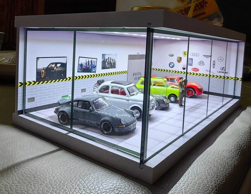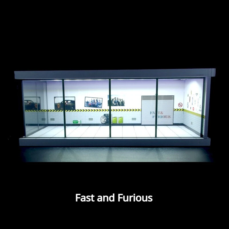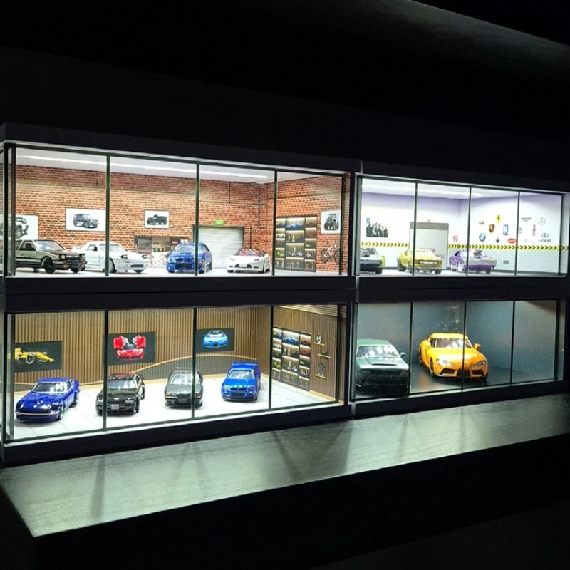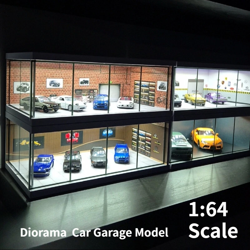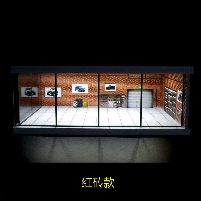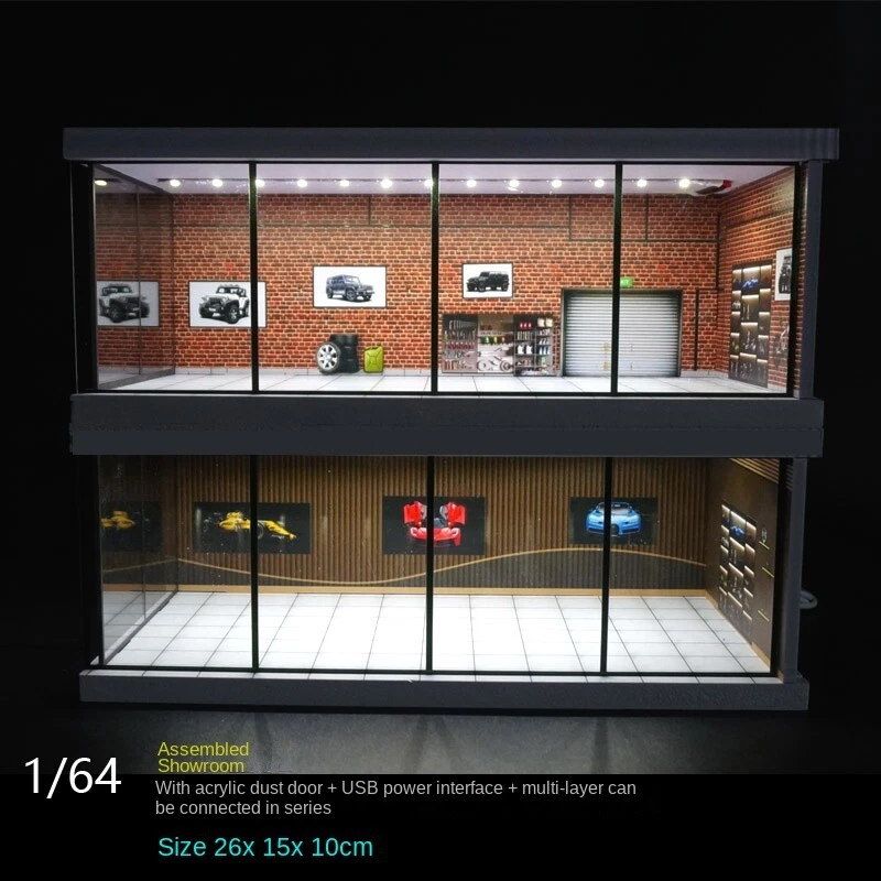 Note. Product does not include the vehicle pictured. We highly recommend this product for use with our other Diorama scene modelling products. It can also be used with vehicle models and figure models. The playability is very high. We look forward to your combinations and play! We have shown some combination results in the product images for reference~. Product size: 26*15*10cm Features: with acrylic dustproof door, USB power interface, multiple layers can be connected in series Package Includes 1 * Garage model (as your choice)