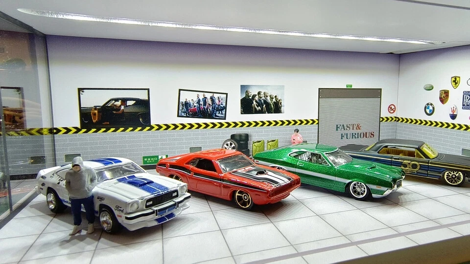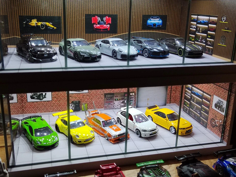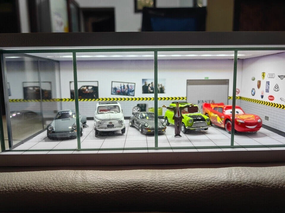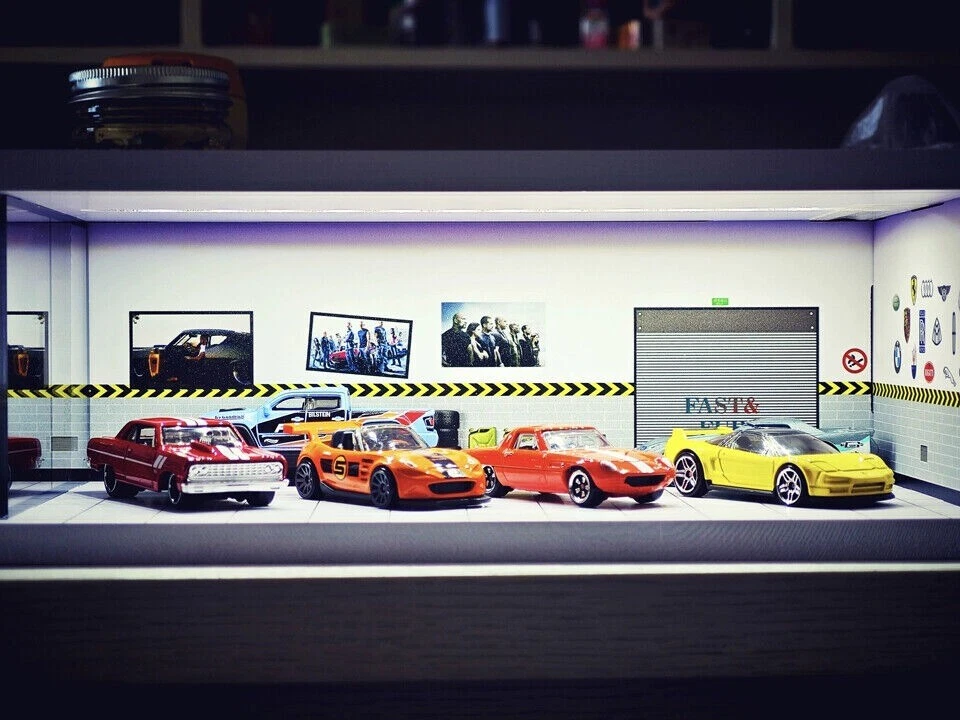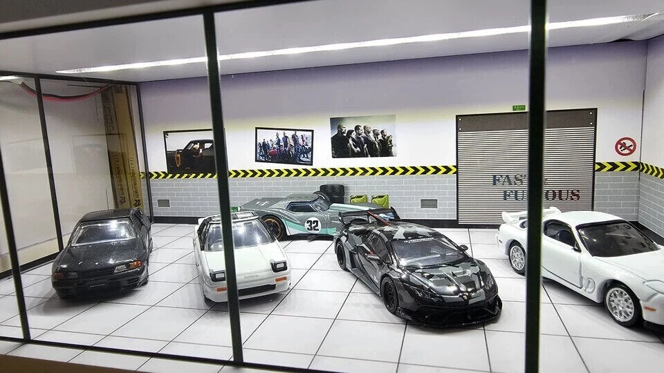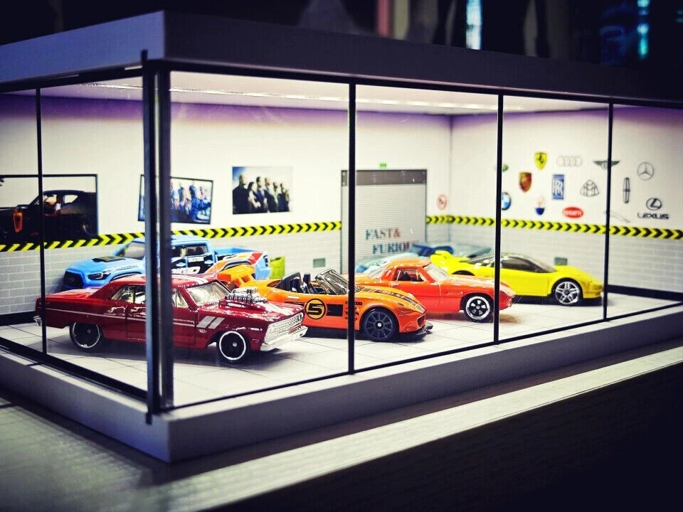 Note. Product does not include the vehicle pictured. We highly recommend this product for use with our other Diorama scene modelling products. It can also be used with vehicle models and figure models. The playability is very high. We look forward to your combinations and play! We have shown some combination results in the product images for reference~. Product size: 26*15*10cm Features: with acrylic dustproof door, USB power interface, multiple layers can be connected in series Package Includes 1 * Garage model (as your choice)