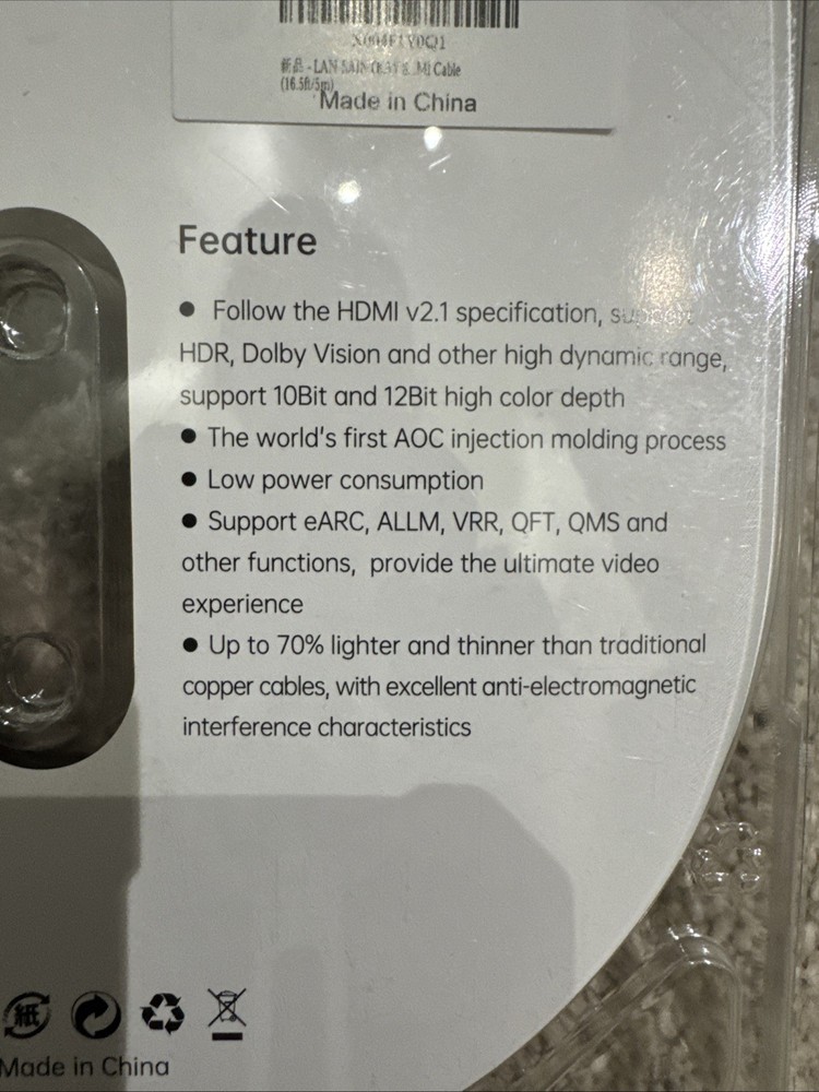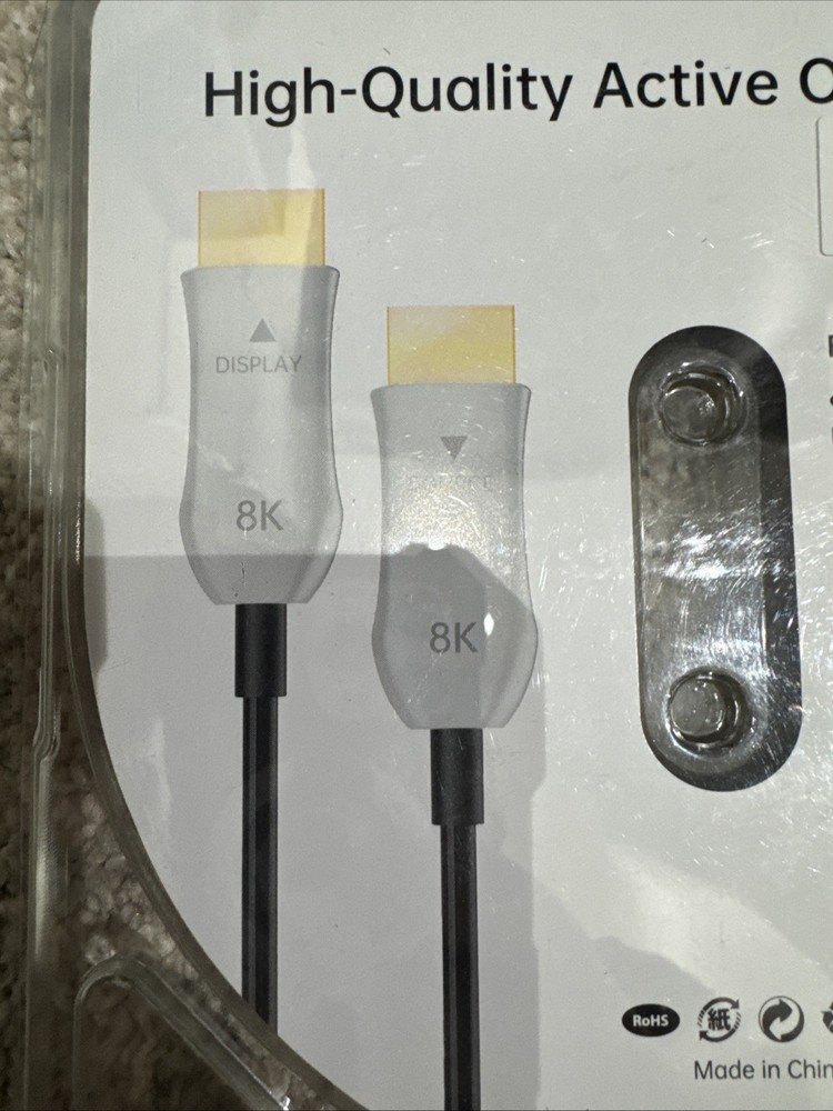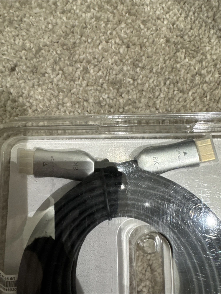 The 16.5’ AOC Active Optical Fiber HDMI 2.1 Cable is a high-quality cable designed for ultra-high-definition video connections. With a connection split/duplication of 1:6, this cable can support resolutions up to 8K at 60Hz and 4K at 120Hz, providing smooth and immersive viewing experiences. The cable features a black color, gold plated connectors, and is made with a fiber cable for enhanced performance and durability. With a cable length of 25 ft, this HDMI 2.1 cable is compatible with CL3 and CL3.1 models, making it ideal for professional audio and video applications.