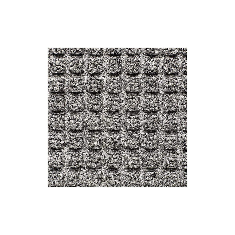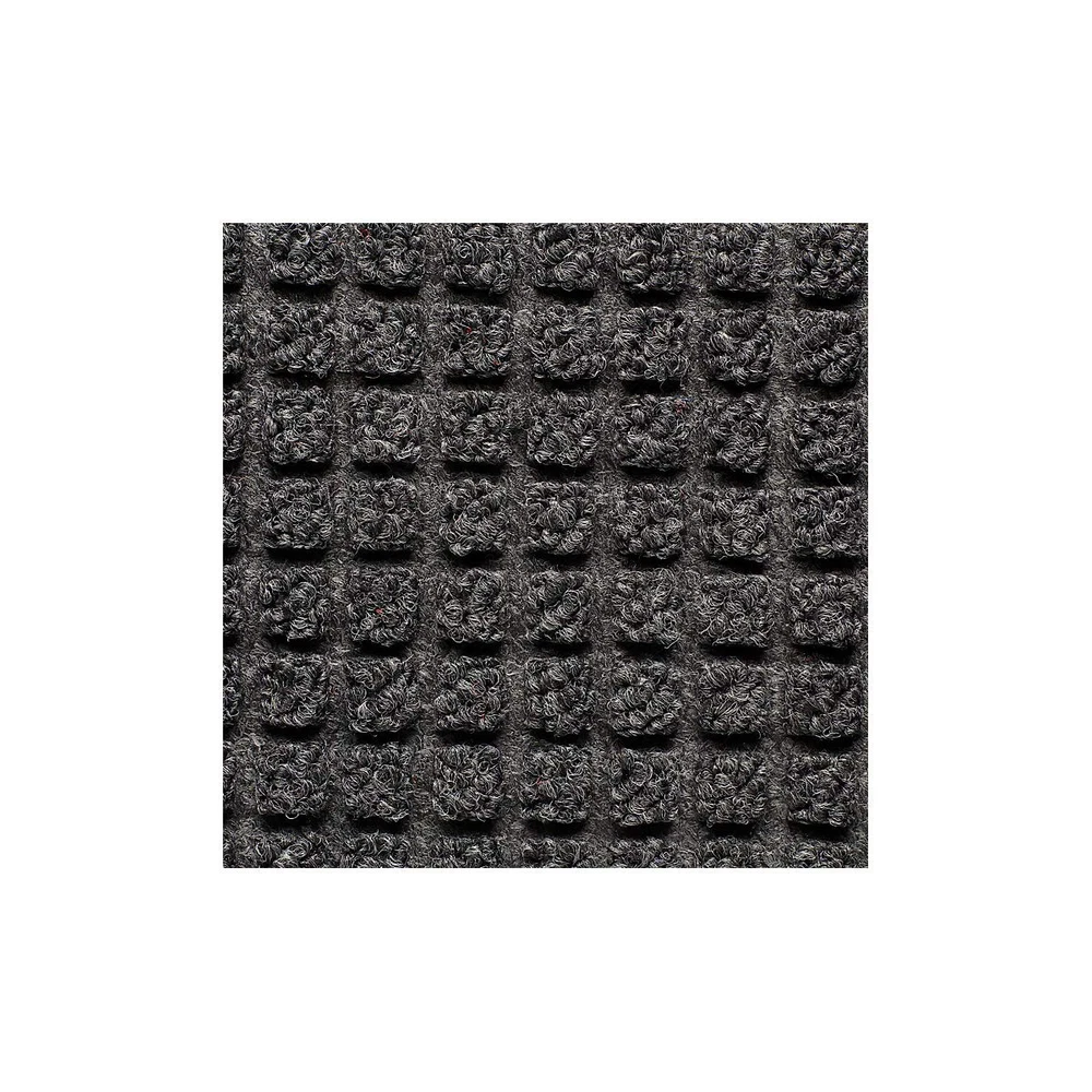 Best 166 guzzler entrance mat. Guzzler is part of the AquaTRU series of entrance mats that offer truer size options for a better value. Intended for use in medium to heavy traffic areas, the raised, crushproof waffle design of Guzzler aggressively scrapes and cleans, while the rubber-edged perimeter entraps dirt and moisture for superior water and soil control. Molded rubber cleats on the underside of the mat grip the underlying surface minimizing mat movement. Test - Test Description - Results: (1) Abrasion Resistance ASTM D3884-01 - Test specimen is subjected to the rubbing action of two abrading wheels under controlled conditions. Results measured in Weight loss (Grams) - 0. 99 Grams (3. 1 percent). (2) Accelerated Wear Test specimen is subjected to the action of rollers under a specified load. Sample is rotated 10 degree after each pass. Results measured in thickness loss (percent) - 14. 48 percent. (3) Accelerated Soiling ASTM D6540-00 - Test specimen is subjected to an accelerated soiling process. for a predetermined length of time. The sample is vacuumed, rated, submitted to an extraction device, then rated again. - (Based on visual inspection) 3. 5 - Vacuum Rating 4. 0 - Rating After Extraction (4) Water Retention - Test specimen is submerged in water for 5 minutes, removed, drained for 15 seconds and weighed. Results measured in weight gain. (Gallons per square yard) - 0. 427 (5) Flammability ASTM D2859 (CPSC FF 1-70) - Intended to measure the mattings response to an ignition source in a controlled environment. The uncharred area of the test specimen must be greater than 1 inch to pass. - 3. 4 Inches Passes Federal Flammability Standard DOC FF 1-70. Face Weight: 26 oz. per sq. yd. All testing of floor matting has been performed by an independent testing laboratory. Available in charcoal color. Use for the non-directional pattern design is perfect for entranceways, lobbies, and other indoor medium to high traffic areas. Raised waffle pattern facilitates the scraping process while the channel design retains moisture and debris Raised rubber border on all 4 sides acts as a containment barrier that traps moisture and debris Molded rubber cleats on the underside of the mat grip underlying surfaces and minimize mat movement Densely tufted yarn for increased moisture retention, and easier cleaning; thickness: 1/4" pile height Recommended and approved product as a part of the GreenTRAX program for green cleaning environments (when used as part of the Stages system)