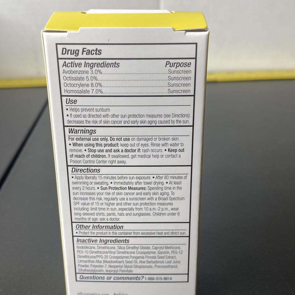 Assembled Product Dimensions (L x W x H):1.38 x 2.17 x 5.31 Inchesgtin13:609332818071Brand:e.l.f. CosmeticsType:Chemical SunscreenUPC:609332818071Features:Water-Resistant, Non-GreasySPF Value:35Size:Travel SizeSun Protection Factor (SPF):SPF 35Volume:1.69
