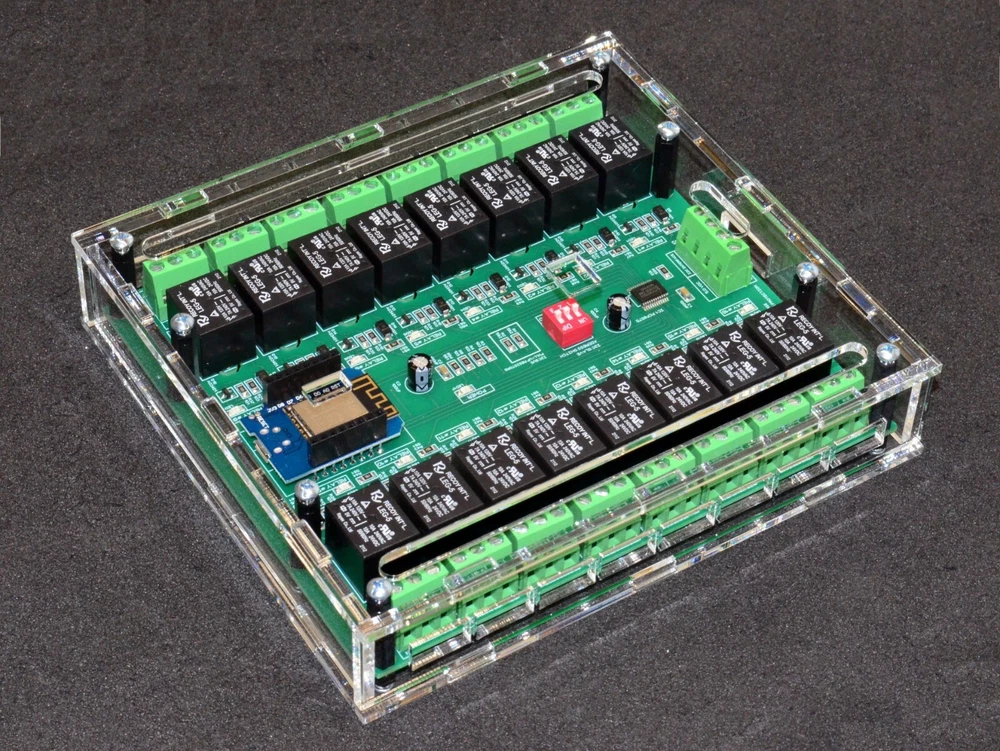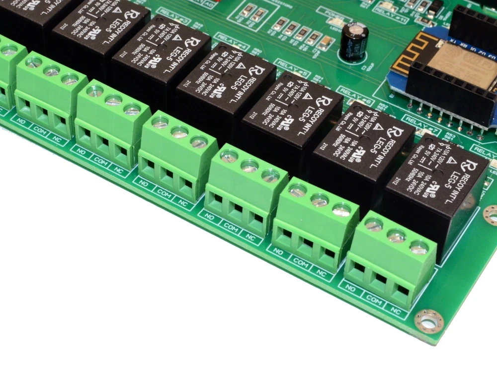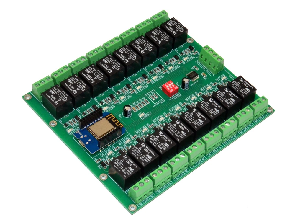 Device specification : Board comes fully assembled! Comes with programmed ESP8266 WIFI module Default firmware type Access Point, SSID "16CH relay AP", default IP address 192.168.4.1 PCB board dimension 135mm x 150mm Operation DC voltage – 5.0V Maximum peak current @5.0V – 2000mA Maximum current per relay – 10A peak LEDs indicators for each electromagnetic relay channel Relays with SPDT switch contacts: Normally Open, Common, Normally Closed Relay contact resistance 100 milliohms max. ( initial value ) Relay insulation resistance 100 MOhm min. (DC 500V) Relay operation time 8 ms max Relay release time 5ms max Relay dielectric strength 750 VAC, 50/60Hz between contact Relay dielectric strength 1,500 VAC, 50/60Hz between all elements Relay expected life Mechanical - 10,000,000 operations min. Relay expected life Electrical - 100,000 operations min. at rated load Working temperature range - 25 C ~ + 80 C The module contains an I2C expander 16bit MCP23017 chip The logic power supply voltage should match the voltage levels on the I2C bus Available plexiglass enclosure WIFI ESP8266 sample codes, Webpage interface: Full project on Github - https://github.com/krida0electronics/16-Channel-WEB-Relay ESP8266 WIFI Access Point, ip address 192.168.4.1 - https://github.com/krida0electronics/16-Channel-WEB-Relay/blob/main/16ch_relay_wifi_web_AP.ino ESP8266 WIFI Client - https://github.com/krida0electronics/16-Channel-WEB-Relay/blob/main/16ch_relay_web_CLIENT.ino Plexiglass enclosure don't include in this lot! For order it, please contact me. Shipping information: Worldwide shipping with tracking number. Please track your tracking number at 17track.net or track-trace.com. Dispatching in 1-3 business day. Estimated delivery time to Europe 14-28 business days, others countries up to 30+ days. For express shipping please contact before order. Free contact me, if you have any question !