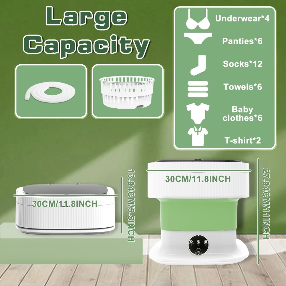 Introducing our highly efficient and versatile portable washing machine, designed specifically for small clothes and items that require separate cleaning. With a generous capacity of 16L, this mini washer is perfect for washing underwear, socks, baby clothes, diapers, towels, vests, and even toys. Say goodbye to the hassle of hand washing and experience cleaner, more hygienic clothes with our mini washer. Equipped with a unique foldable design, our mini washer and dryer combo offers both convenience and intelligence. With just a simple touch on the electronic panel, you can easily select the desired mode and start the washing process with a single click. What sets our portable washer machine apart is its time-saving and efficient performance. UThis foldable compact washing machine imitates the process of hand washing, delivering powerful and deep cleaning results. No more wasting time on manual washing, as our portable washing machine with spin frees up your hands and saves precious time for other tasks. We understand the importance of energy conservation, which is why our underwear collapsible washing machine is designed with a low energy consumption and noise reduction motor.Not only does our portable small laundry washer save energy, but it also contributes to environmental protection by conserving water and electricity. Portability and durability are key features of our small lavadora portatil. Crafted from upgraded environmentally friendly materials, it is more resistant to aging and built to last. The foldable bucket design allows for easy storage when not in use, saving precious space in your home. Its compact and lightweight nature makes it perfect for apartments, camping, travel, and RVs. Take the convenience of a travel folding washing machine wherever you go. In conclusion, our portable washer offers versatility, intelligence, efficiency, energy-saving features, and portability. 【16L Portable Washing Machine】Our small washer machine is specifically designed to clean small clothing items that require separate washing. From underwear and socks to baby clothes and towels, this mini foldable washer ensures thorough cleaning, leaving your clothes hygienic and fresh. 【Convenient Mini Washer】Experience the convenience of our portable washing machine and dryer, featuring a automatic design with foldable functionality. With 3 deep cleaning modes and an easy-to-use electronic panel, this travel washing machine offers a seamless laundry experience with just one click. The 360° deep washing system effectively removes stains, ensuring the health and well-being of your family. 【Time-saving and User-Friendly】Our bucket folding laundry washer offers a generous capacity of 16L, providing ample space for your laundry needs. Crafted from high-quality ABS materials, our portable washing machine with spin is both durable and safe for use. The food-grade materials not only provide a comfortable and odor-free experience but also make the compact washing machine suitable for undergarments, socks, baby clothes, and more. Say goodbye to manual washing and save precious time. 【Energy-saving and Noise Reduction】Equipped with a low energy consumption and noise reduction motor, our travel collapsible washing machine operates smoothly and quietly. The improved motor compartment ensures stability and eliminates shaking during operation, allowing for a peaceful laundry experience. Additionally, the small load and low power consumption contribute to energy and water conservation. 【Portable and Durable Mini Portable Washer】Made from upgraded materials, our hand washing machine and dryer is built to last. Its foldable bucket design allows for easy storage and portability, making it ideal for families, apartments, camping, travel, and RVs. Enjoy the convenience of a little lavadora portatil that takes up minimal space while delivering exceptional cleaning performance.