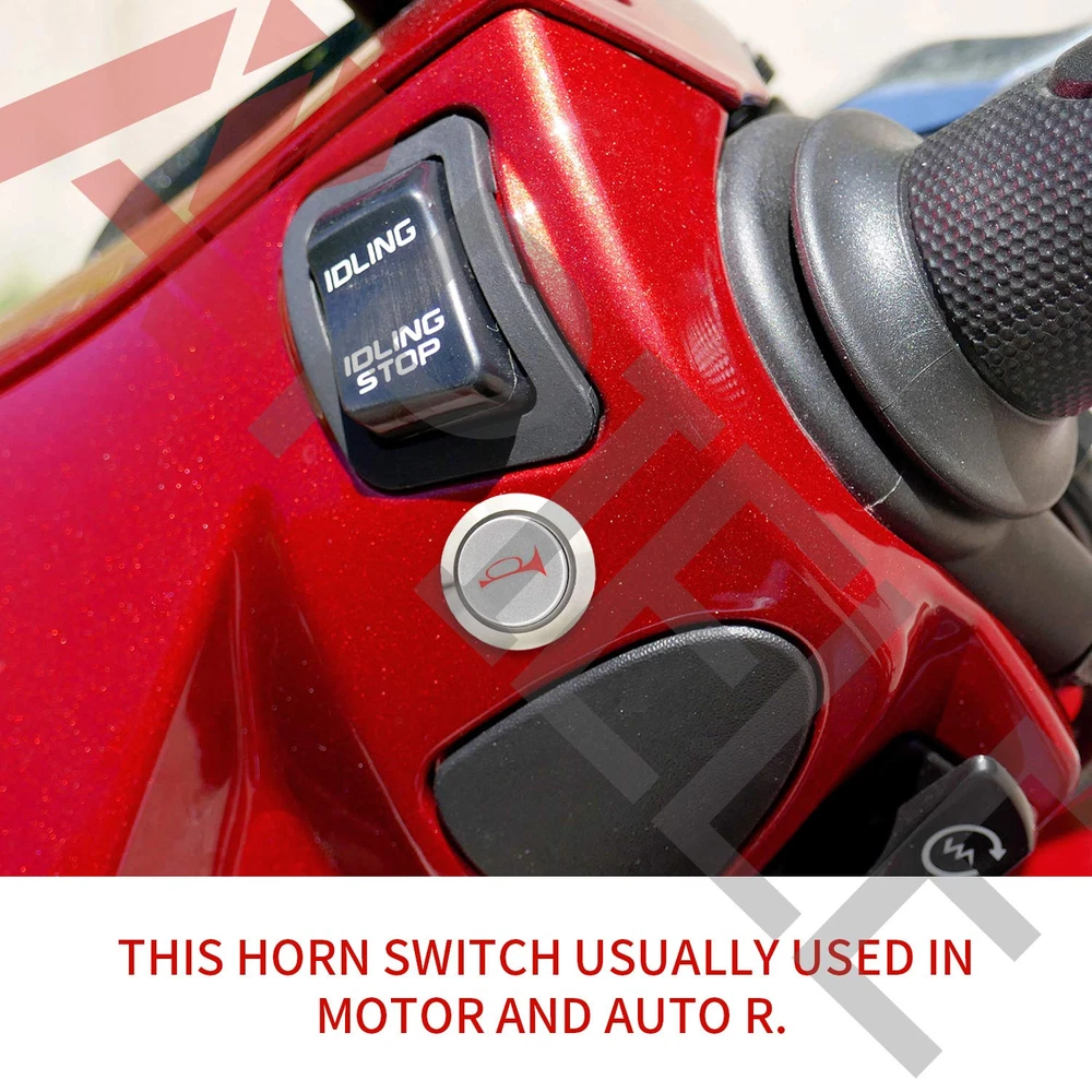Brand New Black Aluminium Alloy Horn Switch. GET NEW ONE IF NOT MAN MADE BROKEN IN 3 YEARS SINCE YOU PURCHASE THE SWITCH. LED voltage: 12V only; Hole size required: 0.63" /16mm; Switch Rating: 250V/5A Momentary Push Button Switch: Push & Hold, ON; Release, OFF, Contact Configuration: 1NONC Electrical life: 200 thousand times. MecElectrical life: 200 thousand times. Mechanical life: 1,000,000 cycleshanical life: 1,000,000 cycles High quality metal material & IP65 waterproof protection can be used in wet or dusty enviroment.High quality metal material & IP65 waterproof protection can be used in wet or dusty enviroment. Product Description Horn Push Button Switch Specification: Mounting Cut Hole: 16mm ( 0.58”) Operation: Momentary Structure: 1NO 1NC Switch rating: 5A,12V AC/DC LED Pattern: Ring Indicator Contact Material: Silver alloy Protection Degree: IP65 100,000 Times Electric Work Life. APIELE 16mm Speaker Horn Push Button Switch This All Metal Switch Functions Manually As A Replacement Of Auto Refit, Boat Refit, Instruments Apparatus, Enter Guard, Household Appliance. It Provides Solid And Crisp Push Feedback And Comfortable Led Light. Ip65 Waterproof Make It Can Be Used In Humid Environment. Metal shell tolerates vibration and other harsh environmental conditions. The Improved Wire Diagram Come With The Switch And A Non-Electrical Person Can Install It Easy. Get A New One If Broken In 3 Years. Package Include: APIELE Horn Push Button Switch Pigtail Connectors Quick Installation Wire Diagram Waterproof As it is IP65, it can work relatively harsh environment. Use this switch to replace the light switch, horn switch or other control switches in the cars/ boats/ trucks. Bright and comfortable Led and metal appearance make the switch very cool. Auto Refit It is also a good choice to use it as a replacement switch of household Appliances. Such as table lamp switch, PC switch, Audio switch. The metal shell and push part is not easy to damage. Long Work Life APIELE Switch use pole-less lamp beads, bright and dazzling brightness, long service life. The work life of the led light is more than 40,000 hours. The Mechanical work Life is 500,000 times The switch use Silver Alloy contact to make the Electrical Work Life more than 100,000 times.