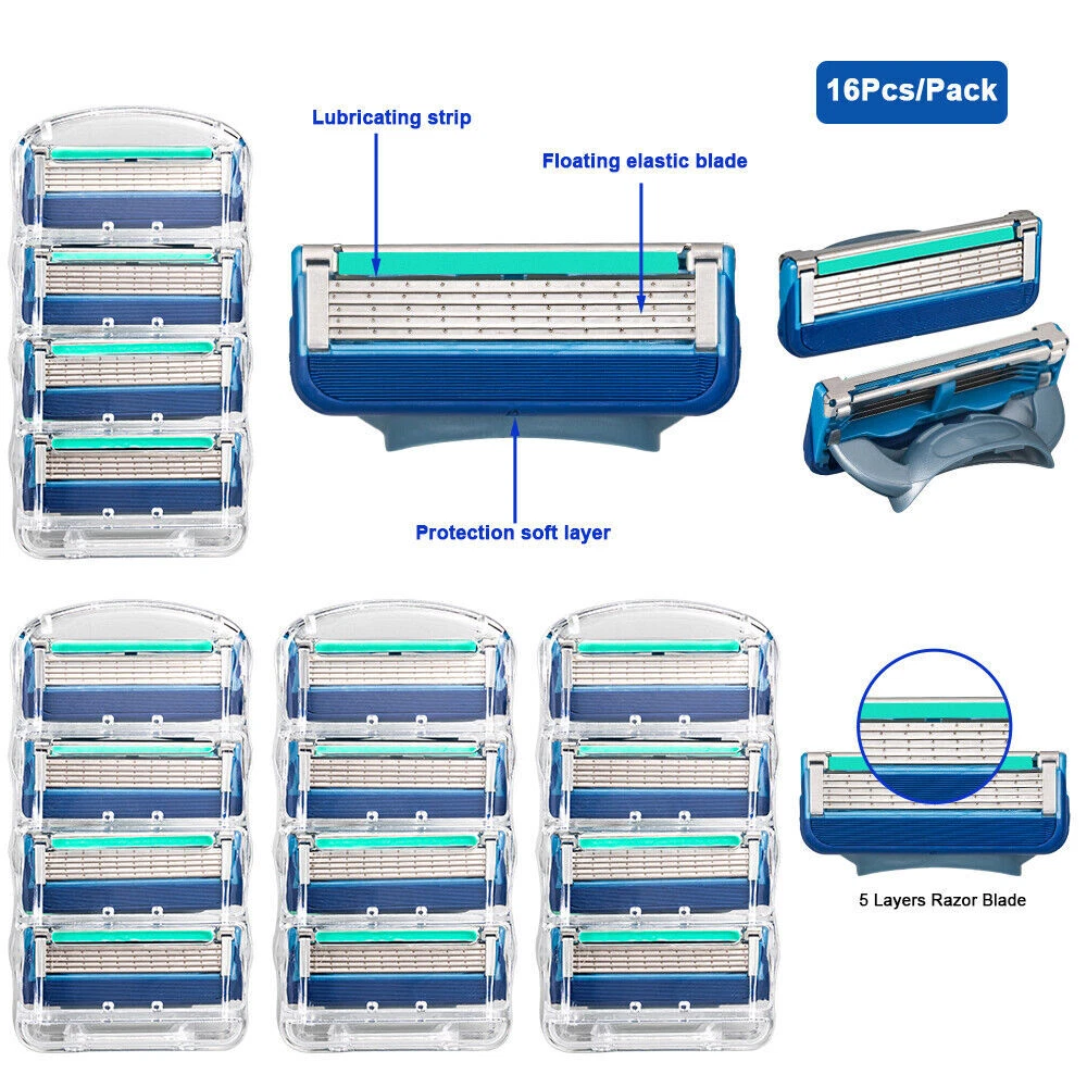 Suitable For Gillette Fusion5 Men's Razor Blade Refills 16 Cartridges Super sliding close blades for high delicacy Precision blade on the back great for finishing difficult areas such as under the nose and sideburns Ergonomic handle provides excellent control Lubricating strip for excellent smoothness A replacement blade is equivalent to up to a month of shaving All Fusion replacement blades can be used with all Fusion razors Suitable for Gillette Fusion5 Power men's razor blade refills feature 5 anti-friction blades for a shave you can barely feel. The Precision Trimmer on the back is great for hard-to-reach areas and styling facial hair. The lubrication strip fades when you are no longer getting an optimal shave. One razor blade refill equals up to one month of shaves. Fusion5 Power men's razor blade refills fit all Fusion5 & Fusion5 Power blades. Gillette razors, formerly called Gillette Fusion. Key Features: Suitable for Gillette razors for men with 5 anti-friction blades. A shave you barely feel Men's razor with Precision Trimmer on back - great for hard-to-reach areas and styling facial hair Lubrication Strip fades when you are no longer getting an optimal shave 1 razor blade refill equals up to one month of shaves Fits All Fusion5 & Fusion5 Power Razors Product contains: Suitable for Gillette Fusion 5 Razor Blades - 16 Cartridge Package: 8/12/16pcs razor blades