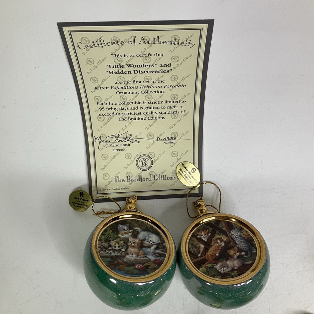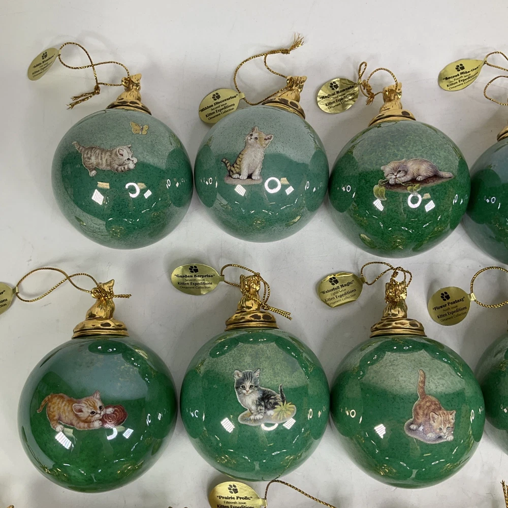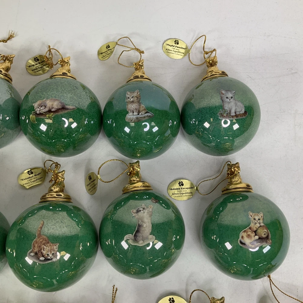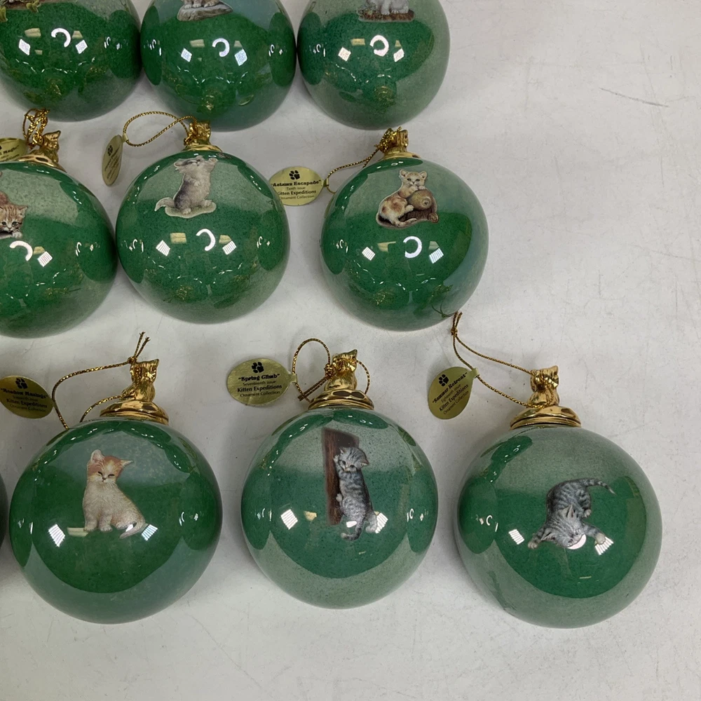 Previously owned lot of (16) The Bradford Exchange Kitten Expeditions Heirloom Porcelain Ornament Collection. They are in good condition with no cracks or chips. Each ornament is 2 3/4" diameter. They come with a certificate of authenticty except for the last pair (sevententh issue and eighteneth issue). Does not come with a box to hold then. Please see all pics. About Us Customer service is our #1 priority! If for any reason you are dissatisfied with your purchase we offer a 30 day money back guarantee unless otherwise noted in the listing (AS-IS/For Parts - No returns.) We only accept items back in the condition that they were sent to you. Items that are listed AS-IS are not eligible for this money back guarantee. If you are unhappy with your purchase PLEASE contact us BEFORE leaving feedback or contacting eBay so we can work with you to resolve any problems. Shipping When we charge shipping to our customers we only pass on to our buyers exact shipping costs - no added fees. We offer combined shipping for multiple items purchased, so if you purchase more than 1 item from us, please wait for us to combine shipping costs. We require signature confirmation on all items that sell for $750.00 & more per eBay's selling policy. We also insurance all items that sell for $250.00 & more. PLEASE NOTE: WE DO NOT WORK/SHIP ON HOLIDAYS OR WEEKENDS! We use the eBay Global Shipping program for international shipping. DLLR License #991 Please note, we are not an authorized distributor or manufacture's representative of this item. *This product may contain a chemical known to the state of California to cause cancer and birth defects or other reproductive harm*