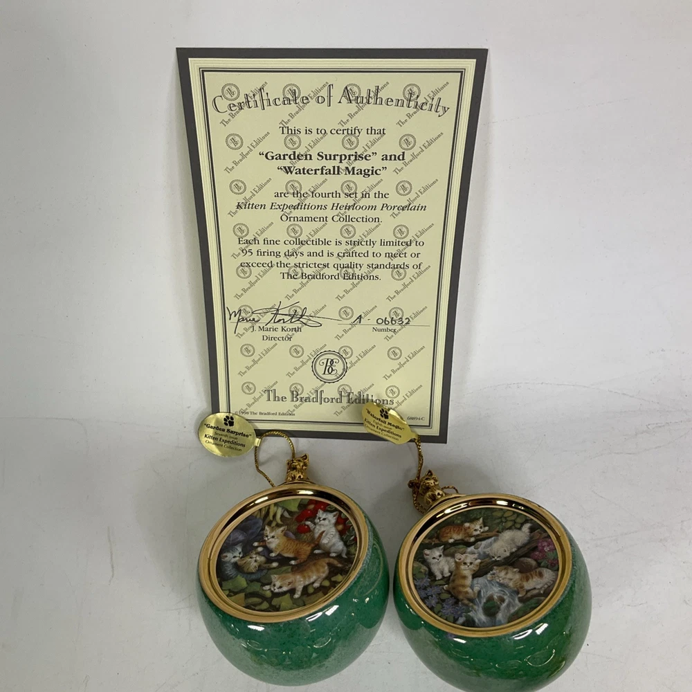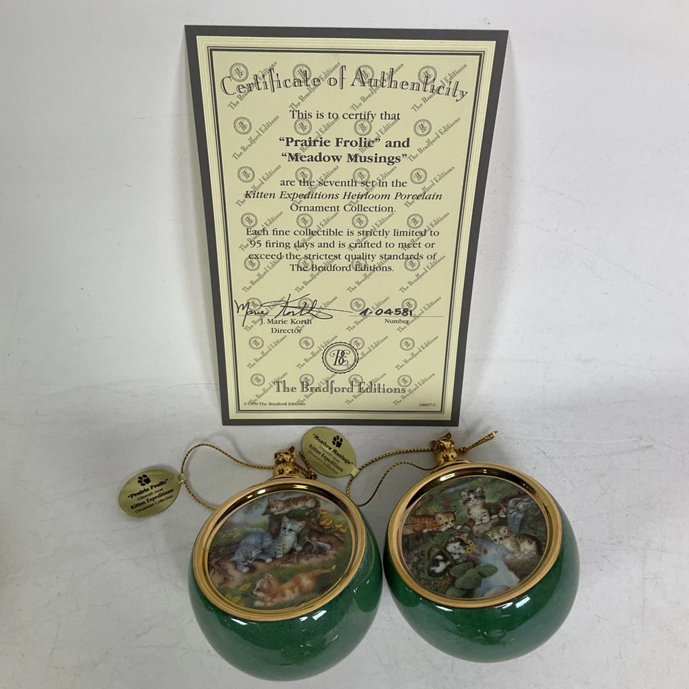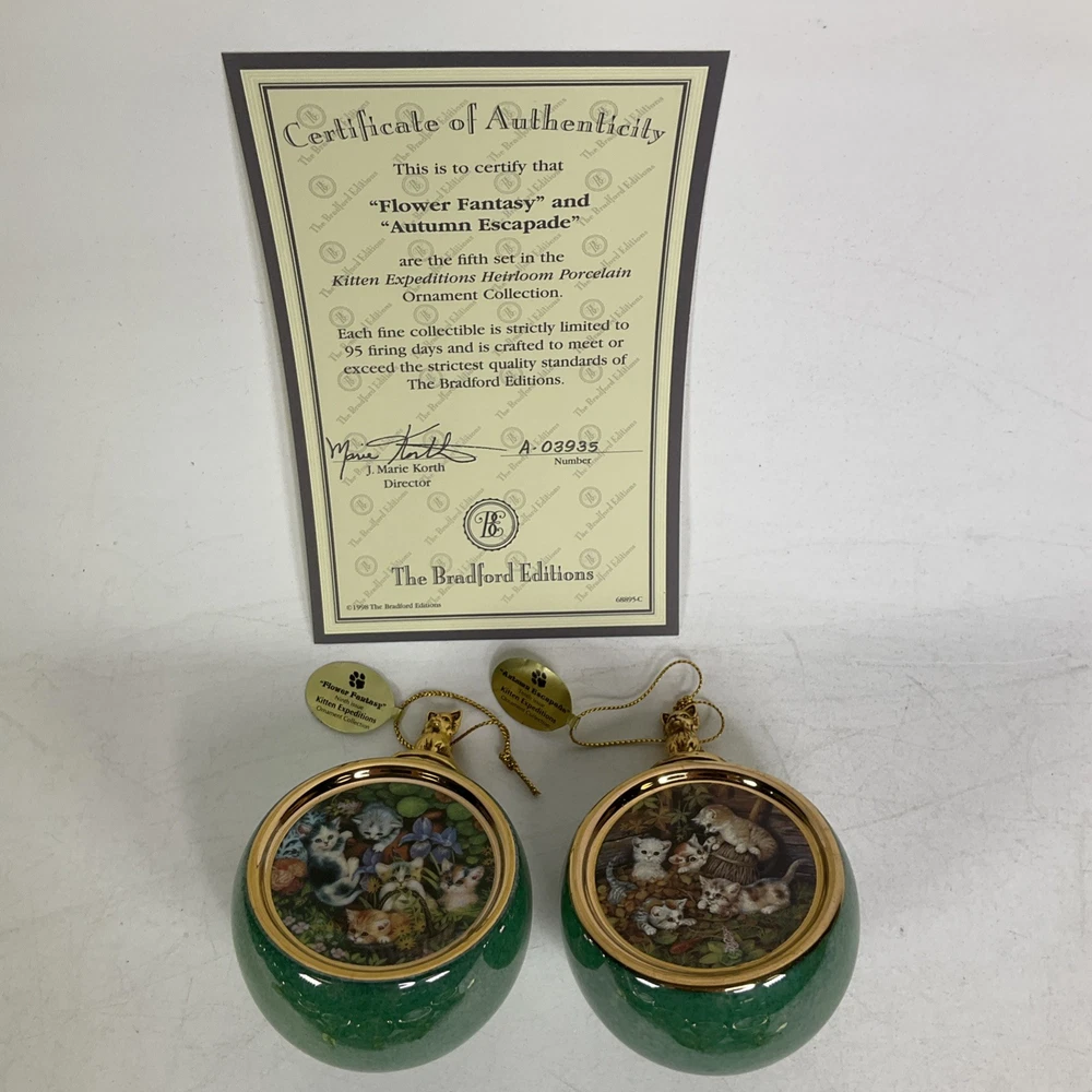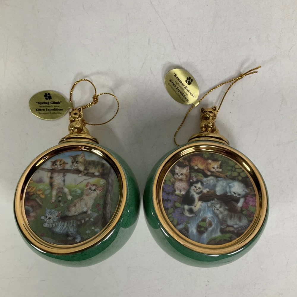 Previously owned lot of (16) The Bradford Exchange Kitten Expeditions Heirloom Porcelain Ornament Collection. They are in good condition with no cracks or chips. Each ornament is 2 3/4" diameter. They come with a certificate of authenticty except for the last pair (sevententh issue and eighteneth issue). Does not come with a box to hold then. Please see all pics. About Us Customer service is our #1 priority! If for any reason you are dissatisfied with your purchase we offer a 30 day money back guarantee unless otherwise noted in the listing (AS-IS/For Parts - No returns.) We only accept items back in the condition that they were sent to you. Items that are listed AS-IS are not eligible for this money back guarantee. If you are unhappy with your purchase PLEASE contact us BEFORE leaving feedback or contacting eBay so we can work with you to resolve any problems. Shipping When we charge shipping to our customers we only pass on to our buyers exact shipping costs - no added fees. We offer combined shipping for multiple items purchased, so if you purchase more than 1 item from us, please wait for us to combine shipping costs. We require signature confirmation on all items that sell for $750.00 & more per eBay's selling policy. We also insurance all items that sell for $250.00 & more. PLEASE NOTE: WE DO NOT WORK/SHIP ON HOLIDAYS OR WEEKENDS! We use the eBay Global Shipping program for international shipping. DLLR License #991 Please note, we are not an authorized distributor or manufacture's representative of this item. *This product may contain a chemical known to the state of California to cause cancer and birth defects or other reproductive harm*