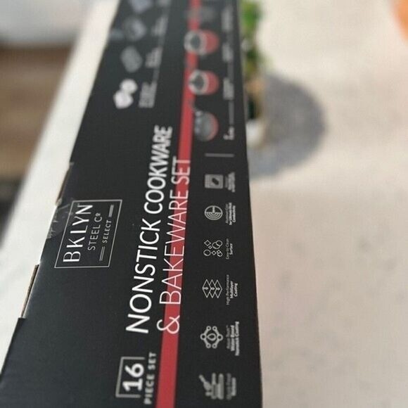 NEW Sale Brooklyn 16 piece NONSTICK COOKWARE & BAKEWARE SET deals From preparing a delicious dinner to creating a yummy dessert, and everything in between, this Brooklyn Steel Co. set includes the cookware and baking essentials you need. Nonstick coatings make the task even easier. Set includes: • 8" fry pan • 1.5-gt. saucepan with lid • 5-gt. Dutch oven with lid • 8" × 8" pot holder • 15" cookie sheet • 9" × 13" cake pan • 6-cup muffin tin • Three felt cookware protectors • 17-oz. snap container • 28-oz. snap container • Multi-layer nonstick coatings • Forged aluminum • Aluminum; protectors: felt; containers: polypropylene