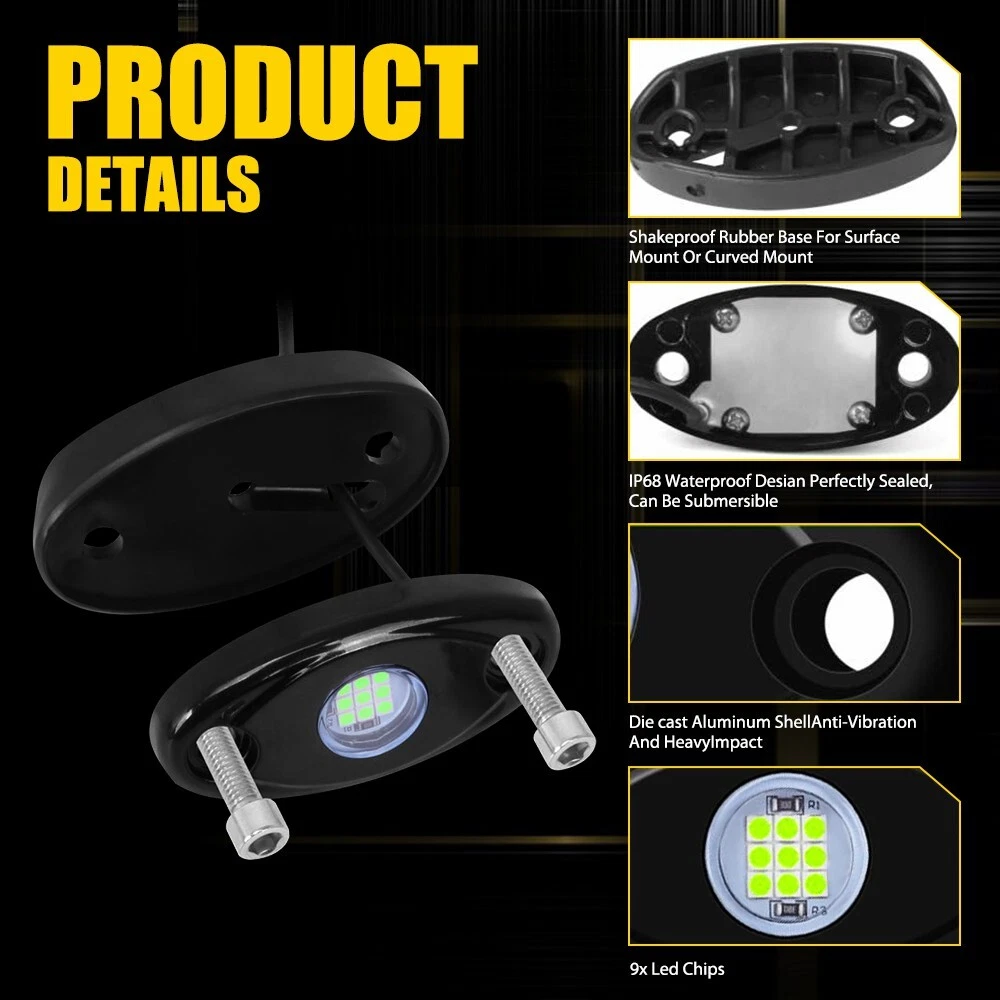 Green LED Rock Lights,16 Pods Underbody Wheel Light For Cars,SUV,Jeep,Trucks,UTV,Ships,Motorcycles etc Specifications: LED:9 LED Color:Green Waterproof:IP68 Service life:50000h+ Connection modes:red connects to positive, black connects to negative. Features: *Super Bright LED Chips It is powered by 9 LEDs with low energy consumption and long-time use ,which emit light evenly and have a large illumination area for good driving at night. *Wide fitment 16x Green LED Rock Lights 12V Offroad Truck Underbody For JEEP Offroad Truck S Green LED Rock Lights,16 Pods Underbody Wheel Light For Cars,SUV,Jeep,Trucks,UTV,Ships,Motorcycles etc Specifications: LED:9 LED Color:Green Waterproof:IP68 Service life:50000h+ Connection modes:red connects to positive, black connects to negative. Features: *Super Bright LED Chips It is powered by 9 LEDs with low energy consumption and long-time use ,which emit light evenly and have a large illumination area for good driving at night. *Wide fitment Widely used in car lights, off-road lights, agricultural machinery, construction lights, forklift lights, snow lights, underglow neon lights, light armored vehicles and other vehicles with underbody lighting. *IP68 Waterproof and dust proof The durable underglow led rock light kits feature die-cast aluminum housing and unbreakable lens, strong heat dissipation/ waterproof / shockproof / dust-proof / rust-proof, no worries work in rain or even work under water and harsh environments. *Easy to install It could be mounted anywhere you want. Perfect for car's underbody interior exterior etc. Red wire to Positive, black wire to Negative. Professional installation recommended. Packaging include: Underbody Wheel Light*16 Accessories package Item Specifics Brand AUXITO Number of Bulbs 16 Waterproof Yes Type Rock Light Placement on Vehicle Front Rear Left Right Under Fender Wheel Eyebrow Grill Wheel Arch Mudgua Voltage 12V Fitment Type Performance/Custom Manufacturer Part Number Does Not Apply Manufacturer Warranty 2 Year Light Color Green Wattage 9W Bulb Type LED Material ABS Lighting Technology LED Suitable For Off-Road Light,Underbody Light,Wheel Light Features CANbus Compatible OE/OEM Part Number Does Not Apply Bulb Life Hours Up to 50,000 Hours FAQ ♥ If you have a decoding problem or any other problems, please contact us first, we will help you with it. We will reply you within 24 hours in working days. I'm a new seller, thanks a lot for your trust and convince! I will serve you with all my heart. ♥ Q1: Will this bulb fit my vehicle? A: We can match almost any vehicle to one of our bulb sizes. eBay only lets us include some vehicle fitments per listing, but if your vehicle does not show up on the compatibility table at the top of our listings, welcome you to contact us for free consulation before purchasing a product. Q2: My item has not arrived, what's taking so long? A: Sometimes items take longer than expected, especially if it’s going far or to rural area. Check with your post office to see if your item has been held up. Sometimes Royal Mail will not update a tracking number until it has arrived at its destination. If your item still don't arrive after a few days, let us know so we can double check for you and help solve it asap. Q3: My bulbs won't fit, help! A: Special bulb holder may be required. See if you can take the holder from the stock bulb. If not, let us know. The bulb size may be wrong, double check the item you received with the item you ordered. Do you have an aftermarket lighting housing? These may not be perfectly fitted for aftermarket bulbs and will require some manual modifications. Q4: Neither side lighting up? Both sides flicker, hyper flash, or work inconsistantly. A:Check the light fuses, and then check the ballast plugs to insure correct installation. If this doesn't work, there may be a voltage problem with the vehicle. You probably just need a relay or capacitor. Even though some bulbs are builtin resistors, they may still need a decoder. Payment (1). We gladly accepts payment via PayPal, We will ship your item(s) within 24 hours. (2). Before payment, please keep the consistency of Paypal address and ebay address. (3). Quantity orders are welcome! Returns (1). We offer 60 days free return policy. Please contact us within 60 days from the date you receive your order if you have any issues with the product or want return. Refund will be send after we got your resend package. (2). All returned items should be in the original packaging , return tracking information should be provided . Contact us (1).Negative feedback will not help resolve any problems you have, please contact us via eBay messages before leaving negative feedback , our customer service will make best effort to help you with the issues. (2).We maintain high standards of excellenceand strive for 100% customer satisfaction! Feedback is very important to us. We request that you contact us immediately before you give us neutral or negative feedback, so that we can satisfactorily address your concerns. About us We're professional in car and motorcycle accessories, especially in LED bulbs. We have our own factory and R&D team. Our belief is to sell top quality items that fit your car and serve you with our heart. Anything please feel free to contact us! Our customer service is very responsibility. Come and follow us! DESCRIPTION PAYMENT SHIPPING RETURN POLICY CONTACT US Shop Category Store Home Other Hot Item 5/16" Marine Outboard Boat Motor Fuel Gas Hose Line Assembly with Primer Bulb US USD 19.94 AUXITO 9012 HIR2 LED Headlight Kit Bulb High/Low Beam White 80000LM Super Bright USD 44.99 AUXITO 7440 7443 7444 LED Backup Reverse Back Up Light Bulbs Super Bright White USD 12.59 BLACK ROOF TOP TRIM MOLDINGS FOR 2006 2007 2008 2009 2010 2011 2012 TOYOTA YARIS USD 17.99 2PCS O2 Oxygen Sensor Up+Downstream For 08-14 Chevrolet Equinox/GMC Terrain 2.4L USD 29.99 New List Item FOR TOYOTA COROLLA 2014-18 CE LE S STD 4 Cyl VAPOR CANISTER PURGE 