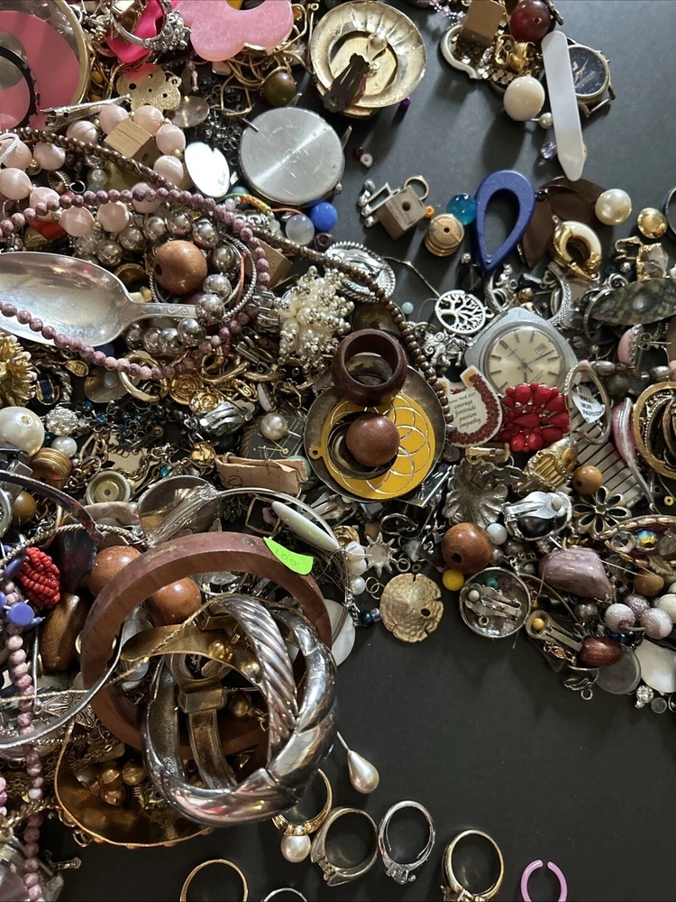 This mixed lot of scrap jewelry includes 17 pounds of materials that can be crafted into unique pieces. The lot includes a variety of materials such as junk and scrap, perfect for those who enjoy creating their own jewelry. With this collection, you can find inspiration for your own personal style and create one-of-a-kind pieces. Whether you are a seasoned jewelry maker or just starting out, this lot is perfect for you. Don't miss out on the opportunity to add these materials to your collection and let your creativity run wild.some pieces wearable others not .