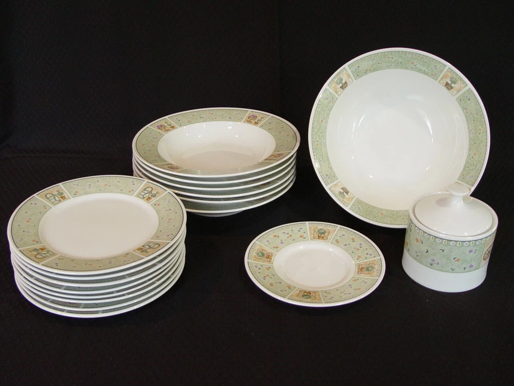 SUBJECT TO END ANYTIME 17 SALAD PLATES BOWLS SALAD PLATE SUGAR BOWL SAUCER BRANDYWINE SANGO DISHES DISH PIECE COUNT: 17 PIECES 8 SALAD PLATES: 7 5/8" // 1 SUGAR BOWL WITH LID: 3 7/8" // 1 SERVING BOWL: 9" ROUND // 6 RIM SOUP BOWLS: 8 3/4" // 1 SAUCER: 6 1/4" CHIP FREE; CRACK FREE EXCELLENT CONDITION SHOWN Check out our other items SIGN UP FOR NEWSLETTER & SALES NOTIFICATIONS at http://stores.ebay.com/LifestyleProductsRUs Be sure to add me to your favorites list ! BE SURE YOU CLEARLY UNDERSTAND ALL OF THE TERMS AND CONDITIONS OF THE SALE, INCLUDING SHIPPING/HANDLING COST, BEFORE BIDDING/BUYING PLEASE READ THE INFO PROVIDED THOROUGHLY IT IS IMPORTANT THAT YOU SEE THE VALUE OR FEEL GOOD ABOUT THE TOTAL TRANSACTION BEFORE BIDDING / BUYING. A SAVVY SHOPPER LOOKS AT THE TOTAL TRANSACTION TO HER / HIM IT IS UNFAIR & UNREASONABLE TO BID WITH FULL KNOWLEDGE OF THE CONDITIONS & THEN LEAVE SELLER A LOW RATING IN THE 5 STAR DETAILED FEEDBACK or LESS THAN POSITIVE FEEDBACK OUR GOAL IS TO PROVIDE WIN-WIN TRANSACTIONS FOR THE BUYER & THE SELLER GETTING HIGH 5 STAR DETAIL FEEDBACK RATINGS AS A SELLER IS A MUST TO ENABLE US TO CONTINUE TO BRING THE WIDE ASSORTMENT OF MERCHANDISE THAT DETERMINES OUR STATUS WITH EBAY FINAL SALE AS IS. BUYER MUST MAKE PAYMENT WITHIN 2 DAYS. ALL BUYERS AGREE TO PAY IN U.S. CURRENCY. S/H IS NON-NEGOTIABLE & NON-REFUNDABLE-COVERS SHIPPING & OTHER COSTS RELATED TO SALE. CANCELLATION-RESTOCKING FEE: 30% OF TOTAL TRANSACTION (MERCHANDISE + SHIPPING FEE) IS NON-REFUNDABLE FOR ANY CANCELLATION BUYER REQUEST & SELLER APPROVES. SHIPPING COST PAID BY SELLER MUST BE REIMBURSED BY BUYER IF RETURN REQUEST IS APPROVED ALONG WITH RETURN SHIPPING COST PAID BY BUYER. THANKS AND GOD BLESS!!! PLEASE READ PAYMENT INSTRUCTIONS BEFORE BIDDING!!! International Buyers – Please Note: Import duties, taxes and charges are not included in the item price or shipping charges. These charges are the buyer's responsibility. Please check with your country's customs office to determine what these additional costs will be prior to bidding/buying. These charges are normally collected by the delivering freight (shipping) company or when you pick the item up – do not confuse them for additional shipping charges. We do not mark merchandise values below value or mark items as "gifts" US and International government regulations prohibit such behavior. Request shipping/handling fee before bidding.