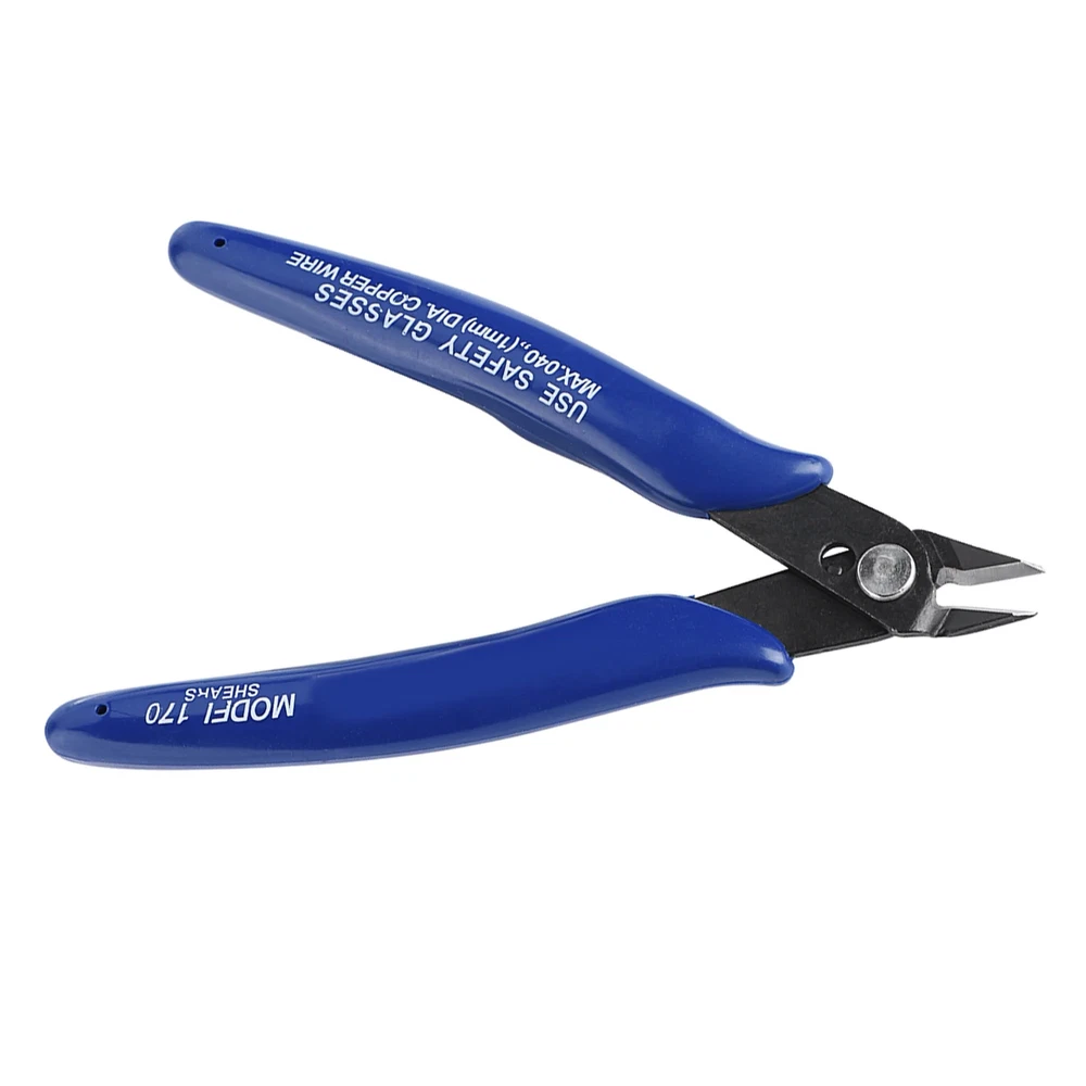 Features: Compact, lightweight , the overall weight of only 60 grams. Refined and comfortable handle design, feel particularly . Lightweight spring design, ease open bite, can be a anti-fatigue during use. Scientific oblique mouth flat design, blade bite neat tight. You can gently cut 0.1MM metal wire. Special high-speed tool steel, hardness reaches 58 degrees. The following wires can be easily cut: soft metal below diameter of 1.6MM, iron wire below diameter of 0.8MM. Particularly suitable for cutting wire, electronic foot trimming plastic products, cut a small metal wire. Repair for the electronics industry, jewelry processing, model making and fishing. Specification: Model Number: 170 Type: Diagonal Pliers Color: Blue Material: High carbon steel jaw, Anti-slip rubber handle Size: 130 * 76mm Net Weight: Approx. 60g Shear Diameter: 1.2mm Handle Length: 95mm Jaw Length: 12mm Spring Loaded: Yes Application: 3D printer Package weight: 66g Package Included: 1 x Wire Cutter Tebru 170, Compact Diagonal Wire Hand Cutter Lightweight spring design for ease of use Ideal for cutting soft metal wire below 1.6MM and iron wire below 0.8MM A refined and comfortable handle design reduces fatigue during prolonged use Scientific oblique mouth flat design ensures neat and tight blade bite Perfect for electronics repair, jewelry processing, model making, and fishing Made from special high speed tool steel with a hardness of 58 degrees