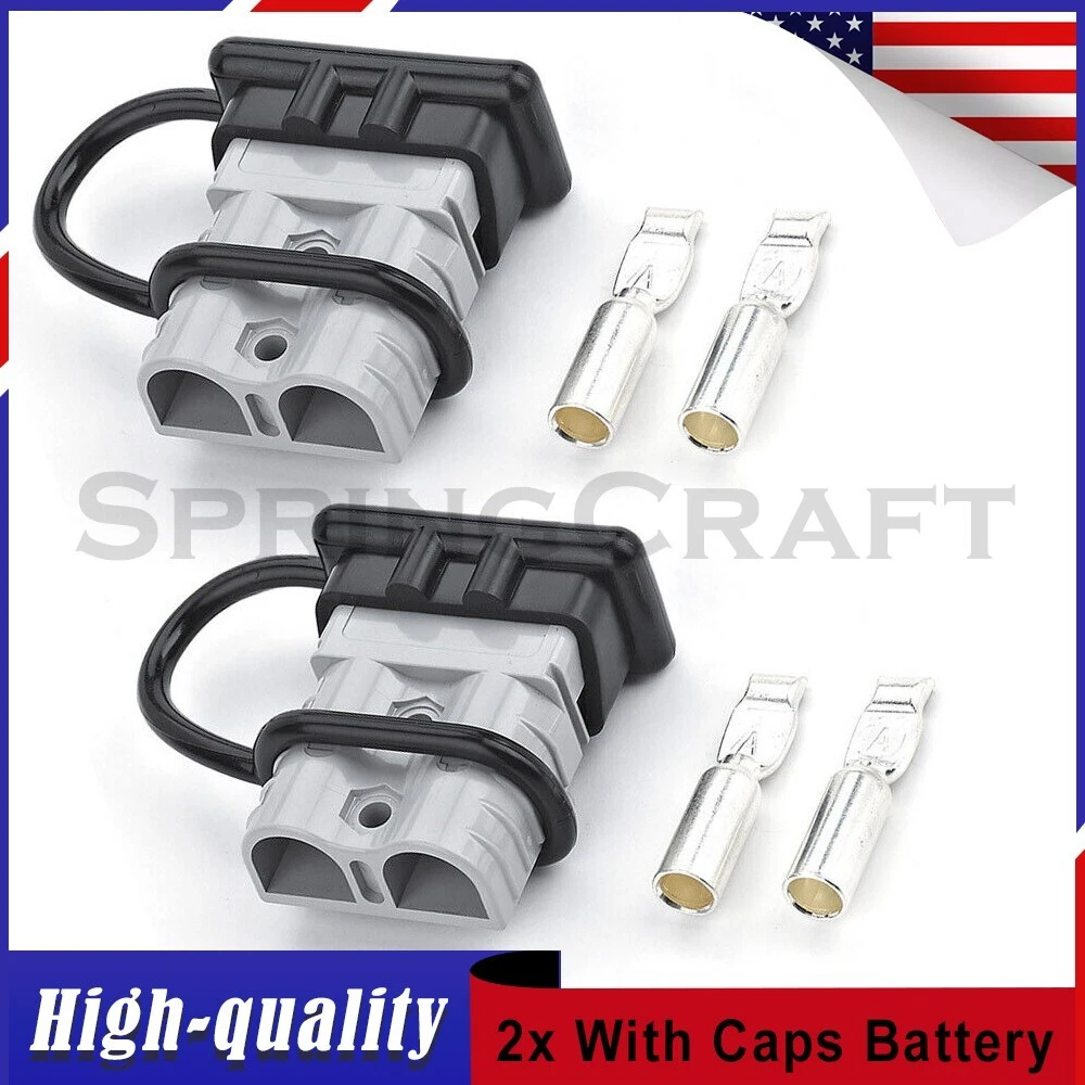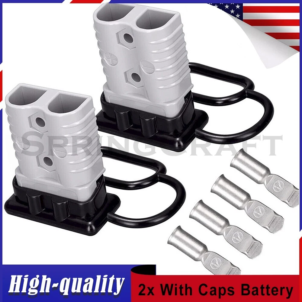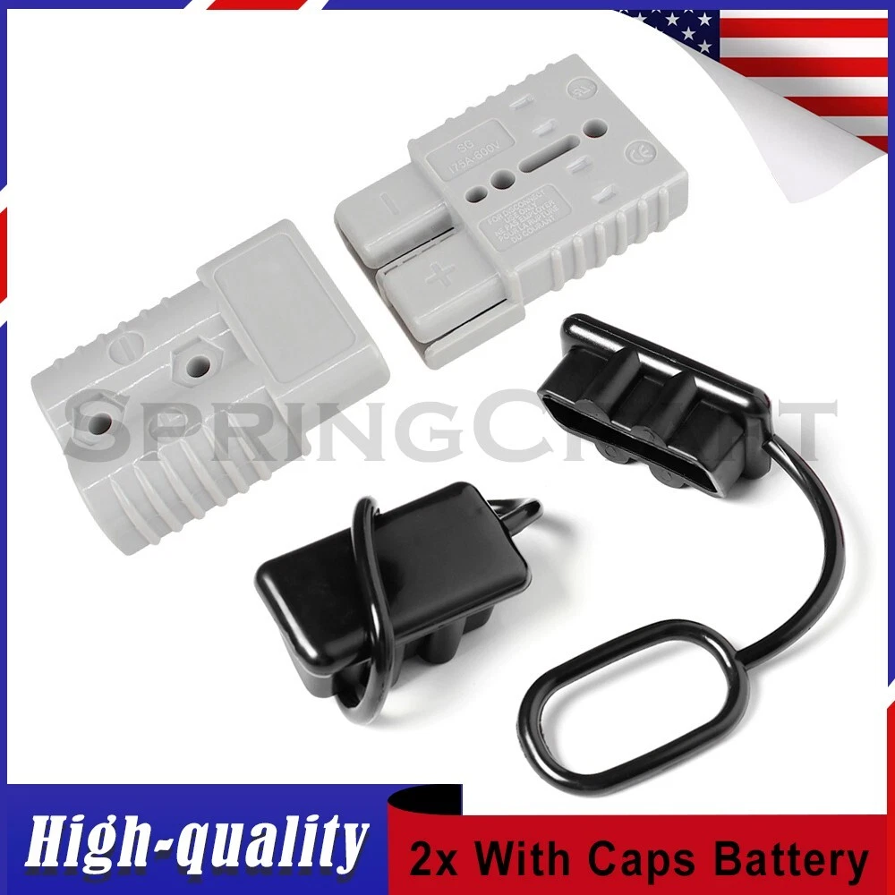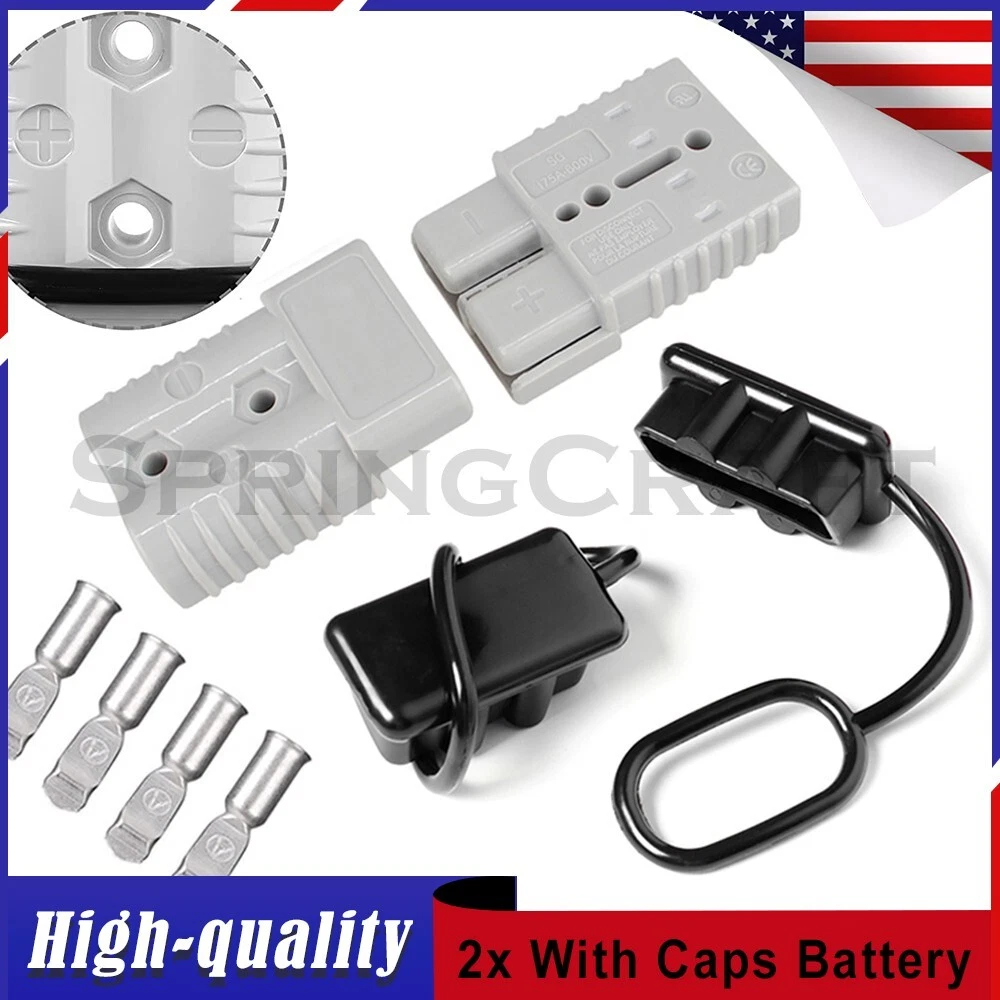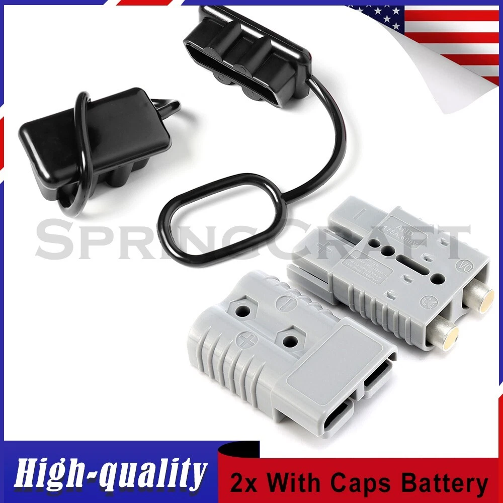 Features: WIRE CONNECTOR SET: This handy electrical wire connection set includes 2 clearly marked quick connect plugs that let you patch and disconnect 1/0 AWG (10-50mm²) wire pathways from 12V, 24V, or 36V batteries, supporting currents up to 175 amps WIDE APPLICATION: Our versatile weatherproof QC plugs offer a simple, convenient way to handle direct power connections to car batteries; truck, ATV, and RV winches, lifts, and cranes; and trolling and outboard motors on boats and watercraft, as well as home and industrial applications like lathes, chargers, and power inverters BUILT TO LAST: Each wire harness's unibody polycarbonate housing provides superior resistance to wear, corrosion, water, and heat for its full service life of over 10,000 connections; the 4 copper terminal pins are silver plated to minimize resistance and maximize stability and dependability; and the attached boot caps keep debris out between uses EASY TO USE: These quick connectors provide built-in texturing and polarity marks for sure grip and easy use; their genderless design attaches & detaches quickly and smoothly; and use is as easy as stripping the ends of your wires, fitting them into the terminals, and securing them with a crimping tool Specification: Material: Polycarbonate, Rubber, Copper Max. Current: 175A Voltage: 600V Wire Size Range: 1/0 AWG (10-50mm²) Operating Temperature Range: −4 to 221°F Terminal Pin Diameter: 0.5 in. Connector Dimensions: 3 1/8" x 2 1/8" x 1" (L*W*T) Connected Set Dimensions: 5 1/4" x 2 1/8" x 1" (L*W*T) Package Included : 2x Connector Plugs + 2x Dust Covers + 4x Terminal Pins