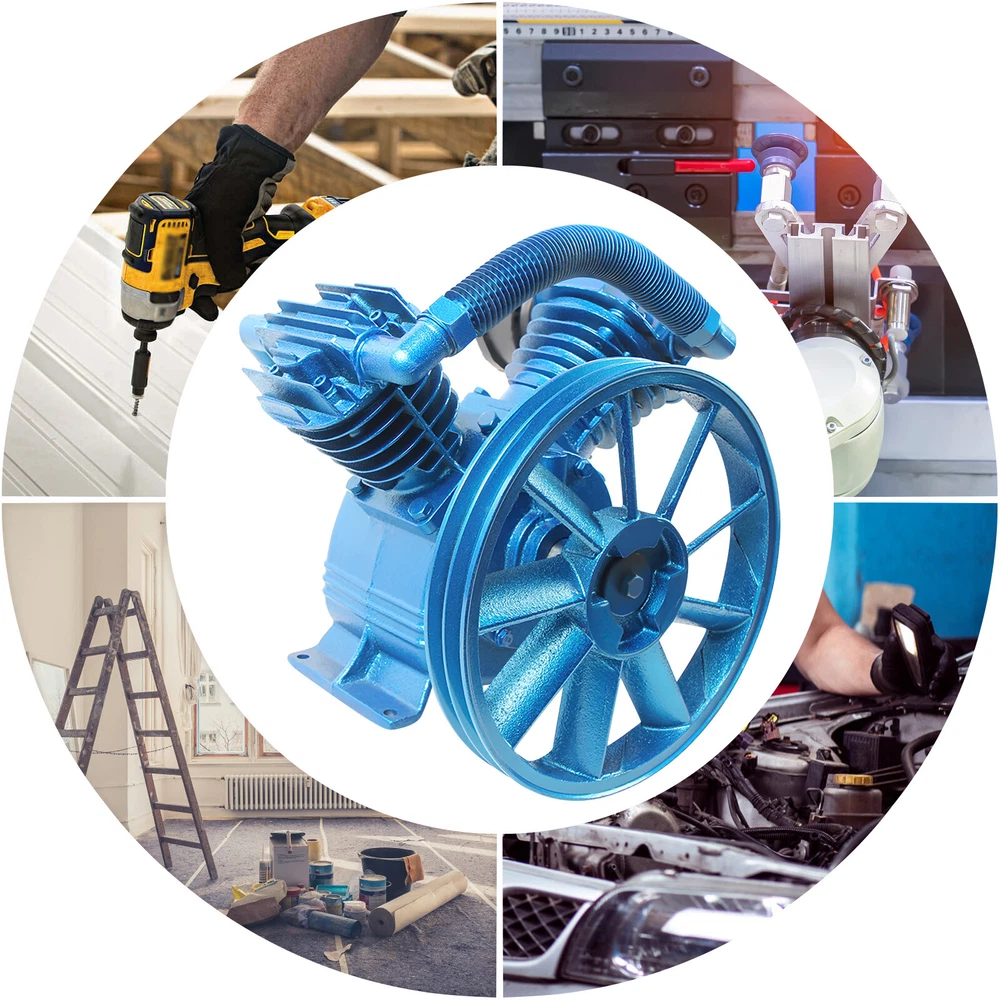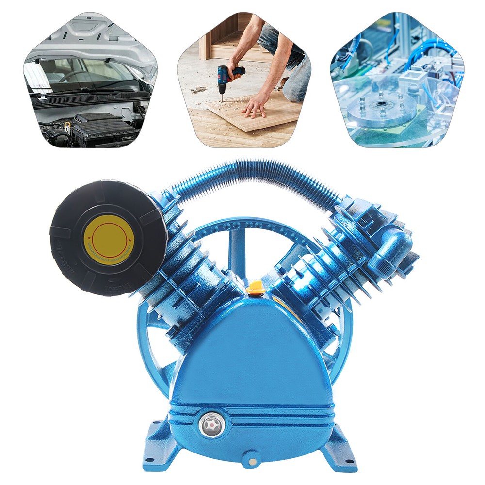 175PSI 5.5HP Twin Cylinder Air Compressor Pump Head V Type Double Stage New 5.5HP 175PSI V Type Twin Cylinder Air Compressor Pump Head Double Stage Features: High efficiency, high precision, universal, low energy consumption. High quality material, not easy to damage. Strict balance support and correction to ensure the smooth operation of the main engine. Special valve steel is used for hair piece, which has good strength and toughness at high temperature. Faster inflation and low noise. Strong cooling blade, good cooling performance. Installation notes: 1、 When placing the pump head, the motor pulley and the belt pulley must be in the same straight line. The more aligned, the less vibration. 2、 Tighten the screws (including the base and pulley screws). 3、 After the screws are installed, the belt shall be tightened. If the belt is loose, please move the motor. After the screws are tightened, reinstall the belt. 4、 The new machine must be filled with engine oil before starting, and the engine oil shall be added to the center of the red point of the oil mirror. 5、 The rotation direction of the pump head is clockwise. If it reverses, please adjust it in time. 6、 Change the oil for the first half month, the second one and a half months, and the next two to three months. 7、 Replace the air filter regularly. Under normal conditions, it must be replaced in two to three months, and in case of poor environment, it must be replaced in one month. 8、 The operation of the machine will produce high temperature, be careful not to burn! Item included: 1* 175PSI 5.5HP V Type Twin Cylinder Air Compressor Pump Head Double Stage Payment Delivery details Terms of sales About us Contact us Payment We accept ebay payment 。 Fees such as import duties, taxes are not included in the item price or shipping costs. These charges are the buyer's responsibility. Delivery details Shipping: 2-9 working days to: USA Terms of sales We maintain high standards of excellence and strive for hundred percent customer satisfaction. Feedback is very important to us. We hope that you contact us immediately before you give neutral or negative feedback, so that we can address your concerns. It is impossible to address issues if we do not know about them! About us Your satis faction is our ultimate goal. We work hard to earn your trust and future business. Our certified technicians have tested each item before shipping. The unit comes with 1 year limited warranty on all manufacturing defects. a) If you receive a defective item, you may return it or ask for a discount. Please contact us within 14 days after you receive the package. b) What you returned must be intact and in its original packaging as re? u. Customer is responsible for shipping costs of the returned item. c) We will cover the cost of shipping back t with the shipping rate indicated in the registration page. We will send you a new unit or refund the full payment you paid. Thank you. Contact us Business Hour Business Hour: Monday To Friday: 8:30 AM to 5:00 PM (Beijing China time) Due to time zones, our reply to your questions may not be immediately. But within above working time, we will reply your email within 24 hours. If it's non-workdays, please kindly be patient and wait till Monday. Please contact us with ebay message. Please feel free to contact us if you have any questions. Monday To Friday: 8:30 AM to 5:00 PM (Beijing China time) Due to time zones, our reply to your questions may not be immediately. But within above working time, we will reply your email within 24 hours. If it's non-workdays, please kindly be patient and wait till Monday. Please contact us with ebay message. Please feel free to contact us if you have any questions.