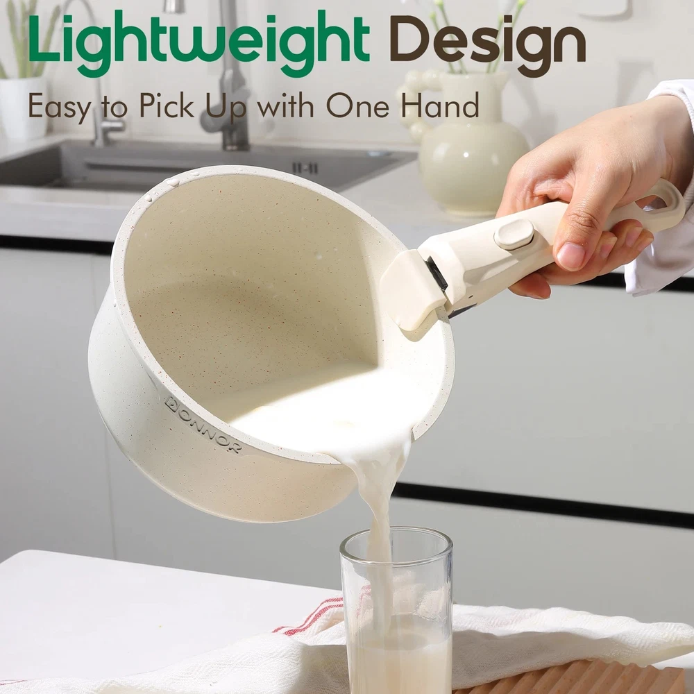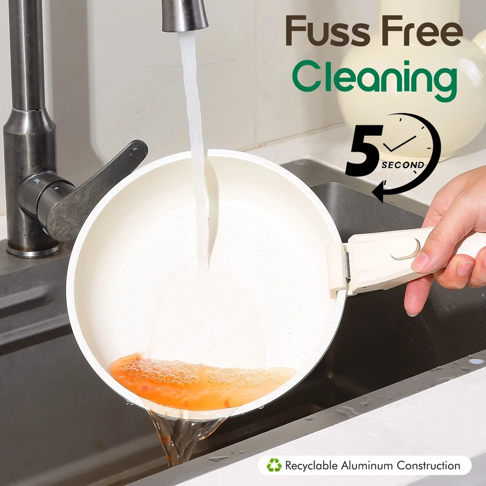5-Piece Nonstick White Cookware Set with Detachable Handles