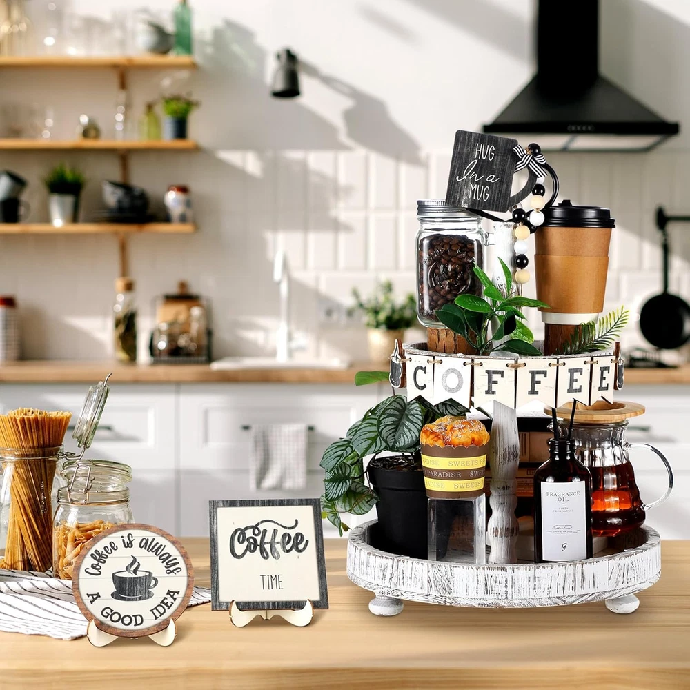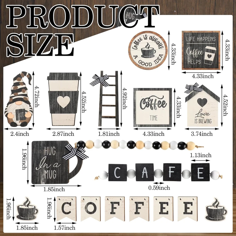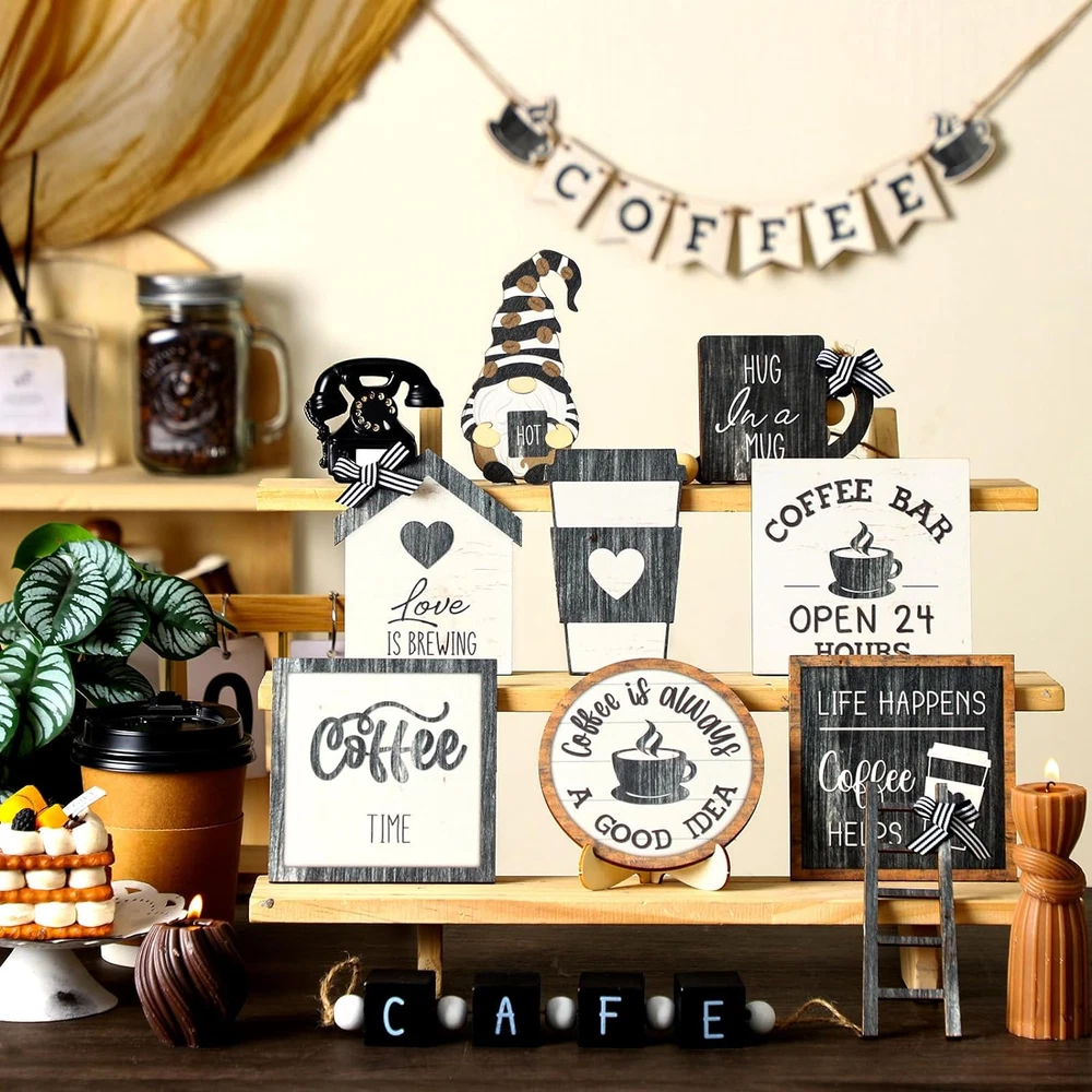 Absolutely love this coffee bar set! The 17-piece wooden decor adds such a charming farmhouse vibe to my kitchen. The details are adorable—coffee cups, ladders, and gnomes create a cozy café feel. The quality is solid, and it’s perfect for styling tiered trays or gifting to fellow coffee lovers. So happy with this purchase!