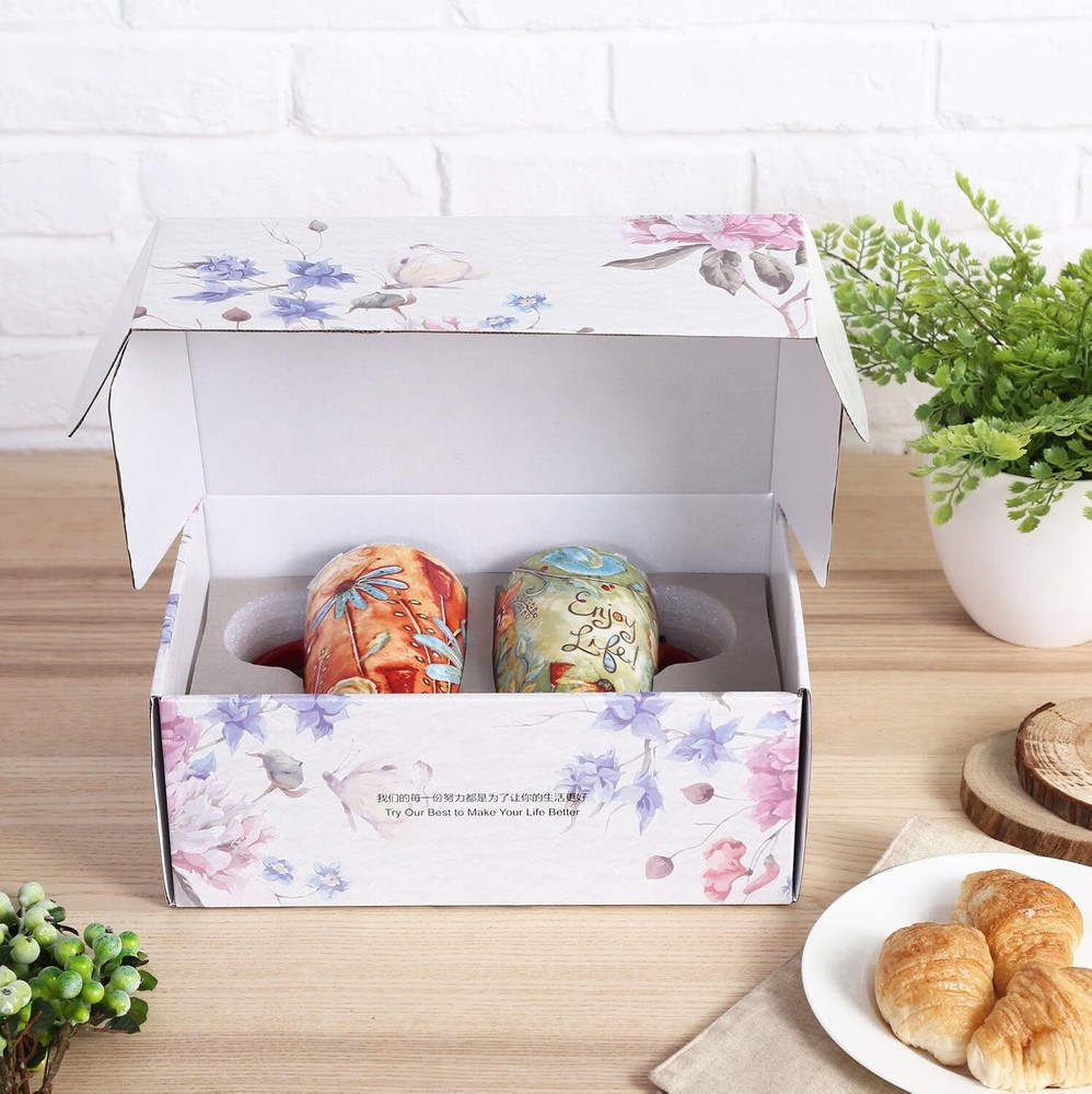 CAPACITY: Hold up to 17 ounces. Size is 3"W x 4"L x 17"H MATERIAL: Dishwasher safe. Made of durable high-fired ceramic . Easy to clean THOUGHTFUL DESIGN: Handmade elegant minimalist. PACKAGE: Set of 2. Comes in a drop resistance box to resist breakage. No questions asked and hassle free returns. Each piece is lead free,dishwasher,oven and micowave safe. Remove lid before putting in microwave. Easy to clean and re-heat drink