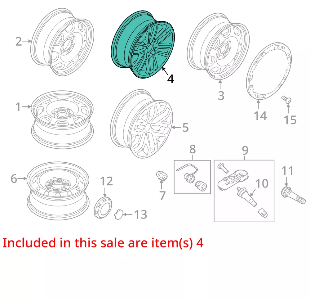 Hollander Welcome to our eBay store! 17x7-1/2 Aluminum Rim Wheel 6 Spoke from 2014 FORD F150 10305087 Description This wheel is pitted. This listing is for the sale of a single wheel only. Please note that the wheel is being sold separately and does not include any additional accessories such as the center cap or air valve, unless explicitly shown in the item's picture. The pictures of complete vehicles are provided for reference purposes only. Kindly refer to the specific picture of the item for sale to determine the exact contents of the listing. If you have any questions, please message us through Ebay. Donor Vehicle Model : F150 Year : 2014 Mileage : 130000 (0 = not available or unknown) Stock Number : EPH5 Notes : 2,C,PITS *PITS* This Part Will Fit These Makes And Models With These Options FORD F150 PICKUP 15-20 17x7-1/2, aluminum, (6 spoke) About Us Payment Shipping Returns Warranty About Us We are happy to verify fitment for you prior to purchasing via your vehicle’s VIN (Vehicle Identification Number). Please feel feel to reach out to us via eBay messaging at any time if you have any questions or concerns and we will do our best to get back to you as soon as possible. Payment All orders must be paid in full prior to shipment. Payments are processed through eBay. Shipping Items are shipped after receiving cleared payment. Most items can only be shipped to US addresses within the continental 48 states. Shipping to AK, HI, PO Box, APO, FPO & US Protectorates might be available however you would need to contact us first as we may be able to arrange shipment to you (depending on the item). FREIGHT ORDERS Please note that larger freight items may not be deliverable to certain residences and apartments. We recommend that you contact us before ordering large freight items if you plan on having the item delivered to a residence or apartment, as additional arrangements may need to be made for delivery. Freight orders that are traveling long distances from Washington State may be interlined with another freight company due to the distance. Due to this, there may be additional tracking information needed. If there are any questions along the way, please contact us, and we can provide updated information. We apologize for any inconvenience this may cause and appreciate your understanding. Returns All parts must be returned in their original condition to receive full credit. Details regarding timeframe as well as payment for return shipping are outlined in the return section at the top of each individual eBay listing. Please message us with questions. Warranty The warranty timeframe is listed within the Warranty section of the listing for each part. Labor and costs associated with part installation are not covered under warranty. Copyright © 2022, All Rights Reserved. Template Design & Developed By: Copyright © 2022, All rights reserved. Design & Developed By : eFusionWorld