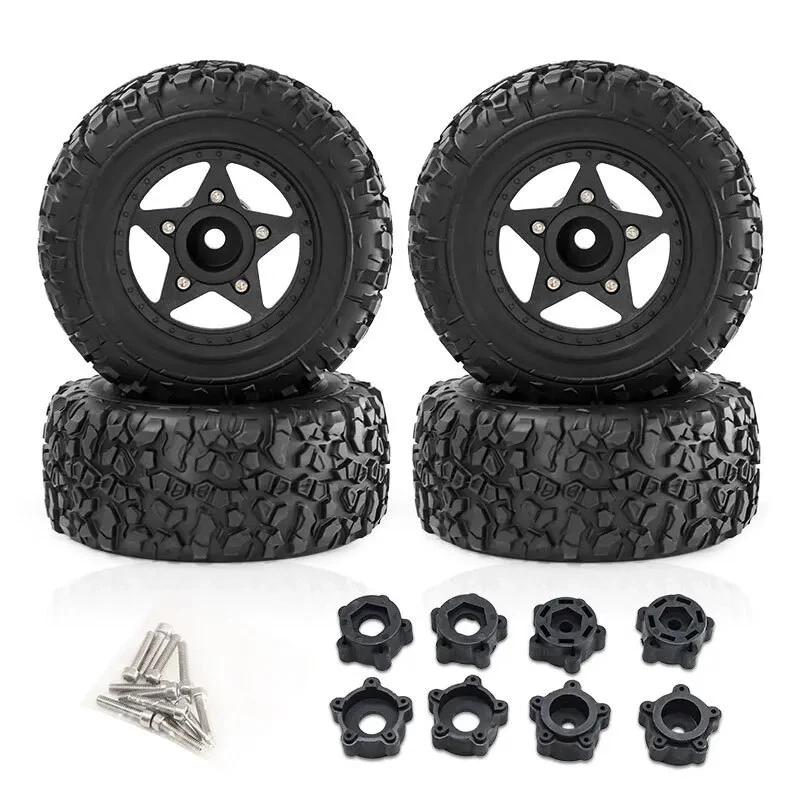 4Pcs 109mm 1/8 1/10 Short Course Truck Tire with 12mm 14mm 17mm Wheel Hex for TRAXXAS Slash ARRMA SENTON Vkar SCTX10 HPI RC Car Note: You need to glue the rims and tires by yourself Features: 100% Brand New Made of High Quality Meterial, Stronger And More Durable, Improve The Appearance Easy to use,Easy to replace Specifications: Material:Plastic+Rubber Quantity:4pcs Outer diameter: 109mm Width: 46mm Weight:131g/pcs Hex:12mm & 14mm & 17mm(Three sizes can be replaced by yourself) Suitable for:1/8 1/10 Short Course Truck Note: Color deviation might exist due to different monitor settings and light, please kindly understand. Package List: 4*RC Car Tire 4*12mm Hex Adapter 4*14mm Hex Adapter 4*17mm Hex Adapter NOTICE: The wheels and tires are not glued together and must be glued before use. Please carefully check the tire size before purchase, whether it is the same as your model tire size, and confirm it again before payment, so as not to return the refund, thank you, wish you a happy shopping.