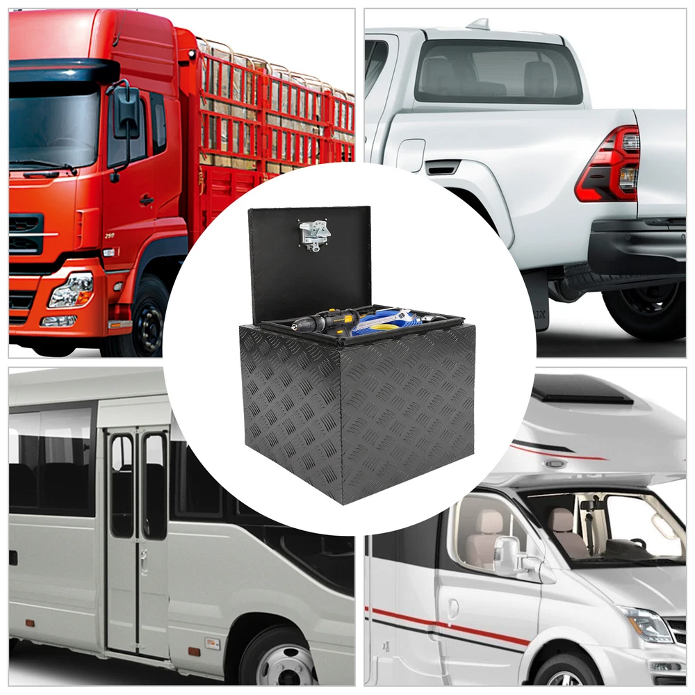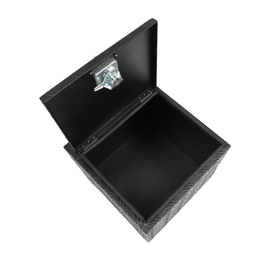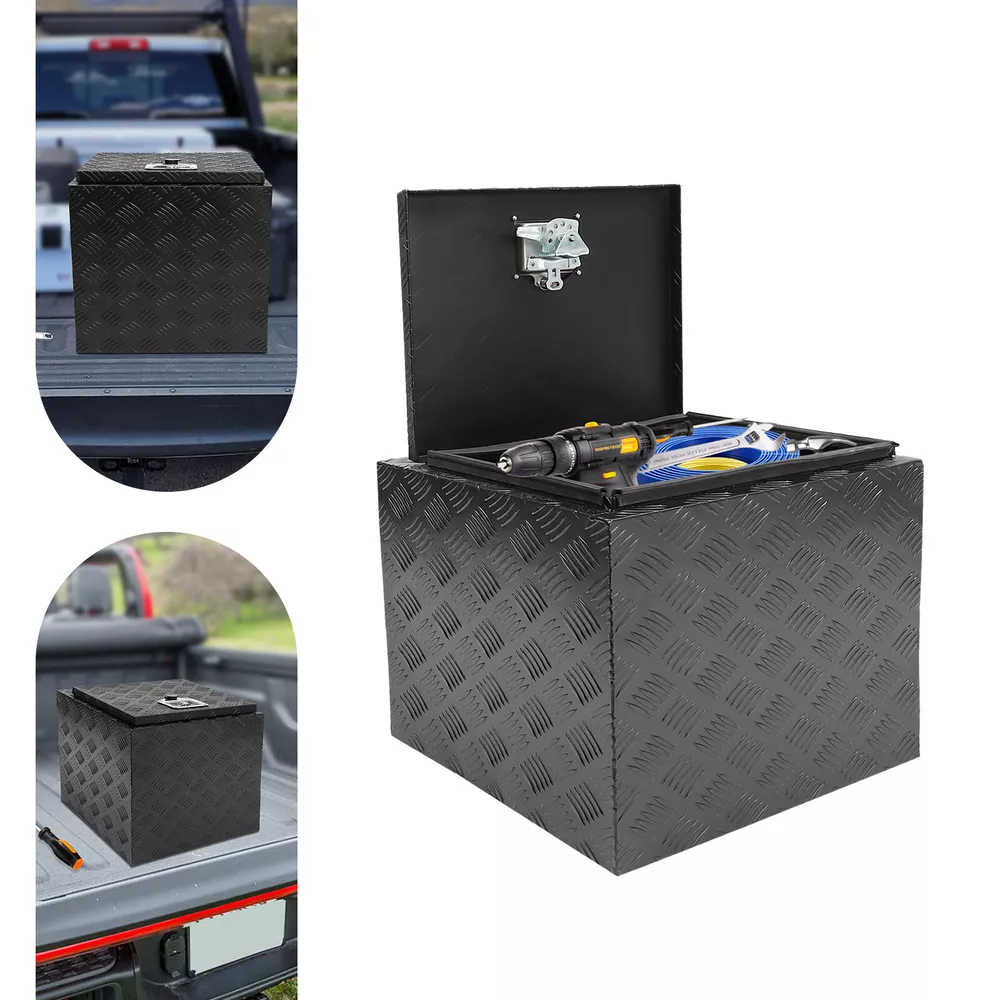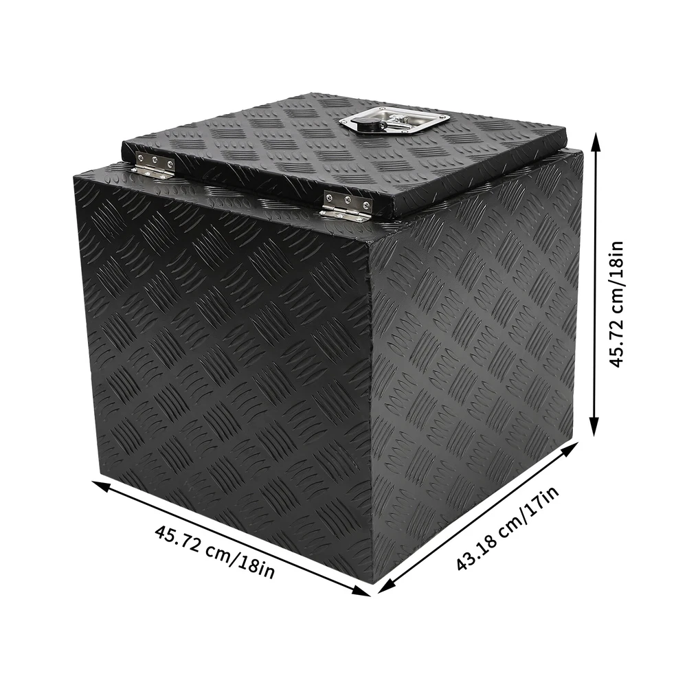 18" Aluminum Truck Underbody Tool Box Trailer RV Tool Storage Under Bed W/Lock Description A large-capacity toolbox is always a handy helper for outdoor activities. This product has a large capacity to provide ample storage space for your tools. It also has a security lock, which can well protect your privacy and the safety of your belongings. The flap design allows you not to worry about it being soaked by rain, which can provide you with a safe and reliable transport of goods. Key Highlights High-quality Material: This product is made of high-quality aluminum and undergoes a fine aluminum welding process, which has high hardness, high wear resistance, anti-corrosion, rust-proof performance and long service life. Safe and Secure: The top security lock can ensure the safety of your belongings and protect your privacy. Large Capacity: The large size of the product (18*17*18 inches) can provide you with plenty of storage space, allowing you to store more items at once. Easy to Clean: The simple structure of the product makes it easy to clean. You only need to use water and a rag to make it look new. Thoughtful Design: The inside flap design can effectively prevent rain from entering and soaking, thus keeping the items inside dry. The large opening also allows you to have full access to all the contents of the box. High Stability: The stable square structure and anti-slip pattern on the surface provide high stability and high friction, which makes the product more stable to stand on the car or the ground. Installation-free : The one-piece structure of this product enables you to use the product directly after receiving it without installation. Tool Organizer: It keeps all your tools and small accessories organized to keep them from rolling around in your truck or RV. Protective Shipping: The five-layer corrugated cardboard box and padding fixing design protects the product from wear and tear during shipping, allowing you to receive a virtually undamaged product. Specifications Foldable Handle: The foldable handle design can better protect the handle from being broken or worn, and the "T" structure makes it easier to pull. Keyhole Protection Shell: It can effectively prevent the keyhole from entering water so that the keyhole is not easy to rust and corrode. Application It is versatile and can be used in trucks, RVs, ATVs, trailers, garages, job sites, flatbeds, camper hook racks, luggage racks, pickup trucks, or dump trucks. Specification Material: Aluminum Color: Black Process: Aluminum Welding Assembly Required: No Weight: 6 kg/ 13.33 lbs Package Size: 47 *45*47cm/18.5*17.72*18.5in Product Size: 46*43*46 cm/ 18*17*18 in Package Included 1 * Heavy Duty Aluminum Tool Underbody Box 2 * Keys Notes Please allow the slight color difference caused by the shooting light and the 1-3 cm error due to manual measurement, and make sure you do not mind before ordering. Payment Delivery details Terms of sales About us Contact us Payment We accept ebay payment 。 Fees such as import duties, taxes are not included in the item price or shipping costs. These charges are the buyer's responsibility. Delivery details Shipping: 2-9 working days to: USA Terms of sales We maintain high standards of excellence and strive for hundred percent customer satisfaction. Feedback is very important to us. We hope that you contact us immediately before you give neutral or negative feedback, so that we can address your concerns. It is impossible to address issues if we do not know about them! About us Your satis faction is our ultimate goal. We work hard to earn your trust and future business. Our certified technicians have tested each item before shipping. The unit comes with 1 year limited warranty on all manufacturing defects. a) If you receive a defective item, you may return it or ask for a discount. Please contact us within 14 days after you receive the package. b) What you returned must be intact and in its original packaging as re? u. Customer is responsible for shipping costs of the returned item. c) We will cover the cost of shipping back t with the shipping rate indicated in the registration page. We will send you a new unit or refund the full payment you paid. Thank you. Contact us Business Hour Business Hour: Monday To Friday: 8:30 AM to 5:00 PM (Beijing China time) Due to time zones, our reply to your questions may not be immediately. But within above working time, we will reply your email within 24 hours. If it's non-workdays, please kindly be patient and wait till Monday. Please contact us with ebay message. Please feel free to contact us if you have any questions. Monday To Friday: 8:30 AM to 5:00 PM (Beijing China time) Due to time zones, our reply to your questions may not be immediately. But within above working time, we will reply your email within 24 hours. If it's non-workdays, please kindly be patient and wait till Monday. Please contact us with ebay message. Please feel free to contact us if you have any questions.