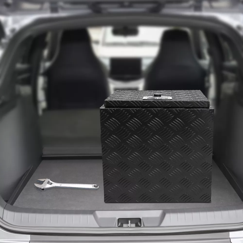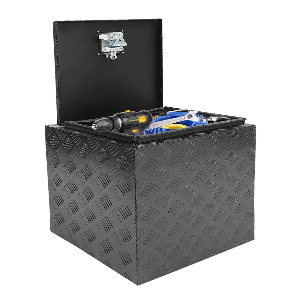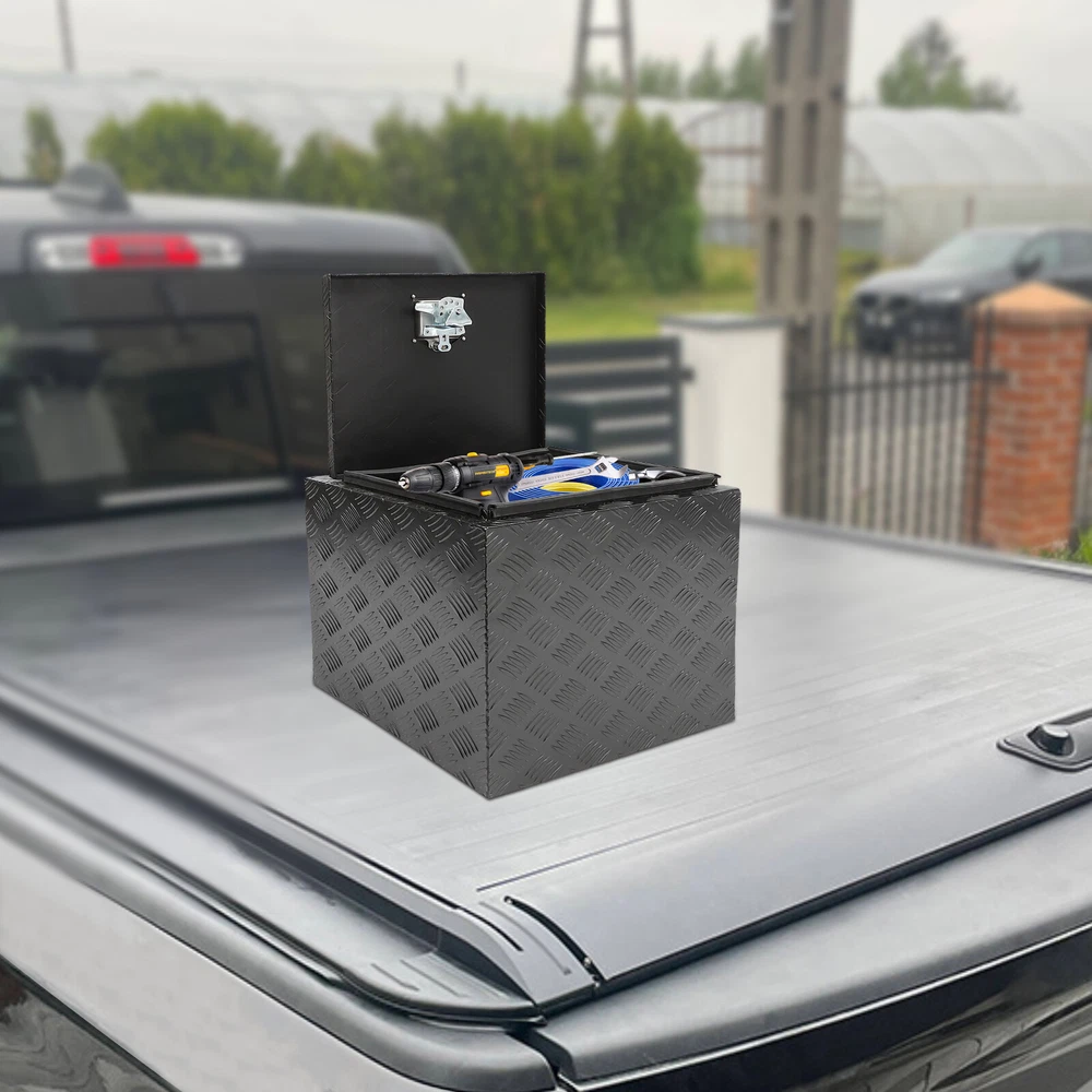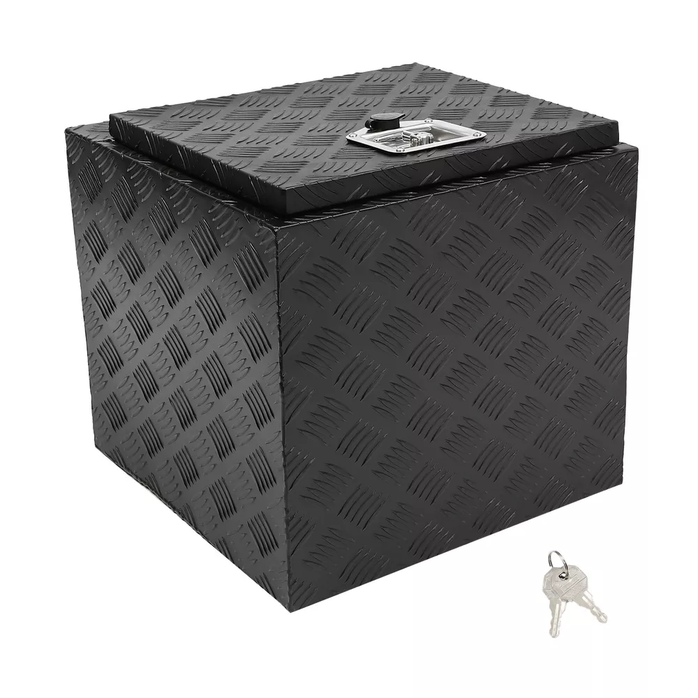 18" Aluminum Truck Underbody Tool Box Trailer RV Tool Storage Under Bed W/Lock Description A large-capacity toolbox is always a handy helper for outdoor activities. This product has a large capacity to provide ample storage space for your tools. It also has a security lock, which can well protect your privacy and the safety of your belongings. The flap design allows you not to worry about it being soaked by rain, which can provide you with a safe and reliable transport of goods. Key Highlights High-quality Material: This product is made of high-quality aluminum and undergoes a fine aluminum welding process, which has high hardness, high wear resistance, anti-corrosion, rust-proof performance and long service life. Safe and Secure: The top security lock can ensure the safety of your belongings and protect your privacy. Large Capacity: The large size of the product (18*17*18 inches) can provide you with plenty of storage space, allowing you to store more items at once. Easy to Clean: The simple structure of the product makes it easy to clean. You only need to use water and a rag to make it look new. Thoughtful Design: The inside flap design can effectively prevent rain from entering and soaking, thus keeping the items inside dry. The large opening also allows you to have full access to all the contents of the box. High Stability: The stable square structure and anti-slip pattern on the surface provide high stability and high friction, which makes the product more stable to stand on the car or the ground. Installation-free : The one-piece structure of this product enables you to use the product directly after receiving it without installation. Tool Organizer: It keeps all your tools and small accessories organized to keep them from rolling around in your truck or RV. Protective Shipping: The five-layer corrugated cardboard box and padding fixing design protects the product from wear and tear during shipping, allowing you to receive a virtually undamaged product. Specifications Foldable Handle: The foldable handle design can better protect the handle from being broken or worn, and the "T" structure makes it easier to pull. Keyhole Protection Shell: It can effectively prevent the keyhole from entering water so that the keyhole is not easy to rust and corrode. Application It is versatile and can be used in trucks, RVs, ATVs, trailers, garages, job sites, flatbeds, camper hook racks, luggage racks, pickup trucks, or dump trucks. Specification Material: Aluminum Color: Black Process: Aluminum Welding Assembly Required: No Weight: 6 kg/ 13.33 lbs Package Size: 47 *45*47cm/18.5*17.72*18.5in Product Size: 46*43*46 cm/ 18*17*18 in Package Included 1 * Heavy Duty Aluminum Tool Underbody Box 2 * Keys Notes Please allow the slight color difference caused by the shooting light and the 1-3 cm error due to manual measurement, and make sure you do not mind before ordering. Payment Delivery details Terms of sales About us Contact us Payment We accept ebay payment 。 Fees such as import duties, taxes are not included in the item price or shipping costs. These charges are the buyer's responsibility. Delivery details Shipping: 2-9 working days to: USA Terms of sales We maintain high standards of excellence and strive for hundred percent customer satisfaction. Feedback is very important to us. We hope that you contact us immediately before you give neutral or negative feedback, so that we can address your concerns. It is impossible to address issues if we do not know about them! About us Your satis faction is our ultimate goal. We work hard to earn your trust and future business. Our certified technicians have tested each item before shipping. The unit comes with 1 year limited warranty on all manufacturing defects. a) If you receive a defective item, you may return it or ask for a discount. Please contact us within 14 days after you receive the package. b) What you returned must be intact and in its original packaging as re? u. Customer is responsible for shipping costs of the returned item. c) We will cover the cost of shipping back t with the shipping rate indicated in the registration page. We will send you a new unit or refund the full payment you paid. Thank you. Contact us Business Hour Business Hour: Monday To Friday: 8:30 AM to 5:00 PM (Beijing China time) Due to time zones, our reply to your questions may not be immediately. But within above working time, we will reply your email within 24 hours. If it's non-workdays, please kindly be patient and wait till Monday. Please contact us with ebay message. Please feel free to contact us if you have any questions. Monday To Friday: 8:30 AM to 5:00 PM (Beijing China time) Due to time zones, our reply to your questions may not be immediately. But within above working time, we will reply your email within 24 hours. If it's non-workdays, please kindly be patient and wait till Monday. Please contact us with ebay message. Please feel free to contact us if you have any questions.