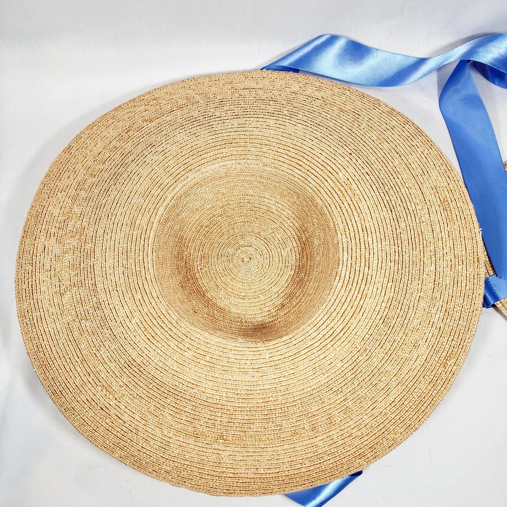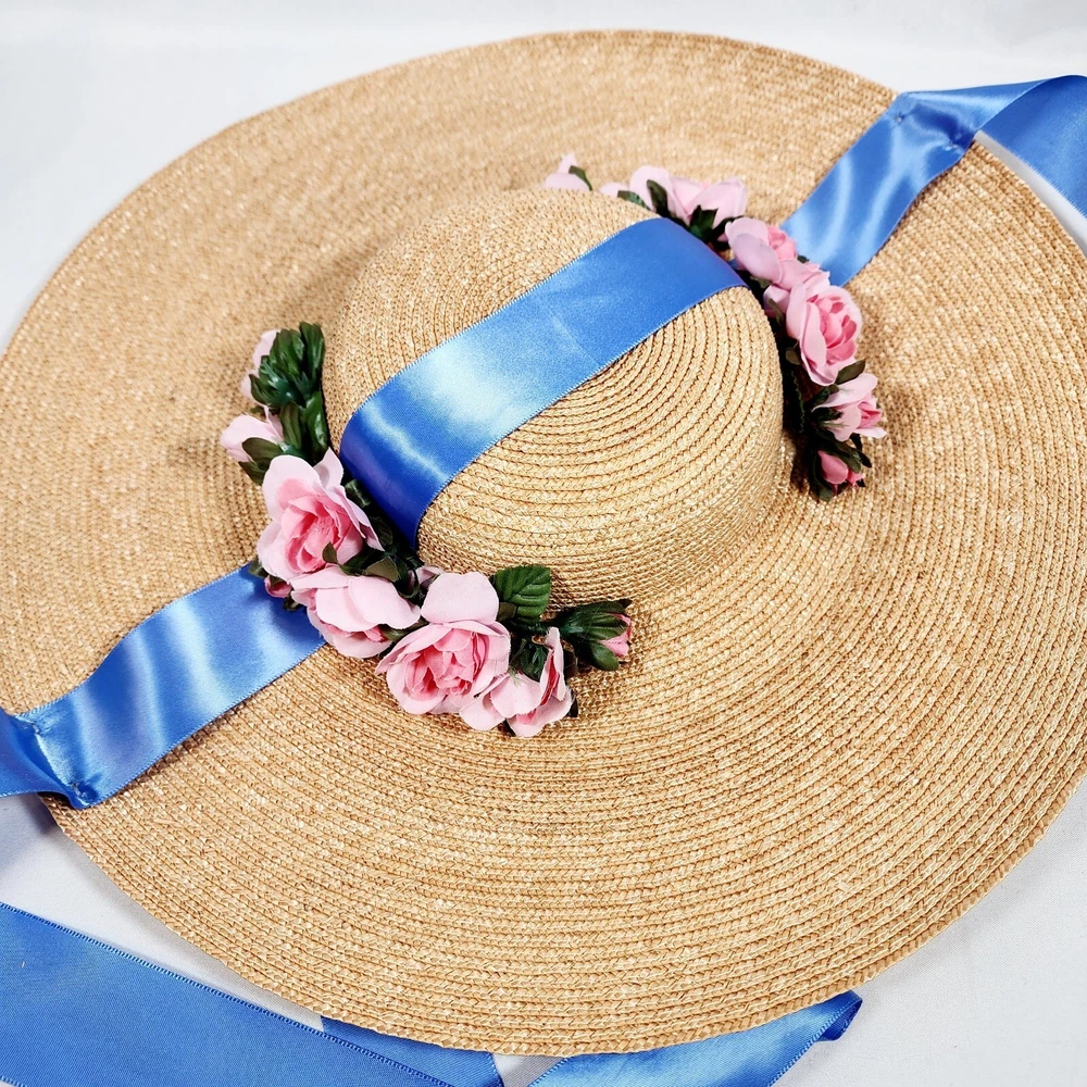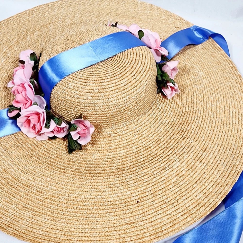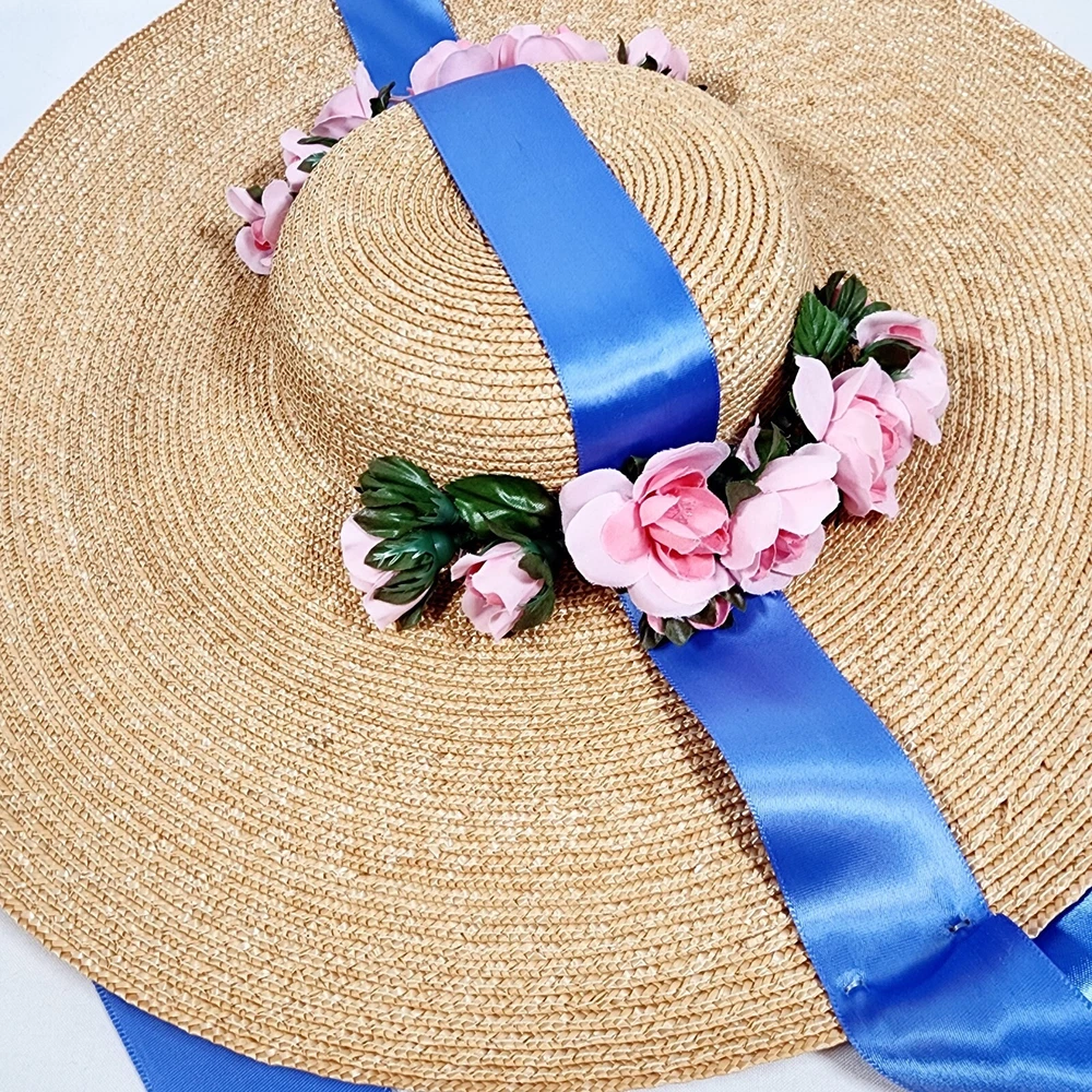 The American Girl Collection - Matching Straw Hats for Felicity's Summer Gown Outfit. Set includes 1 Hat Sized for 18" Dolls and 1 Child-Sized Hat. These are from the Pleasant Company era of American Girl, and definitely genuine. The Girl-Sized one is from the "Dress Like Your Doll" Line, which was phased out around 2000. Extremely rare and hard to find. Hats are both Rose-Trimmed, Wide-Brimmed, Straw Hats, and tie on with blue satin ribbons. Ribbons are stitched along edges of hats to keep them from slipping around. Set is in excellent condition, may have a tiny flaw in the weaving here and there but nothing noticeable. Ribbons in both hats are in great shape, as are the flowers. I think the hats are fairly flexible in sizing and could likely fit a girl or adult, depending on how you want them to fit and the size of your head, of course. Measurements of the girl-sized hat are as follows: 15 3/4" brim edge to edge, 6" diameter of hat inner crown Please see all pictures for exact cosmetic condition and other details, as they are part of the description as well, and ask any questions before purchasing. We are a husband and wife team with a growing family, and greatly appreciate your support of our small business. Please browse our eBay store for a variety of other American Girl items. We hope you enjoy this set!