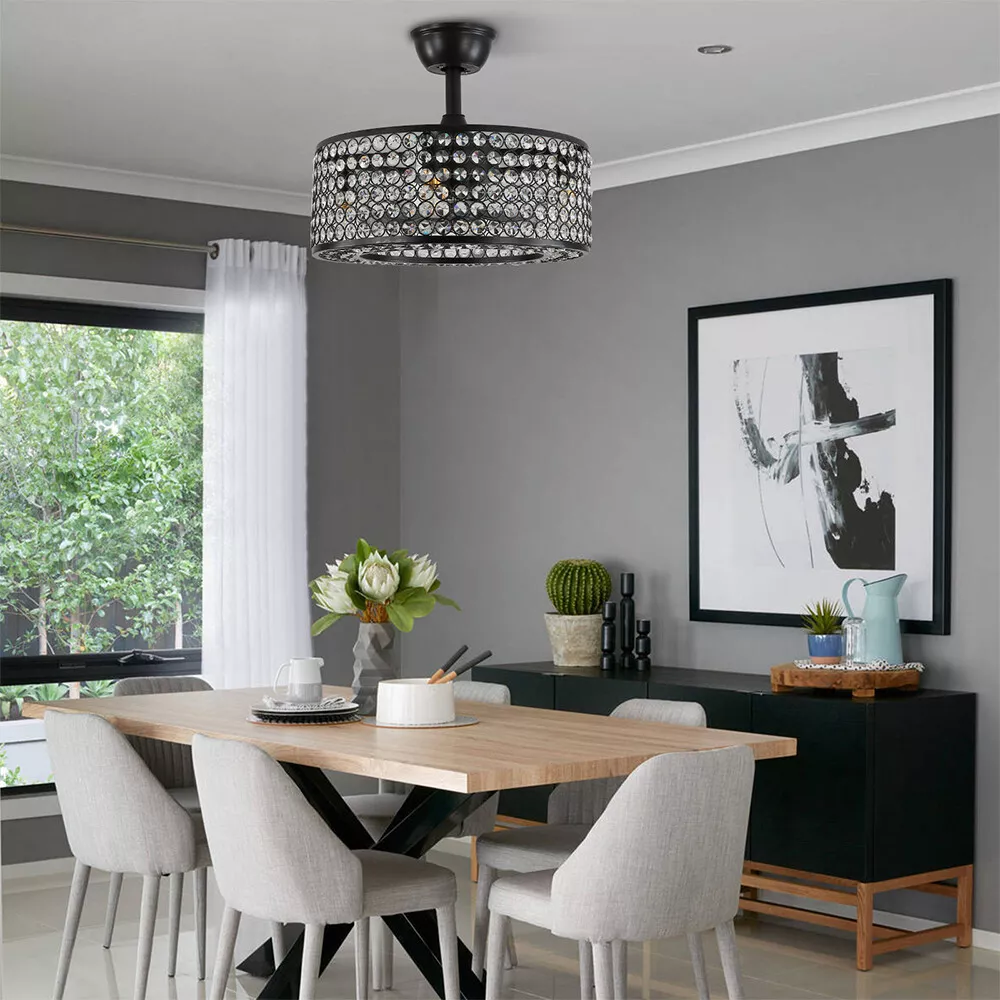 18" Crystal LED Chandelier Bladeless Caged Ceiling Fan Light 3 Speeds Remote NEW 18" Flush Mount Ceiling Fan Light Bladeless Crystal LED Chandelier + Remote Black ✦Dimensions Fixture Height: 7.87" (20 cm) Fixture Width: 18" (45cm) ✦Bulb Information Bulb requirements: use (4) E26bulbs, maximum 40watts, options include incandescent, fluorescent, LED, halogen, etc. (bulbs are not included) Wattage: Max 40W Voltage: AC110-120V Remote control: yes ✦Material and Colour Material: Retro metal Package Included 1 *Fan Light (Bulbs Not Included) 1*Down rods (20CM) 1 * Accessories package 1 * User Manual Silver ✦ Dimensions Fixture Height: 7.08" (18 cm) Fixture Width: 18" (46cm) ✦Bulb Information Bulb requirements: use (4) E26bulbs, maximum 60watts, options include incandescent, fluorescent, LED, halogen, etc. (bulbs are not included) Wattage: Max 60W Voltage: AC110-120V Remote control: yes ✦Material and Colour Material: Nickel-plated metal +crystal ✦ Package Included 1 *Fan Light (Bulbs Not Included) 2*Down rods (12CM & 25CM) 1 * Accessories package 1 * User Manual Description Payment Delivery details Terms of sales About us Contact us Payment We accept ebay payment 。 Fees such as import duties, taxes are not included in the item price or shipping costs. These charges are the buyer's responsibility. Delivery details Shipping: 2-9 working days to: USA Terms of sales We maintain high standards of excellence and strive for hundred percent customer satisfaction. Feedback is very important to us. We hope that you contact us immediately before you give neutral or negative feedback, so that we can address your concerns. It is impossible to address issues if we do not know about them! About us Your satis faction is our ultimate goal. We work hard to earn your trust and future business. Our certified technicians have tested each item before shipping. The unit comes with 1 year limited warranty on all manufacturing defects. a) If you receive a defective item, you may return it or ask for a discount. Please contact us within 14 days after you receive the package. b) What you returned must be intact and in its original packaging as re? u. Customer is responsible for shipping costs of the returned item. c) We will cover the cost of shipping back t with the shipping rate indicated in the registration page. We will send you a new unit or refund the full payment you paid. Thank you. Contact us Business Hour Business Hour: Monday To Friday: 8:30 AM to 5:00 PM (Beijing China time) Due to time zones, our reply to your questions may not be immediately. But within above working time, we will reply your email within 24 hours. If it's non-workdays, please kindly be patient and wait till Monday. Please contact us with ebay message. Please feel free to contact us if you have any questions. Monday To Friday: 8:30 AM to 5:00 PM (Beijing China time) Due to time zones, our reply to your questions may not be immediately. But within above working time, we will reply your email within 24 hours. If it's non-workdays, please kindly be patient and wait till Monday. Please contact us with ebay message. Please feel free to contact us if you have any questions. Warranty 3 Years ❤Highlights❤ High Quality 🔥Feature🔥 Long Service Life ✨✨ Manufacturer Warranty 3 Years !Features Compact Design,Unique Appearance,High quality Characteristic Convenient Use,Easy Operation,Easy installation Features Durable Warranty. 3 Years *Feature* Creative Design,Durable Material,Beautiful Highlights Compact Design,Unique Appearance,high reliability Features: High quality W/ warranty! Light Color Warm White Power Source Corded MPN Does not apply Number of Speeds 3 Design Lantern Control Style Remote Control Sensor Type None Energy Star 4 Stars Voltage AC110-120V Style Modern Personalized Yes LED String/Strip Type No Room Attic, Bedroom, Dining Room, Entryway, Hallway, Home Office/Study, Kitchen, Living Room, Porch, Bar, Hotel, gallery, farmhouse, foyer, exhibition room, coffee shop Finish Retro Metal Lighting Technology LED Number of Settings 3 Item Diameter 18 in Material Metal Installation Area Indoor Brand Unbranded Mounting Ceiling Mounted Blade Color Clear Type Ceiling Fan Fan Width 18 in Number of Blades 7 Power Consumption Max 40W/60W Country/Region of Manufacture China Manufacturer / EC Range A+++ - G UPC Does not apply