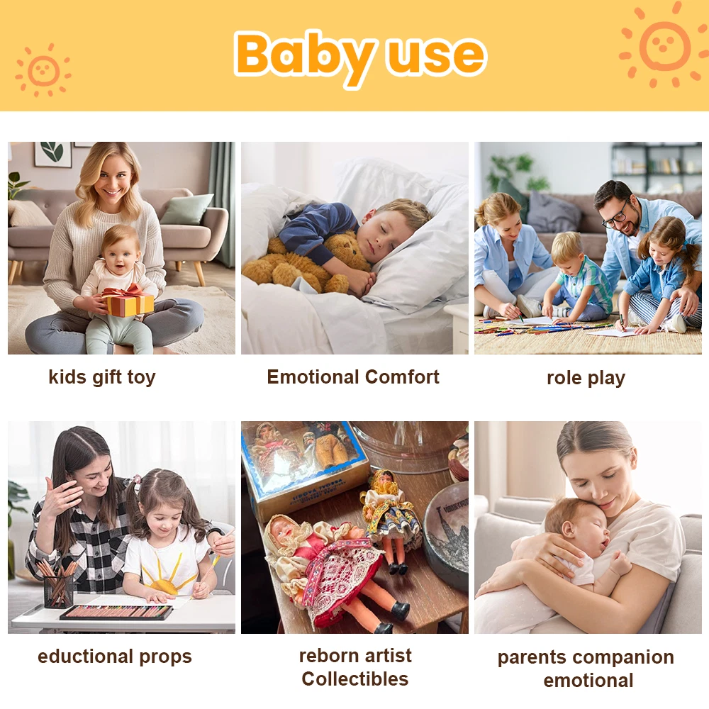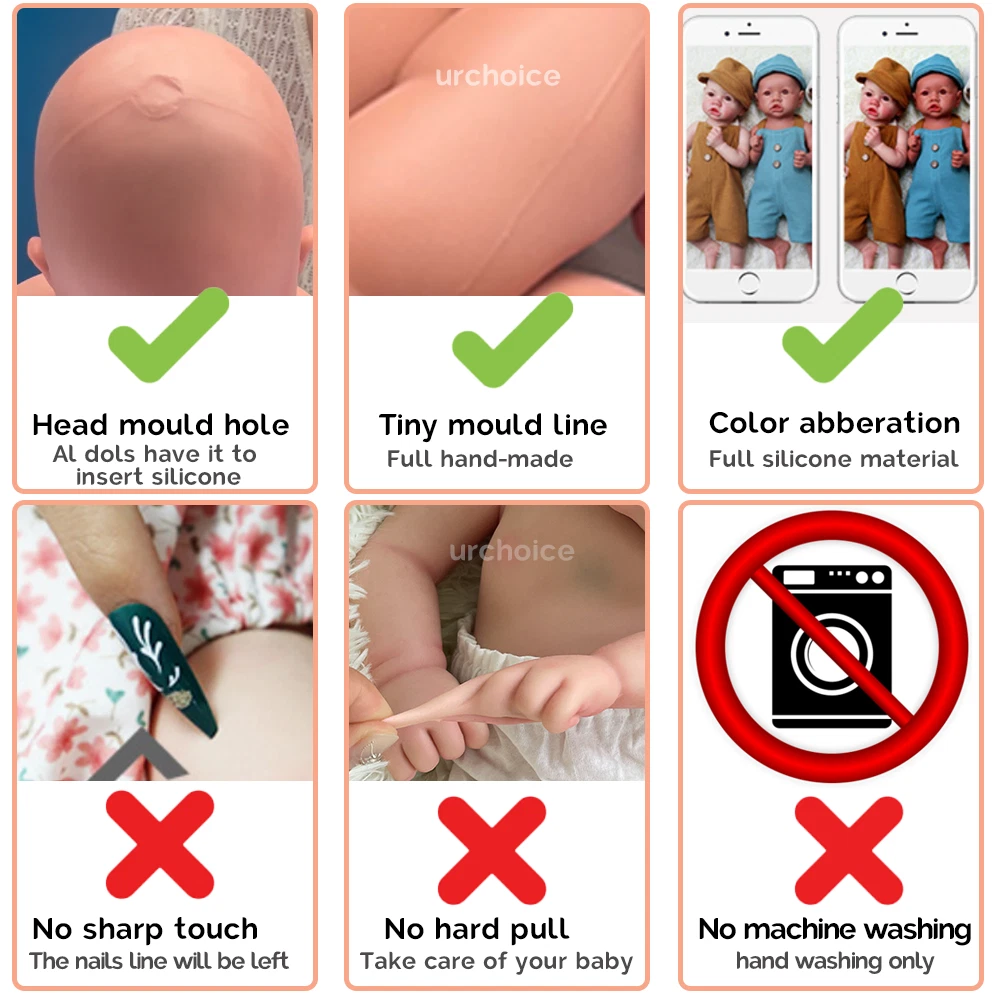 ★ Full body silicone : Our reborn baby doll is made of full platinum liquid silicone, she is a Solid reborn baby doll ★ Better than Vinyl material : Medical silicone material is more environmentally friendly than vinyl and safer for your babies. ★ PVC Free, Non-Toxic ★ More real feeling : Our doll's touching feeling is like a real baby than Vinyl dolls ★ Great for Child and Best Choice For Adoption : Let your child feel that he is a playmate and not just a toy. Because it is a Weighted Body for a "Real" Baby Feel. ★ The best gift for your child to improve social ability and open up thinking. Children will acquire strong cognitive abilities. ★ The best choice for collecting baby dolls . So we think you should choose us, Not only to give you lifelike baby dolls but also to give you more choices. We have realistic baby dolls of different sizes and genders. She is about 18inch ,painted baby girl( Anatomically Correct) Net weight is :5.6lb She has veins,her painting job is amazing, and she can also take a pacifier Warm Tips: This reborn kit just comes naked, doesn't come with any outfits & blankets. -Each of our dolls is purely handmade, and the pictures are real-life photos. -There may be slight differences between each silicone doll, and there may be slight flaws. -It is normal to have demolding marks on the top of the head. If you mind, please choose carefully. -the makeup of each doll is hand-painted, so there will be some differences between each doll. These dolls have private parts. You can bath this realistic baby doll. It has a solid full silicone body, it is waterproof. Baby powder can be use or a silicone matting powder. Medical silicone material is more environmentally friendly than vinyl and safer for your baby. PVC free, Non toxic Buyers Notice Keep in mind because the doll's head has silicone injection hole, The injection hole is one of the process of making dolls. So it will leave a slight mark on its head. This is not a a doll's quality problem. The artists are very diligent in the creation of these silicone babies.. If you have any questions or need additional photos, please don't hesitate to contact me.