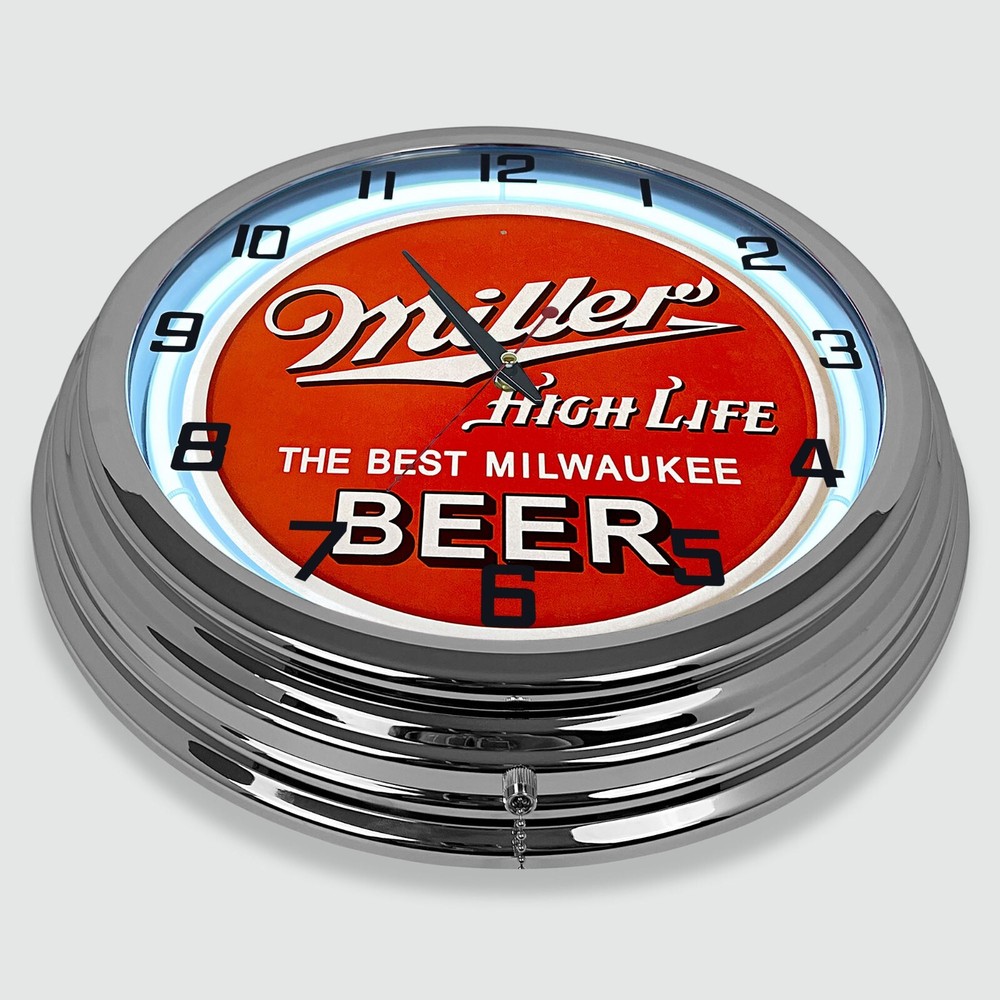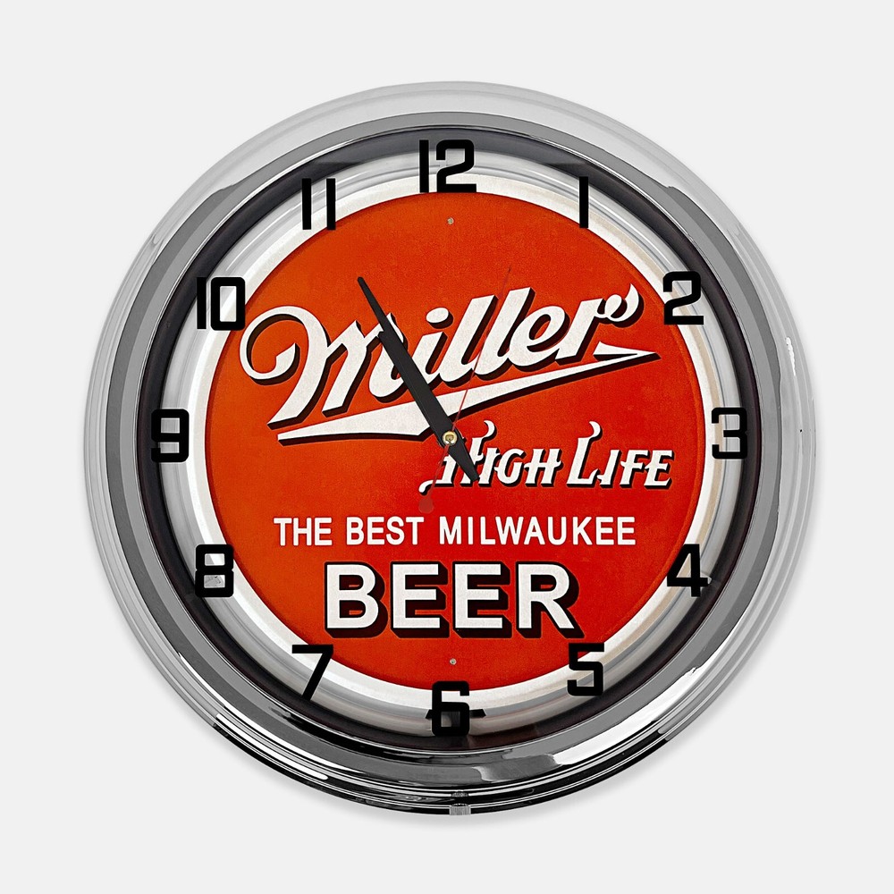 *Product is officially licensed. *Licensing information is printed on front or back of sign. *Image of licensed holographic logo or serialized QR code is in pictures. 18" Miler High Life The Best Milwaukee Beer Metal Sign Designed White Neon Clock - SIGNBOX-QLN720284 2.5" Inch Thick Triple Outer Bevel White Neon Handmade Ships from a Small Business in Ohio Materials: Metal, Steel Width: 17.25 inches Height: 17.25 inches Depth: 2.50 inches