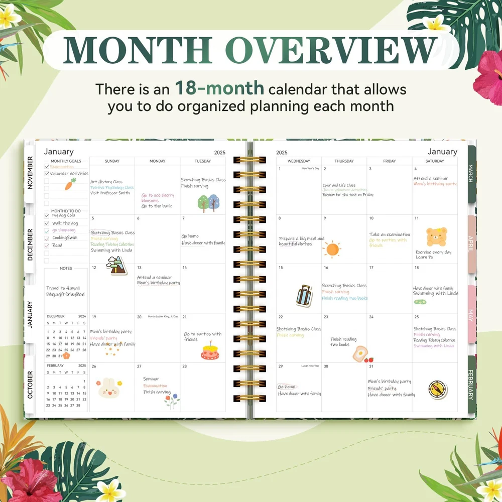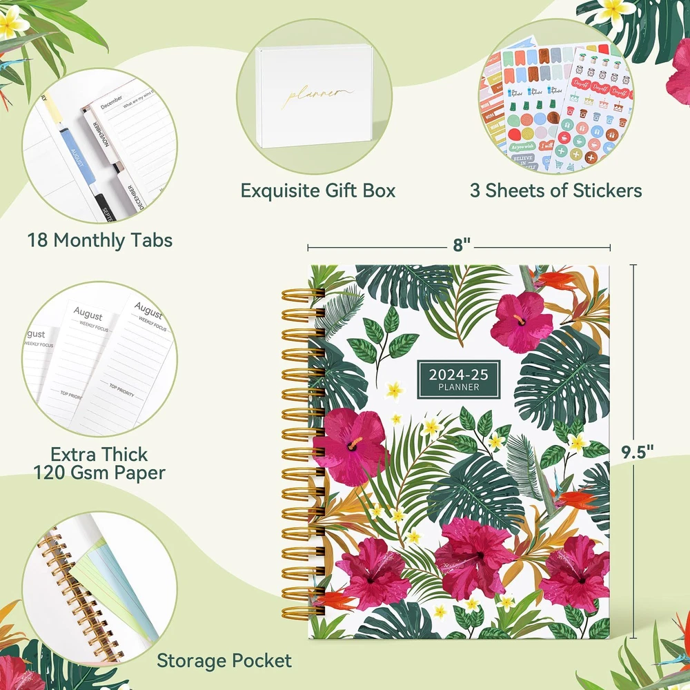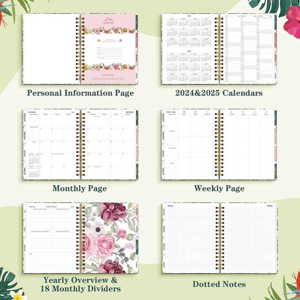 18 Monthly Planner, 2024-2025 Daily Weekly and Monthly Planner, Academic Planner Jul.2024-Dec.2025, 8"×10", Aimpeak Calendar Planner Spiral Bound with Stickers, Gift Box & 18 Month Dividers, Leaves 🎁Planner 2024-2025:The hardcover 18-month planner runs from July 2024 to December 2025 and features monthly divider pages with unique design patterns for each month, providing a refreshing feel every month. Sized at 8" x 10", it provides the canvas you need to infuse each day with your schedules, priorities, and deadlines. 🎁Clear Monthly Overview: AIMPEAK 2024-2025 weekly and monthly planner includes 18 months of monthly pages, each equipped with monthly tabs for easy reference. Its rich content features monthly goals, to-do lists, reviews, a comprehensive list of major holidays, as well as noted elapsed and remaining days. With clear organization, you can easily keep track of important deadlines, special events, and more every month. 🎁Richer Weekly Pages: The weekly view pages include sections for weekly focus, top priorities, weekly reviews, and ample space for detailed daily planning, appointments, and activities. Stay organized and motivated every day and week, and enhance your productivity with this 2024-2025 weekly planner. 🎁Premium Features: The Deluxe Hardcover Planner 2024-2025 boasts an elegant hardcover design with double spiral binding and adorned with beautiful stickers. Each monthly divider page showcases a unique pattern, adding to its exquisite appeal. 🎁Luxurious & Top Quality: Beautifully gift boxed, the 18-month planner would make a great gift choice for entrepreneurs, professionals, college students, and anyone eager to turn their dreams into reality. 🎁Planner 2024-2025:The hardcover 18-month planner runs from July 2024 to December 2025 and features monthly divider pages with unique design patterns for each month, providing a refreshing feel every month. Sized at 8" x 10", it provides the canvas you need to infuse each day with your schedules, priorities, and deadlines. 🎁Clear Monthly Overview: AIMPEAK 2024-2025 weekly and monthly planner includes 18 months of monthly pages, each equipped with monthly tabs for easy reference. Its rich content features monthly goals, to-do lists, reviews, a comprehensive list of major holidays, as well as noted elapsed and remaining days. With clear organization, you can easily keep track of important deadlines, special events, and more every month. 🎁Richer Weekly Pages: The weekly view pages include sections for weekly focus, top priorities, weekly reviews, and ample space for detailed daily planning, appointments, and activities. Stay organized and motivated every day and week, and enhance your productivity with this 2024-2025 weekly planner. 🎁Premium Features: The Deluxe Hardcover Planner 2024-2025 boasts an elegant hardcover design with double spiral binding and adorned with beautiful stickers. Each monthly divider page showcases a unique pattern, adding to its exquisite appeal. 🎁Luxurious & Top Quality: Beautifully gift boxed, the 18-month planner would make a great gift choice for entrepreneurs, professionals, college students, and anyone eager to turn their dreams into reality. Shipping from the USA All of our products are shipped from the USA, ensuring quick delivery to your destination. Payment We offer the following payment methods: PayPal, credit card, bank transfer, and eBay's secure payment system. Free Shipping & Free Returns Shipping within the USA is FREE. Additionally, any return is absolutely free for you. Risk-Free Purchase You have the option to return an item within 30 days without any justification. We cover the return shipping costs! Fast Shipping We ship immediately upon receipt of payment. Generally, the package is delivered within 2-3 days in the USA. If it takes longer, we will contact you. Quality and Costs Made in Europe, USA, China No customs fees or additional charges Total satisfaction guarantee Invoice with declared VAT available upon request in .pdf format Feedback Your feedback is very important to us. After you pay for your purchase, you will automatically receive positive feedback from us.