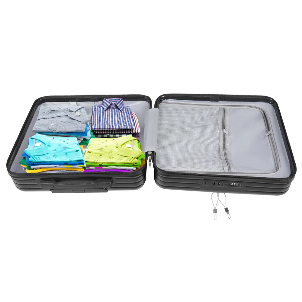18" Multi-function Black Suitcase Password Suitcase W/ USB Port+Cup holder Description Our 18" boarding suitcase is designed specifically for modern travelers, with a groundbreaking front lid design, USB interface, cup holder, and password lock that combine convenience, security, and technological elements, making it the ideal companion for your short-term business or leisure trip. Have it now, make every trip a joyful exploration journey! Specifications Material: ABS, Rubber, Sponge Process: Vacuum Forming Color: Black Shape: Rectangular Style: Modern Assembly Required: No Mount Type: Freestanding Wheel Type: 4 * Universal Wheels Pull Rod Gears: 2 Front Compartment Opening Range: 180° Load Capacity: About 30kg/66.14lbs Capacity: Approx. 47L/12.42gal Gross Weight: 3.75kg/8.27lbs Net Weight: 3kg/6.61lbs Product Size: 45*24*41cm/17.72*9.45*16.14in Package Size: 51*25*44cm/20.08*9.84*17.32in Package Included 1 * 18" Travel Luggage Suitcase Key Features Premium Material: This product is made of premium ABS a vacuum forming process, which is impact and wear-resistant, ensuring a long service life. Large Capacity: The separate front compartment contains a dedicated compartment for most laptops. With an interior capacity of approximately 12.42 gallons, it is large enough to meet your travel needs. Flexible Movement: Four easy-to-move universal rubber wheels, a telescopic rod, and a top handle make it easy to get the case up and down stairs, in and out of the car, and in the lift. High Load Capacity : The rectangular construction and premium materials give this product a load-bearing capacity of approximately 66.14 lbs, giving you peace of mind. High Security: It uses a 3-digit password lock, making it anti-theft, allowing you to safely put valuable items inside. The sponge in the front compartment and the equipped safety strap prevent damage to electronic devices, providing thoughtful protection for your important equipment. Thoughtful Design: The front compartment can be 180° opened, making it easy to take out your passport or computer (not included) while waiting for your flight, making it more convenient for you to travel. Easy to Clean: A simple construction and smooth surface make this product easy to clean, you just need a towel (not included) and water to easily remove dust and residue. Ideal Gift: Its classic design and large capacity make this product a great gift to your family, friends, and loved ones. Buy with Confidence: We stand behind all our guests and look forward to assisting you with your purchase. It is our pleasure to answer your confusion and questions. The end of the story between us is not "we sell and you buy". Details Practical Handle: It is easy for you to grip and move the product. Durable Zippers: They allow for smooth and easy opening and closing of the case, bringing more convenience. Cup Holder: It is convenient for you to place drinks while waiting or resting, keeping your hands free and facilitating easy access. USB Port: It is designed with a USB charging port, which is convenient for charging electronic devices at any time. Application This product can be widely used in short-distance domestic and international tourism, business trips, vacations, exchange visits, academic conferences, and other occasions, which is suitable for most people such as students, business people, tourists, etc. Notes Please carefully check if the size is suitable before placing an order. Please use the product within its weight capacity to avoid damage. The USB port does not charge on its own, you need to supply a power bank (not included). Please allow the slight color difference caused by the shooting light and 1-3cm error due to manual measurement, and make sure you do not mind before you order. Payment Delivery details Terms of sales About us Contact us Payment We accept ebay payment 。 Fees such as import duties, taxes are not included in the item price or shipping costs. These charges are the buyer's responsibility. Delivery details Shipping: 2-9 working days to: USA Terms of sales We maintain high standards of excellence and strive for hundred percent customer satisfaction. Feedback is very important to us. We hope that you contact us immediately before you give neutral or negative feedback, so that we can address your concerns. It is impossible to address issues if we do not know about them! About us Your satis faction is our ultimate goal. We work hard to earn your trust and future business. Our certified technicians have tested each item before shipping. The unit comes with 1 year limited warranty on all manufacturing defects. a) If you receive a defective item, you may return it or ask for a discount. Please contact us within 14 days after you receive the package. b) What you returned must be intact and in its original packaging as re? u. Customer is responsible for shipping costs of the returned item. c) We will cover the cost of shipping back t with the shipping rate indicated in the registration page. We will send you a new unit or refund the full payment you paid. Thank you. Contact us Business Hour Business Hour: Monday To Friday: 8:30 AM to 5:00 PM (Beijing China time) Due to time zones, our reply to your questions may not be immediately. But within above working time, we will reply your email within 24 hours. If it's non-workdays, please kindly be patient and wait till Monday. Please contact us with ebay message. Please feel free to contact us if you have any questions. Monday To Friday: 8:30 AM to 5:00 PM (Beijing China time) Due to time zones, our reply to your questions may not be immediately. But within above working time, we will reply your email within 24 hours. If it's non-workdays, please kindly be patient and wait till Monday. Please contact us with ebay message. Please feel free to contact us if you have any questions.