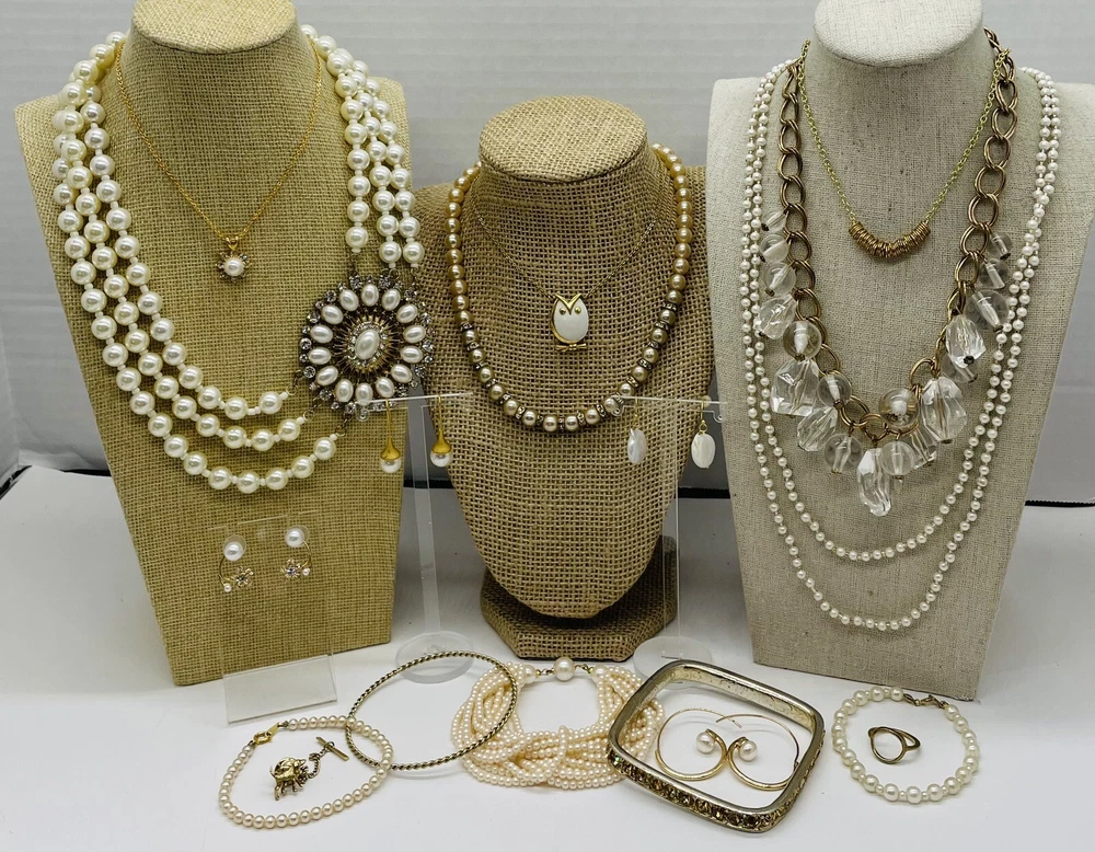 18 PC Vintage to New Jewelry Lot PEARL THEME Bracelets Necklaces Earrings J-555 This is all wearable jewelry . This lot may contain necklaces earrings brooches bracelets rings etc. Exactly as shown in photos. You get what you see here. There may be some signed pieces in here. Please keep in mind these are all estate sale items so some pieces may need light cleaning. Please email me with any questions you may have. Smoke-free, pet free home. We're Always happy to combine shipping! Please request a invoice if purchasing more than one item. Please contact me if you have any questions or concerns regarding your order. Feedback is left for buyers after purchase has been completed. Should our services meet your satisfaction, your feedback would be greatly appreciated. Should you have an issue or problem with your order, we request the opportunity to make amends or resolve the issue before feedback is left. Your satisfaction is our highest priority! I pack with care and ship quickly!