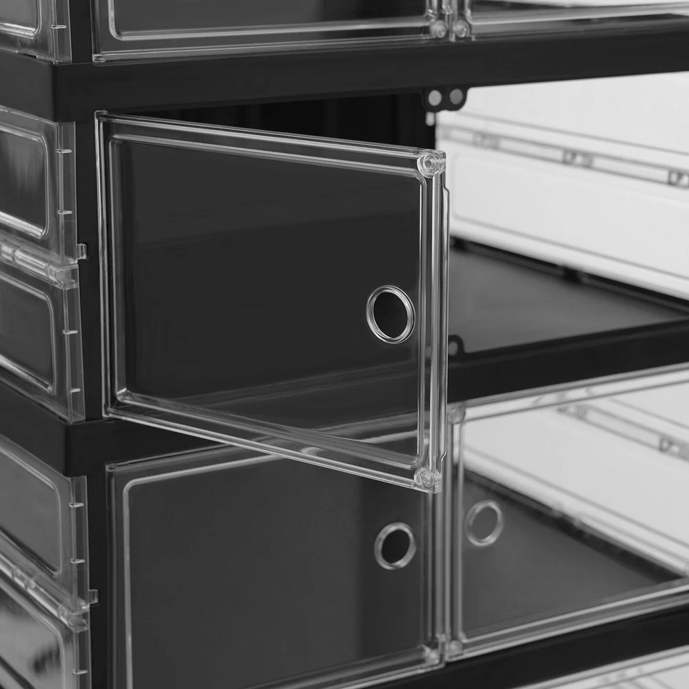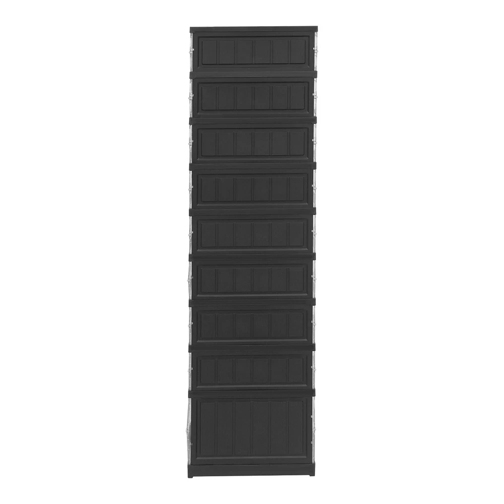 18 Pairs 9 Layers Shoes Standing Cabinet Storage Shoe Rack Organizer Dustproof Application It is suitable for entrances to bedrooms, living rooms, cloakrooms, stairs, etc. It can be used to store various types of shoes such as high-heeled shoes , sports shoes, and high boots. How to Install 1. Open the packaging and remove the cabinet. 2. Fold dow n and stretch the cabinet, and insert the middle partition and back plate into the fixed slot. 3. Pull out the door panel and complete the installation. Specifications Material: PP and PS Process: Injection Molding Style: Modern Color: Black, Clear Shape: Rectangular Assembly Required: Yes Mounting Type: Floor Standing Number of Tiers: 9 Number of Wheels: 4 Each Tier Load-bearing Capacity: About 3kg/6.61lbs Product Size: 44*34.5*169cm/17.32*13.58*66.54in Tier Spacing: 31cm/12.2in, 17.5cm/6.89in Package Size: 51*40*33.5cm/20.08*15.75*13.19in Gross Weight: 11.5kg/25.35lbs Net Weight: 10.6kg/23.37lbs Package Included 1* Shoe Cabinet Description Are you still struggling with organizing a large number of shoes? Our shoe cabinet can solve your problem. The high-class materials and exquisite craftsmanship make it sturdy and durable. The 9-tier design and strong load-bearing capacity can meet your storage needs. With its generous appearance, it can easily blend into your home. In short, it is your assistant for organizing shoes! Key Features Build to Last : Made of PP and PS with an injection molding process, this product is impact-resistant , tear-resistant, and durable, ensuring your long-term use. Storage Assistant: Its top can be used to store items. The 9-tier design with a heightened (12.2'') bottom compartment allows you to store various types of shoes such as high-heeled shoes , sports shoes, and high boots, making full use of vertical space to organize your shoes in an orderly manner. Strong Load-bearing Capacity: High-class materials and sturdy structure make each tier capable of bearing about 6.61 lbs, allowing you to use it with confidence. Foldable Design: The foldable design allows you to place it on the floor and pull it apart to use it after installation. In addition, it allows you to store the product in a corner when not in use without taking up much space. Thoughtful Design : The clear door panel allows you to see the shoes inside clearly, making it convenient for you to search for shoes. The magnetic double door design can prevent dust from entering the interior and keep the shoes as clean as new. The round holes on the door panel make it convenient for you to open and close the door. Easy to Clean: It has a smooth surface and a simple structure, so you only need to wipe the dust with a towel regularly. Ideal Gift: This practical product can be used as an ideal housewarming, birthday, and holiday gift for parents, friends, and loved ones. Customer Service: We stand behind all our guests and look forward to assisting you with your purchase. It is our pleasure to answer your confusion and questions. The end of the story between us is definitely not "we sell and you buy". Details Wheels: The bottom 4 wheels make it easy for you to move this product from one place to another without spending too much time and effort. Smooth Edges: The smooth edges and round corners not only enhance the aesthetics of the product but also improve safety during installation and use. Notes Please use this product within the load-bearing range. Please note that this product does not include shoes. Please allow the slight color difference caused by the shooting light and 1-3 cm error due to manual measurement, and make sure you do not mind before ordering. Payment Delivery details Terms of sales About us Contact us Payment We accept ebay payment 。 Fees such as import duties, taxes are not included in the item price or shipping costs. These charges are the buyer's responsibility. Delivery details Shipping: 2-9 working days to: USA Terms of sales We maintain high standards of excellence and strive for hundred percent customer satisfaction. Feedback is very important to us. We hope that you contact us immediately before you give neutral or negative feedback, so that we can address your concerns. It is impossible to address issues if we do not know about them! About us Your satis faction is our ultimate goal. We work hard to earn your trust and future business. Our certified technicians have tested each item before shipping. The unit comes with 1 year limited warranty on all manufacturing defects. a) If you receive a defective item, you may return it or ask for a discount. Please contact us within 14 days after you receive the package. b) What you returned must be intact and in its original packaging as re? u. Customer is responsible for shipping costs of the returned item. c) We will cover the cost of shipping back t with the shipping rate indicated in the registration page. We will send you a new unit or refund the full payment you paid. Thank you. Contact us Business Hour Business Hour: Monday To Friday: 8:30 AM to 5:00 PM (Beijing China time) Due to time zones, our reply to your questions may not be immediately. But within above working time, we will reply your email within 24 hours. If it's non-workdays, please kindly be patient and wait till Monday. Please contact us with ebay message. Please feel free to contact us if you have any questions. Monday To Friday: 8:30 AM to 5:00 PM (Beijing China time) Due to time zones, our reply to your questions may not be immediately. But within above working time, we will reply your email within 24 hours. If it's non-workdays, please kindly be patient and wait till Monday. Please contact us with ebay message. Please feel free to contact us if you have any questions.