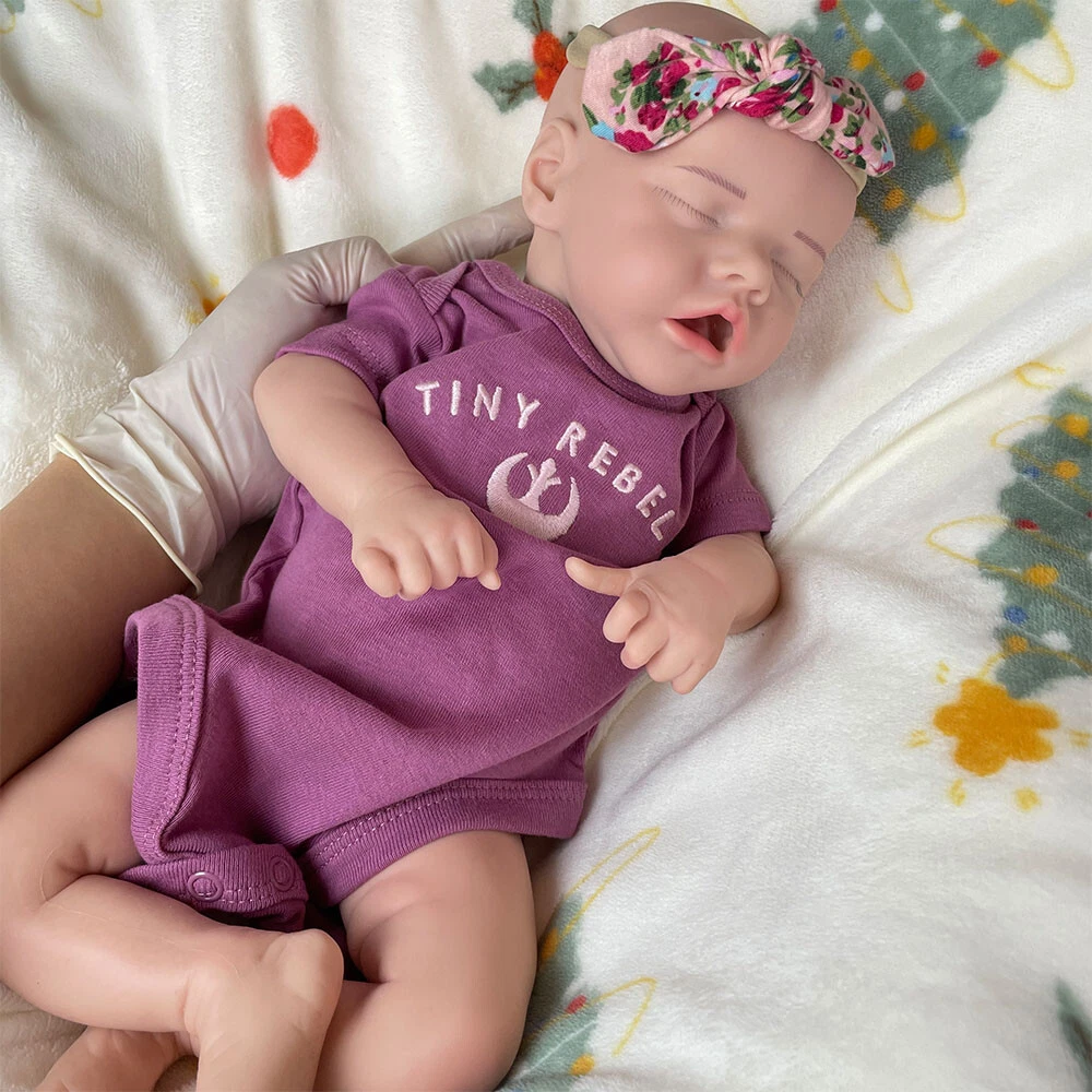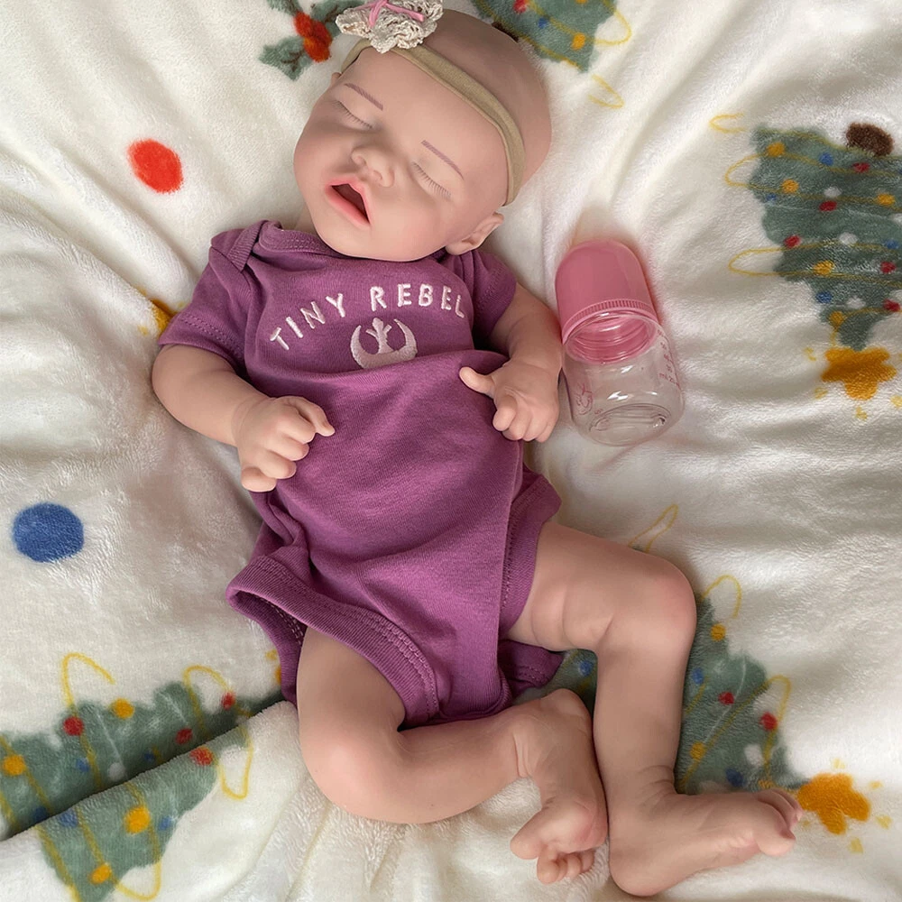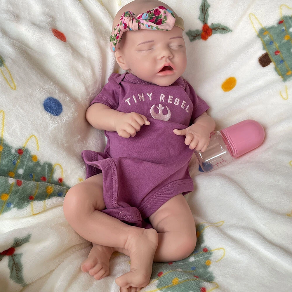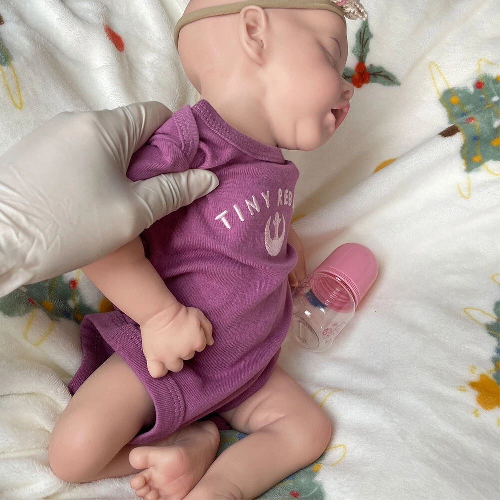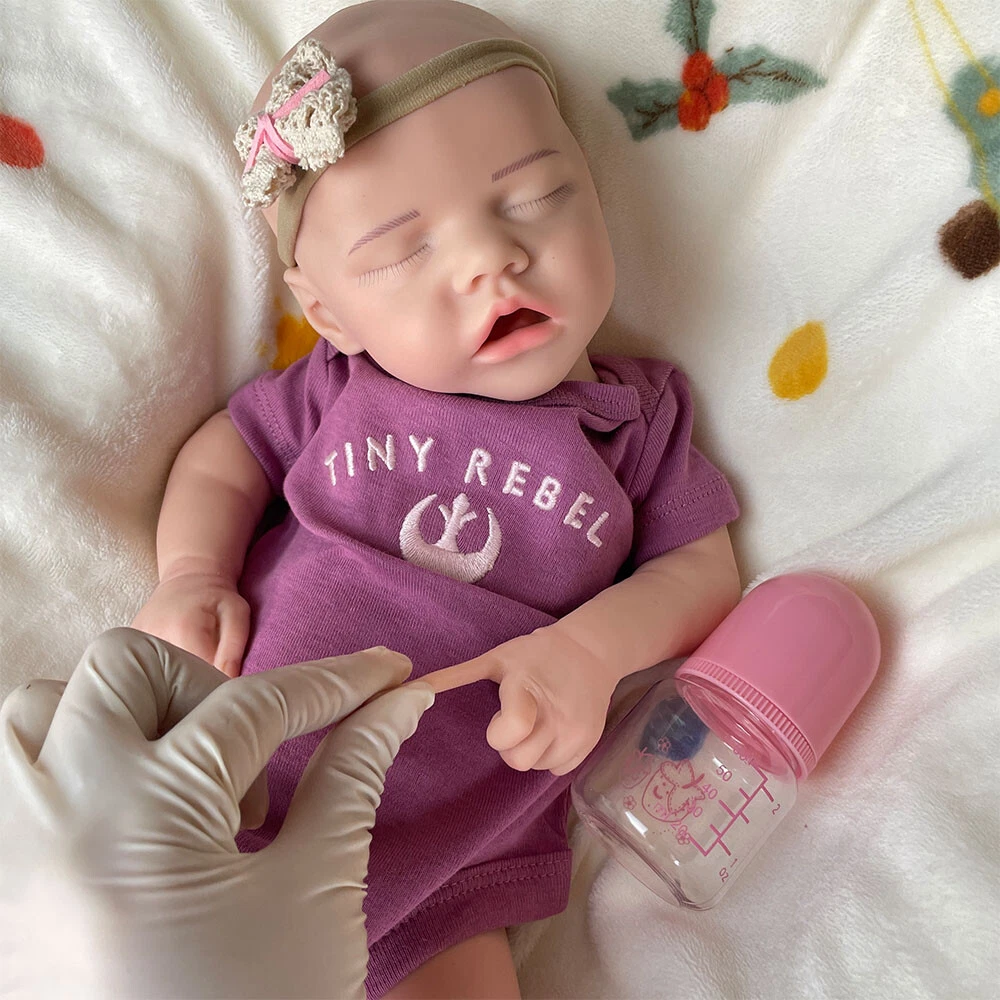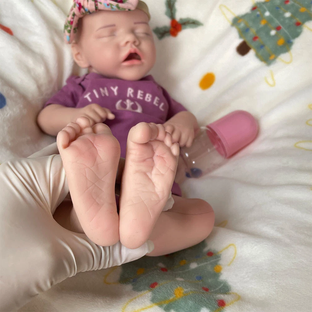 • Size: Around 18 Inches from head to toe. It fits into newborn-size hats, diapers, and other baby accessories • Material: made of full solid platinum silicone. We use only the best reborn supplies, making your reborn very realistic. • Function: The Doll's limbs are flexible and poseable, the doll can sit, lay down easily, and have a bath, but cannot stand up, speak, pee, blink • Safety: Conforms to the safety requirements of ASTM F963 and EN71 for ages 3+ • Application: Birthday present, Christmas gift, children's playmates, grandparent's companion, and doll collection PACKAGE INCLUDES • 1 x painted Silicone Reborn Girl doll ( anatomically a girl) • 1 x birth certificate • 1 x drink bottle This baby girl weighted like a real baby,her mouth is opened and she can take a pacifier 【 Kind Reminder】Each of our dolls is purely handmade, and the pictures are real-life photos. There may be slight differences between each silicone doll, and there may be slight flaws. It is normal to have demolding marks on the top of the head. If you mind, please choose carefully. If you have any questions, please feel free to contact us anytime. 【 User Notice】 Our reborn baby doll's head has a silicone injection hole. The injection hole is one of the processes used to make dolls. So it will leave a slight mark on its head. This is not a doll's quality problem. The silicone can feel sticky and attract pet fur and hair. A quick bath with baby soap and water takes care of that. Add a little cornstarch powder and dressing is much easier