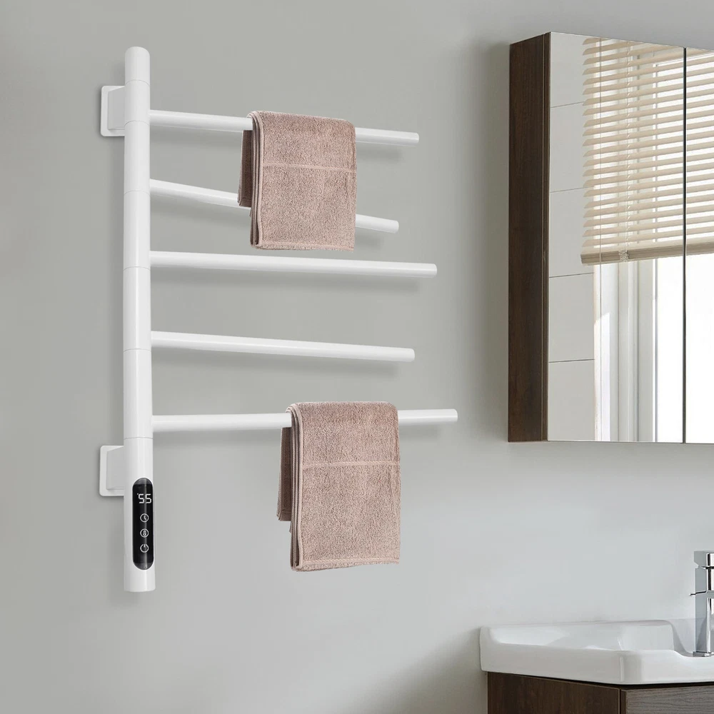 5-Bars Electric Towel Warmer Waterproof 180°Rotatable Bathroom Heated Towel Rack Description A towel rack is an indispensable piece of bathroom equipment that not only provides you with convenience, but also adds a touch of color to your bathroom decor. Our electric towel warmer is made of high-quality materials, solid and durable. It is powerful, easy to install, and beautiful in appearance, which will surely become your ideal choice. Key Features Made to Last: The product is made of 304 stainless steel and SPCC mild steel with an electrostatic spraying process, which is strong and pressure-resistant , abrasion-resistant , high-temperature-resistant , and not easy to corrode, ensuring a long service life. Excellent Function: 360° full-body carbon fiber dry heating allows for even heating. 86-158°F adjustable temperature allows for quick drying, deodorizing and dehumidifying, and disinfecting . High Safety: IPX5-rated waterproof ensures that the product does not easily rust and prolongs its service life. The product is equipped with an anti-leakage protection switch, which can cut off the power in case of leakage to ensure the safety of use. Rotatable Structure: Each rod of the product can be rotated 180°, which can provide different angles of use. Meanwhile, it can be pulled away from the ventilation distance, so that the towels can be dried quickly and not easy to get wet and moldy. It also allows you to hang dry towels and wet towels separately. Strong Load-bearing Capacity: The strong screw fastening mounting makes it structurally stable and can support up to 22.05lbs, allowing you to hang heavy objects that you can use with confidence. Optional Installation: Two installation options(open and concealed) are available, so you can choose the right one according to your preference and needs. Energy Savings: The product consumes less electricity per hour, and you can set the time within 1-9 hours, saving energy time, and expenses. Effortless Cleaning: It has a smooth surface and an open structure, so you only need to wipe the dust or residue with a towel. Details Long Power Cable: The 4.92 ft spring type power cable reduces usage restrictions and further protects your safety. HD Touch Panel: It provides great convenience for your operation, and also a real-time display of temperature and timing, which is convenient for you to observe the running status of the product. Application This product is suitable for installation in the bathroom or hotel and other places for drying towels or sterilizing mites . Specification Material: 304 Stainless Steel, SPCC Mild Steel Color: White Process: Electrostatic Spraying Style: Modern Assembly Required: Yes Mounting Type: Wall Mount Plug Type: US Standard Voltage: 110V Power: About 85-90W Waterproof Rating: IPX5 Rotation Angle: 180° Power Cable Length: 1.5m/ 4.92ft Temperature Adjustment Range: 30-70℃ ±5°C Adjustment / 86-158°F ( ±41 °F Adjustment ) Timing: 1-9h Number of Bars: 5 Bar Spacing: 8.1cm/3.19in Each Bar Length: 38.3cm/15.08in Max. Load Capacity: 10kg/22.05lbs Gross Weight: 3.2kg/7.05lbs Net Weight: 2.3kg/5.07lbs Product Size: 67.5*41.5*9cm/26.57*16.34*3.54in Package Size: 73*48*7cm/28.74*18.9*2.76in Package Included 1* Electric Towel Warmer 2* English Manuals Other Accessories for Assembly Notes Please read the operating manual completely before use. And pay particular attention to the safety instructions included. Please allow the slight color difference caused by the shooting light and 1-3cm error due to manual measurement, and make sure you do not mind before ordering. Payment Delivery details Terms of sales About us Contact us Payment We accept ebay payment 。 Fees such as import duties, taxes are not included in the item price or shipping costs. These charges are the buyer's responsibility. Delivery details Shipping: 2-9 working days to: USA Terms of sales We maintain high standards of excellence and strive for hundred percent customer satisfaction. Feedback is very important to us. We hope that you contact us immediately before you give neutral or negative feedback, so that we can address your concerns. It is impossible to address issues if we do not know about them! About us Your satis faction is our ultimate goal. We work hard to earn your trust and future business. Our certified technicians have tested each item before shipping. The unit comes with 1 year limited warranty on all manufacturing defects. a) If you receive a defective item, you may return it or ask for a discount. Please contact us within 14 days after you receive the package. b) What you returned must be intact and in its original packaging as re? u. Customer is responsible for shipping costs of the returned item. c) We will cover the cost of shipping back t with the shipping rate indicated in the registration page. We will send you a new unit or refund the full payment you paid. Thank you. Contact us Business Hour Business Hour: Monday To Friday: 8:30 AM to 5:00 PM (Beijing China time) Due to time zones, our reply to your questions may not be immediately. But within above working time, we will reply your email within 24 hours. If it's non-workdays, please kindly be patient and wait till Monday. Please contact us with ebay message. Please feel free to contact us if you have any questions. Monday To Friday: 8:30 AM to 5:00 PM (Beijing China time) Due to time zones, our reply to your questions may not be immediately. But within above working time, we will reply your email within 24 hours. If it's non-workdays, please kindly be patient and wait till Monday. Please contact us with ebay message. Please feel free to contact us if you have any questions. Type Towel Rack Color White Material 304 Stainless Steel, SPCC Mild Steel Brand Unbranded Mounting Wall Mount Style Modern Room Bathroom Voltage 110V Power About 85-90W Waterproof Rating IPX5 Process Electrostatic Spraying Rotation Angle 180° Power Cable Length 1.5m/4.92ft Temperature Adjustment Range 30-70℃±