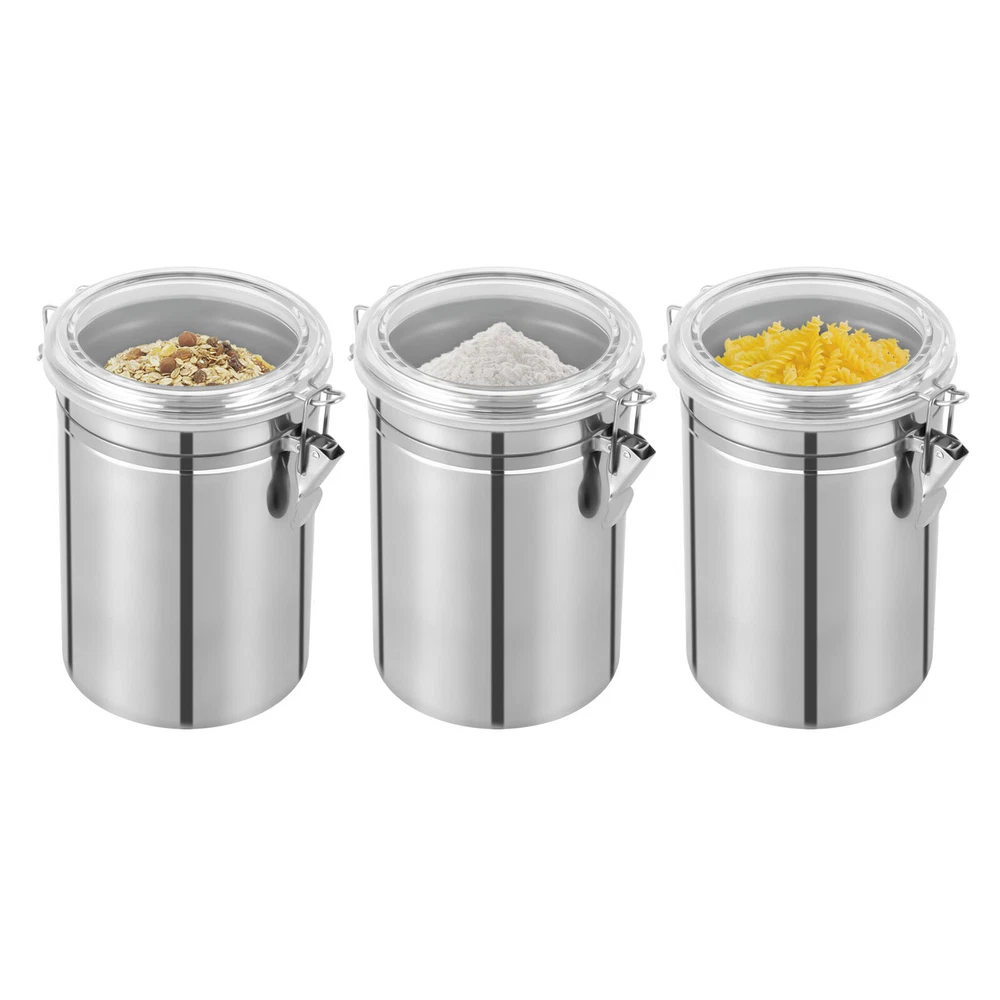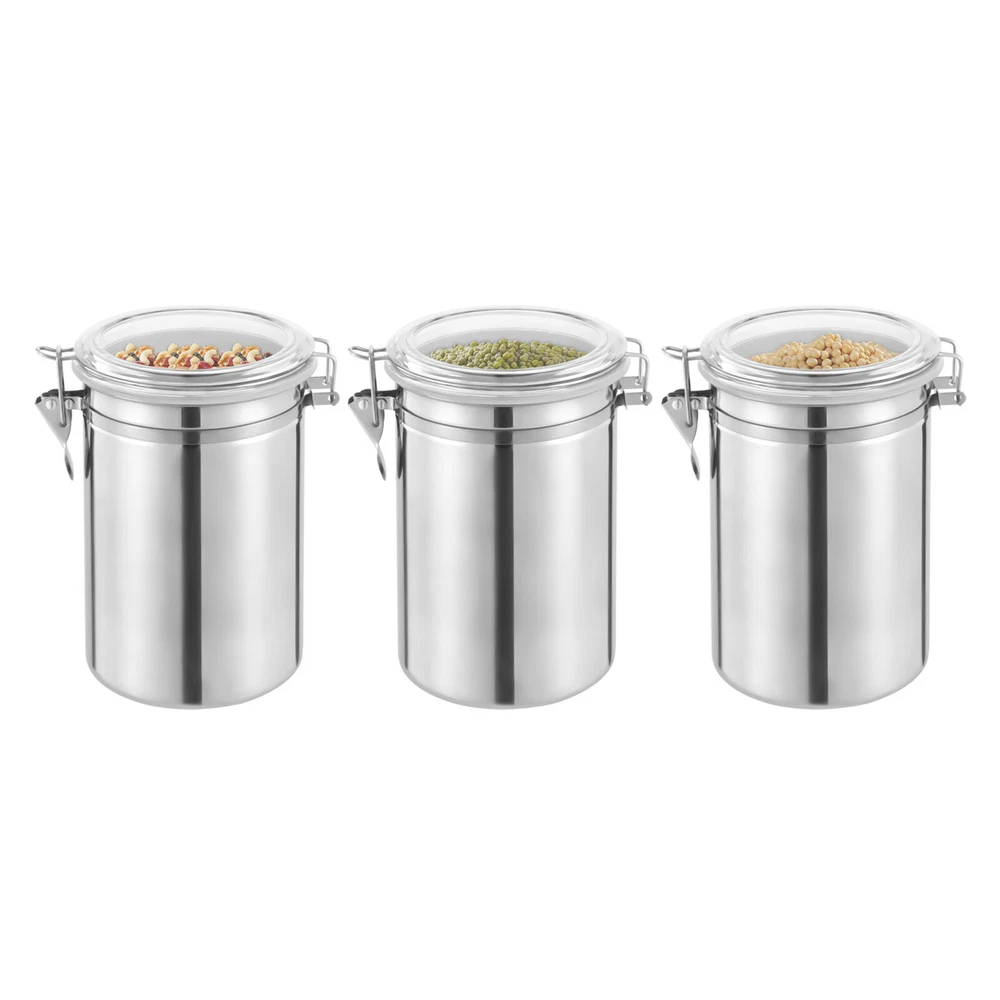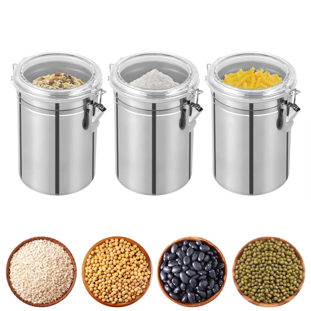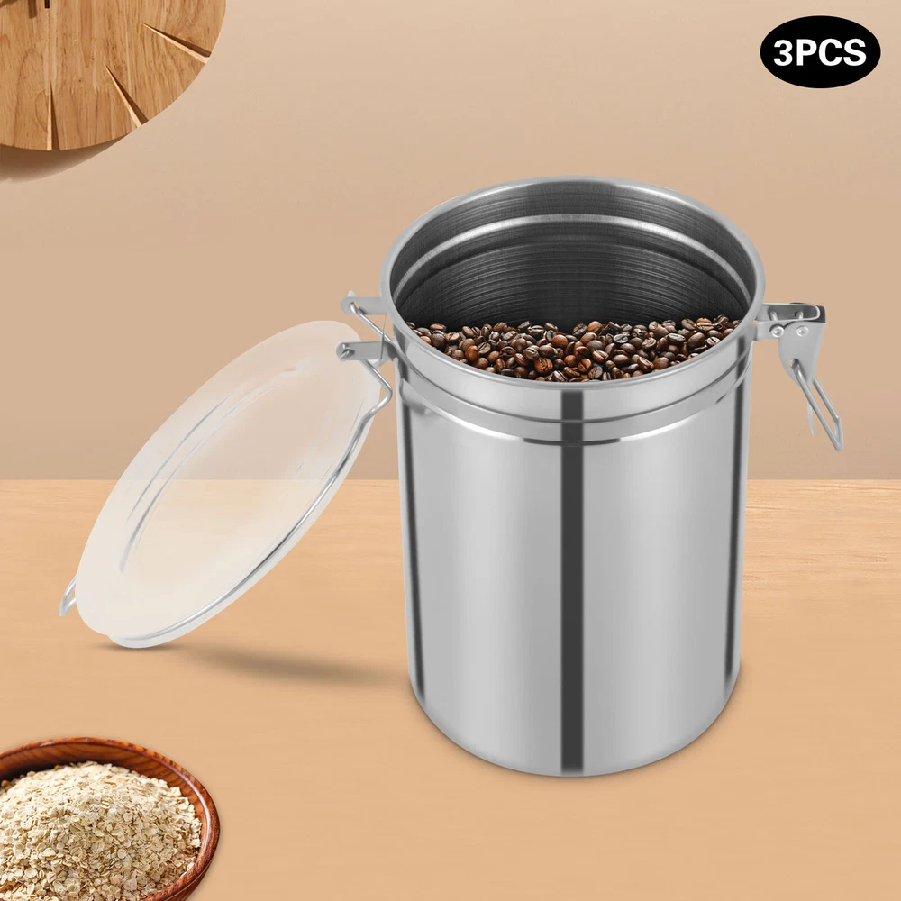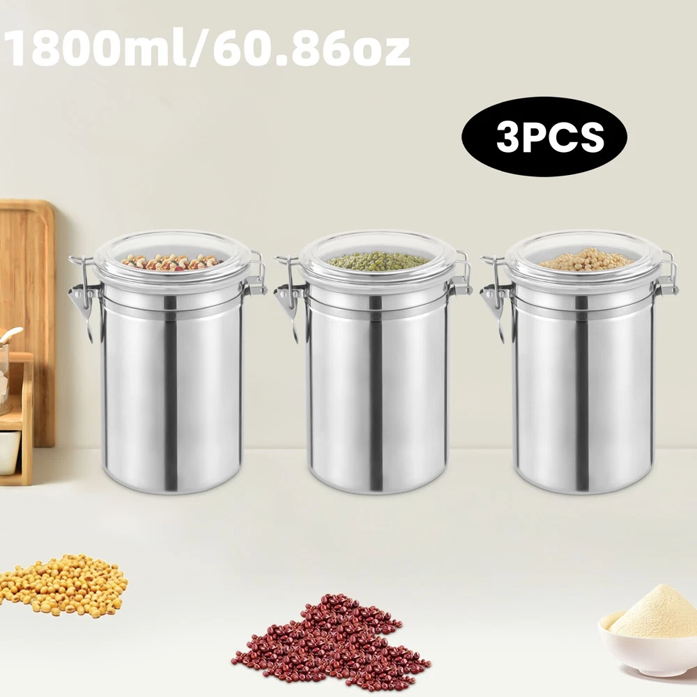 Specifications Material: Stainless Steel, PP, Silicone Processes: Polishing, Integrated Molding Shape: Round Feature: Airtight Number of Jars: 3 Dishwasher Safe: Yes Closure Type: Lock Catch Each Storage Jar Capacity: 1800ml/60.86oz Each Storage Jar Size (D*H): 12.5*17cm/5*6.7inch Net Weight: 0.95kg/2.09 lbs Gross Weight: 1.26kg/2.77 lbs Have a nice day~ 1800ml Stainless Steel Canister Set - Airtight Food Storage Canisters for Kitchen Counters, Tea, Sugar, Flour, Coffee Sealable Jars with Locking Clamp - Set of 3 Application It is ideal for tea, coffee, sugar, candies, beans, flour, oats, drugs, or other food storage and perfect for various occasions including countertops, restaurants, bistros, pubs, café, pantries, kitchens, and so on. Key Features 3Pcs Storage Jars: The 3 storage jars each of 60.86oz allow for easy and classified storage of your food, meeting your daily needs and keeping your countertop neat. You can buy more for all your food storage needs. Keep Food Fresh: The silicone sealing ring and lock catch design give these storage jars a good sealing effect . Easy Access: The lock catch design and 5" opening allow for easy access to the items in the jar. Ready to Use : After cleaning, you can use them directly to store tea, coffee, sugar, and other food without tedious installation. Easy to Clean: Because of the stainless steel material with polishing treatment, you can wipe the dirt from these jars with a wet cloth or rinse them with water in a little detergent. And removable sealing ring makes the cleaning easier. Details 1) Clear Lid: The clear lid allows you to view the contents in the jar and help you differentiate between the tea, coffee, flour, or other ingredients, thus you can get the content you need conveniently. 2) Reinforced Steel Ring : The stainless steel ring around the jar gives the jar a more sturdy structure. 3) Round Edges: The round&smooth edges take care of your hands while using and avoid scratching the countertop. Specifications Material: Stainless Steel , PP, Silicone Processes: Polishing, Integrated Molding Shape: Round Feature: Airtight Number of Jars: 3 Dishwasher Safe: Yes Closure Type: Lock Catch Each Storage Jar Capacity: 1800ml/60.86oz Each Storage Jar Size (D*H): 12.5*17cm/5*6.7inch Net Weight: 0.95kg/2.09 lbs Gross Weight: 1.26kg/2.77 lbs Package Included 3pcs Stainless Steel Storage Jars Payment Delivery details Terms of sales About us Contact us Payment We accept ebay payment 。 Fees such as import duties, taxes are not included in the item price or shipping costs. These charges are the buyer's responsibility. Delivery details Shipping: 2-9 working days to: USA Terms of sales We maintain high standards of excellence and strive for hundred percent customer satisfaction. Feedback is very important to us. We hope that you contact us immediately before you give neutral or negative feedback, so that we can address your concerns. It is impossible to address issues if we do not know about them! About us Your satis faction is our ultimate goal. We work hard to earn your trust and future business. Our certified technicians have tested each item before shipping. The unit comes with 1 year limited warranty on all manufacturing defects. a) If you receive a defective item, you may return it or ask for a discount. Please contact us within 14 days after you receive the package. b) What you returned must be intact and in its original packaging as re? u. Customer is responsible for shipping costs of the returned item. c) We will cover the cost of shipping back t with the shipping rate indicated in the registration page. We will send you a new unit or refund the full payment you paid. Thank you. Contact us Business Hour Business Hour: Monday To Friday: 8:30 AM to 5:00 PM (Beijing China time) Due to time zones, our reply to your questions may not be immediately. But within above working time, we will reply your email within 24 hours. If it's non-workdays, please kindly be patient and wait till Monday. Please contact us with ebay message. Please feel free to contact us if you have any questions. Monday To Friday: 8:30 AM to 5:00 PM (Beijing China time) Due to time zones, our reply to your questions may not be immediately. But within above working time, we will reply your email within 24 hours. If it's non-workdays, please kindly be patient and wait till Monday. Please contact us with ebay message. Please feel free to contact us if you have any questions.
