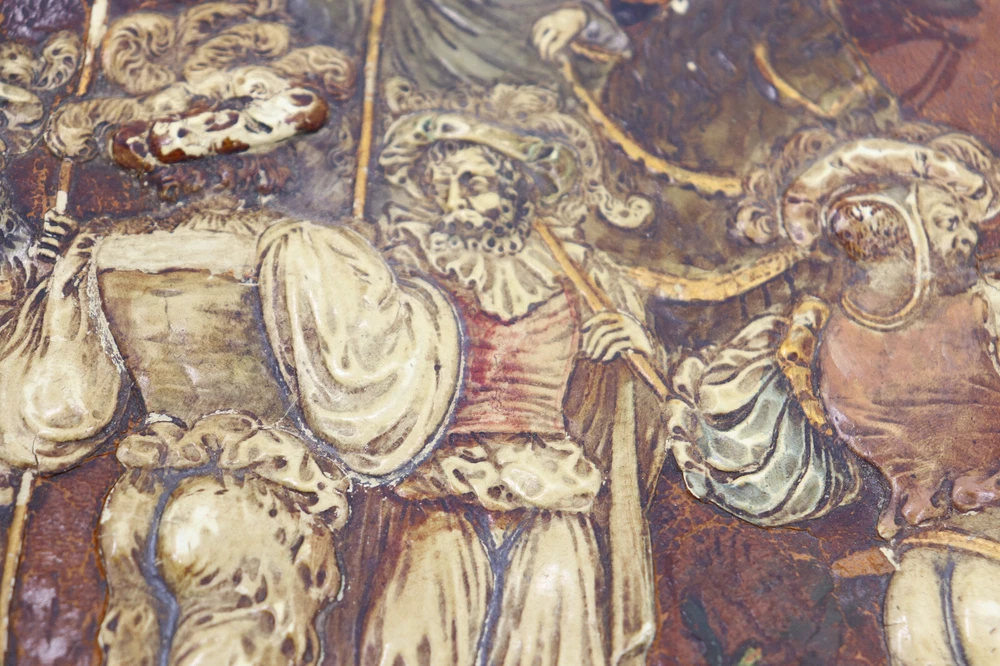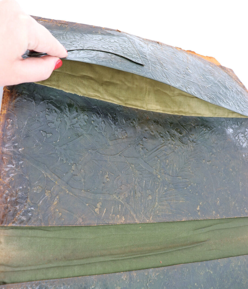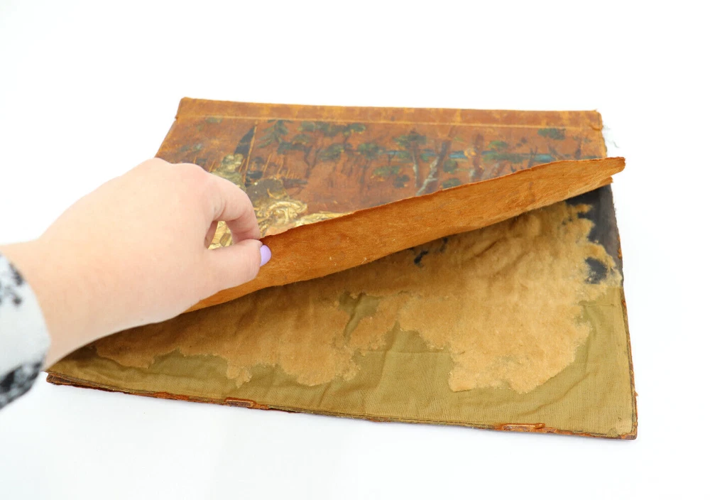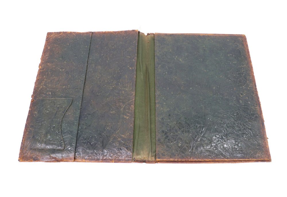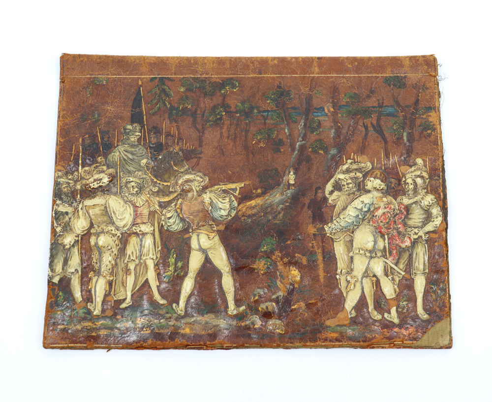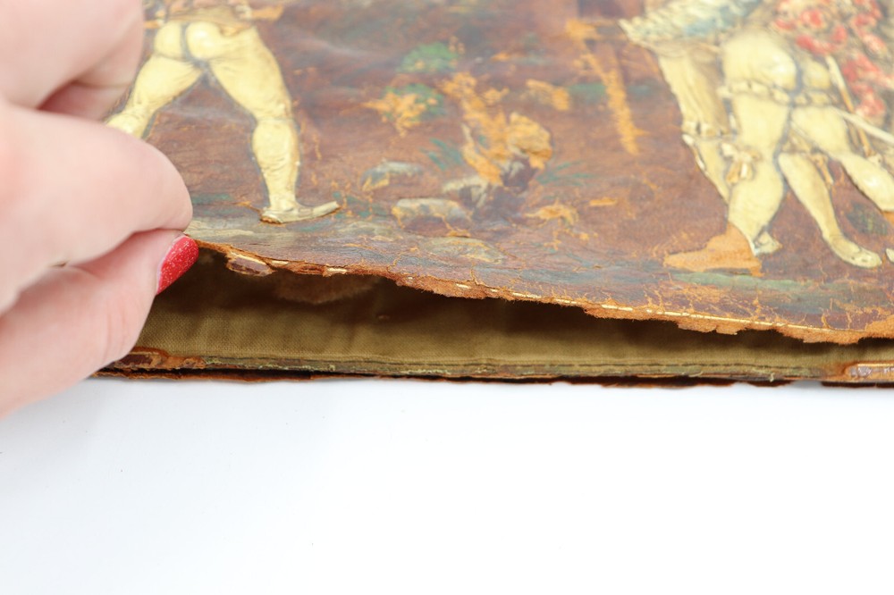 Beautiful hand-tooled leather brook cover. This cover was handmade in the late 1800s to early 1900s. It would have held a large book, notebook or a planner of some kind. It shows a detailed image of the William Tell story. It is very fragile and some parts could be repaired with glue. Great to use or for decoration & collectors! In fair vintage condition. This shows signs of wear from age and use, such as discoloration, scratches, staining, and other markings. Some parts of the leather are coming apart or have chipped off. Some parts can be re-glued, if desired. The cover measures 14.75" wide and 11.25" tall. Message me with any questions!