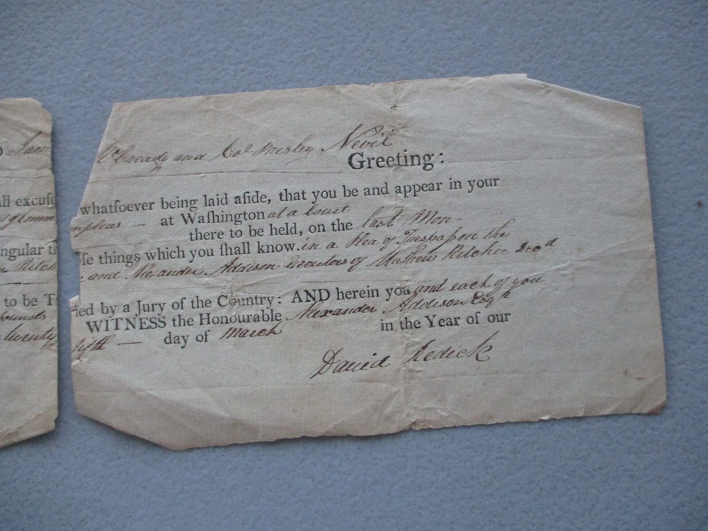 God Bless you and your family! HUGE HANDWRITTEN BEAUTIFUL DOCUMENT! MAKE SURE CHECK OUT OTHER LOW PRICED AUCTIONS GOING ON RIGHT NOW! Historical Document from 1802 ORIGINAL DATED! IN BEAUTIFUL BROWN INK. OVER 200 YEARS AGO! Col. Presley Nevil. Did not sign the document. His name is involved in the case. Like Indiana Jones says"It belongs in a Museum"! Signed by a very famous person. Named David Redick. He actually handed George Washington the Surrender document! This is not the same Document. But a great Court Document. The Georgia Rev. War Vet. Signed in 1802. PLEASE READ HIS BIO! For the Whiskey Rebellion! Which was happening in his own backyard! Washington,Pa! Whom fought for our Country. I will send the Biography. 12 1/2 X 3 3/4 INCHES. BONUS of another signature. Absalom Baird was a Sheriff. Then he went to the Senate. He has signed boldly on the reverse! He was also a Surgeon. In the Revolutionary War! Who fought in the Pa. Militia within the Revolutionary War. This comes from over 200 years ago! Now you can own history! Interesting document you do not see anymore. Outside of a Museum or Historical Society! Could be your Ancestors from the past! Have reunited families before with loved ones! Take it to your next family reunion! Maybe your related and know who they are? Or live here in this part of the world! True survivor piece here! (Highly frameable item here). Would make a great gift! Thanks for stopping by our Ebay auction site today! CHECK OUT MY 19,000 plus POSITIVE FEEDBACKS! FROM HAPPY SATISFIED CUSTOMERS! FOR PLEASURE OR A GIFT FOR SOMEONE! Looks so much better in front of you. Will not be disappointed! FREE SHIPPING ANYWHERE IN THE U.S. FREE SHIPPING ALWAYS TO YOU! We ship it out quickly after receiving your payment. Guaranteed to be a Genuine Authentic Original item as described in this description! Please make payment within three days. God Bless! Stay safe! Have a very Blessed Day!!! 17