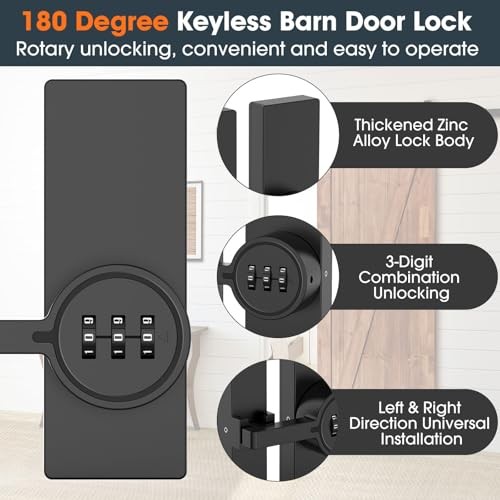 Return Policy Fast Delivery Trusted seller Password 180 Degree Barn Door Latch, Keyless Adhesive Flip Latch, Sliding Door Latch with 3-Digit Combination, Cabinet Lock with Glue and Screws for Gate,Shed, Bedroom, Closet (2, Black) Product Description Premium Material: This combination door lock is crafted from high-quality zinc alloy, offering exceptional resistance to rust, corrosion, and abrasion. Its durable construction ensures reliable performance and long-lasting use. Keyless Convenience: Featuring a 3-digit combination dial, this 180-degree barn door lock provides keyless entry for barn doors, cabinets, closets, and more. Say goodbye to the hassle of lost keys and enjoy effortless access. Flexible Installation: Designed for quick and easy setup, this sliding barn door lock can be installed in minutes using either adhesive or screws. Hidden screw holes enhance security and pry resistance. The 180° adjustable design allows for left- or right-handed installation, making it compatible with any door or cabinet. Resettable Combination Door Lock: You can easily reset the numeric combination at any time, with up to 1,000 possible combinations for personalized security. This feature ensures your belongings remain safe and private. Versatile Use: The gate latch is ideal for barn door, sliding door, cabinet, closet and locker. Its sleek design blends in with any home style while providing added security Shipping Returns Payment Shipping Shipping is FREE to all addresses other than APO/PO boxes in the lower 48 states. All our stock ships from US-based warehouses. Shipped via USPS or UPS (depending on location and package weight) Unless stated otherwise, all orders will ship within 24-72 hours of your payment being processed. Check our feedback to see the great reviews of FAST shipping we offer. Returns Seller does not accept returns Payment We currently accept payment via eBay managed payments only. Once payment is cleared, we will dispatch your shipment within 1-3 business days. Please refer to the "Shipping" tab for more information regarding shipping speed to your destination.
