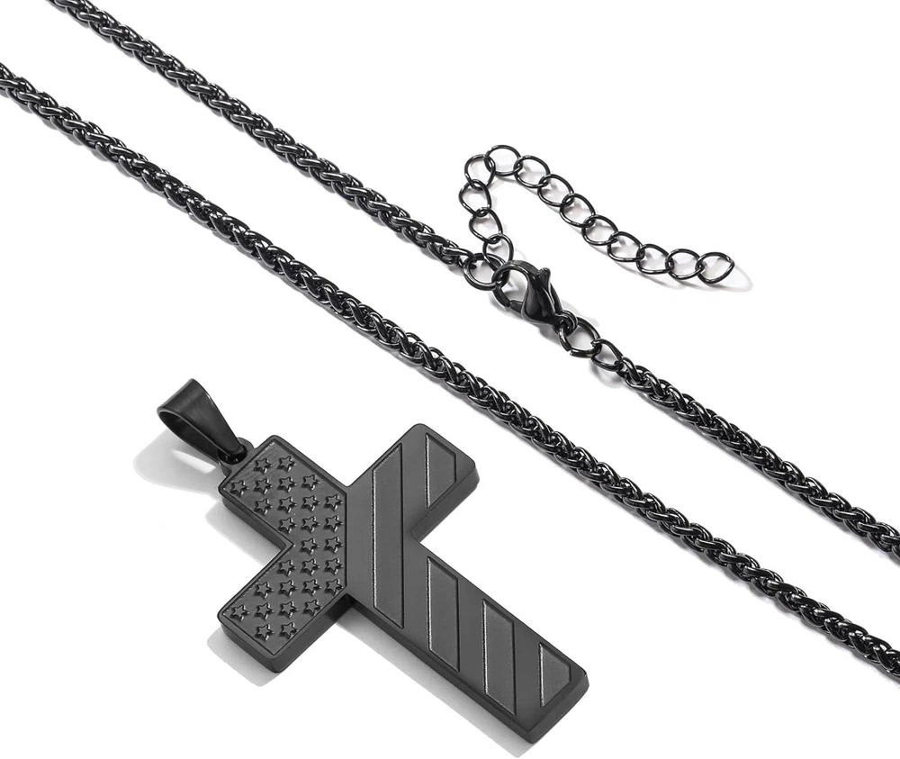 Product Description Duodiner Fashion jewelry Combining the cross with the our national flag, this stainless steel necklace combines patriotic beliefs and religions. It is not only an everyday fashion accessory, but also a symbol of patriotic beliefs and religions. It's unique, sophisticated and stylish. Give you confidence and strength when you are depressed; give you hope and good luck when you are lost, and let it protect you forever. Duodiner - the most heartfelt gift for you! This is a great piece for anyone who loves fashion accessories and patriotism or religion. This elaborate stainless steel American flag cross necklace fascinates anyone who wears it! Suitable Size American flag cross pendant size: 1.8 inch*1.2 inch(4.5*3.0 cm). 18 inch solid resistant wheat necklace width 3 mm. Suitable for both men boys and women girl. Meaningful Present Duodiner american flag cross necklace are perfect gifts for Soldiers, Firefighters, Police officers, Patriotic, Friend, Family, and recommended for Independence Day, Birthday, Celebration, Graduation, Christmas, Valentine's Day, Thanksgiving Day, Baptism, Easter, Father's Day, Christening, Confirmation, Communion, and other holidays. Warm Tips Please avoid contacting with the acid and alkali, corrosive substances. Please avoid the collision, so as to avoid surface scratches. Please wipe them with soft cloth when you clean your necklace. This necklace will stay with you forever.