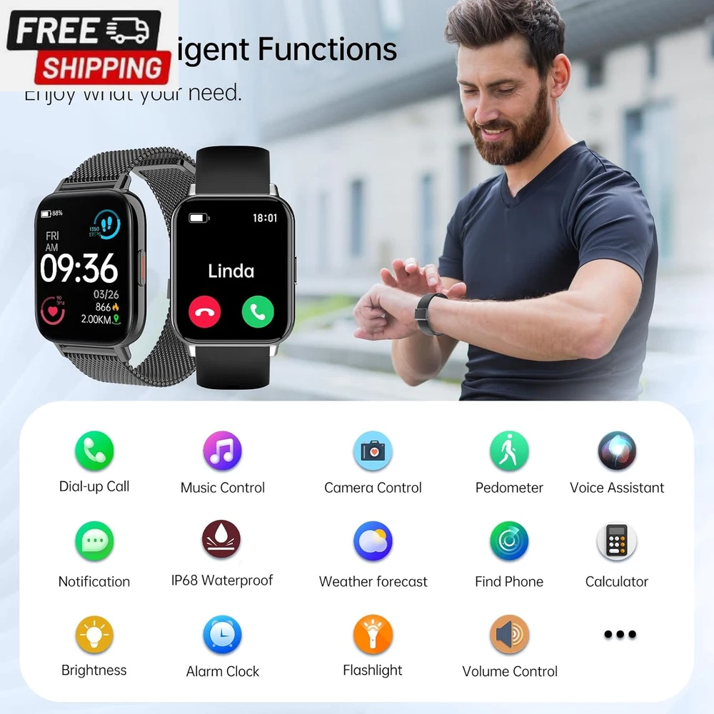 This smartwatch is a game-changer! The 1.85" screen is crisp and responsive, making calls and tracking fitness effortless. Love the IP68 waterproofing—works perfectly during workouts and even in rain. Battery life impresses, easily lasting days. The heart rate and sleep monitoring are surprisingly accurate, and the 100+ sport modes keep me motivated. Fast shipping and excellent customer support make the purchase worry-free. Highly recommend for anyone needing a reliable, stylish fitness companion!