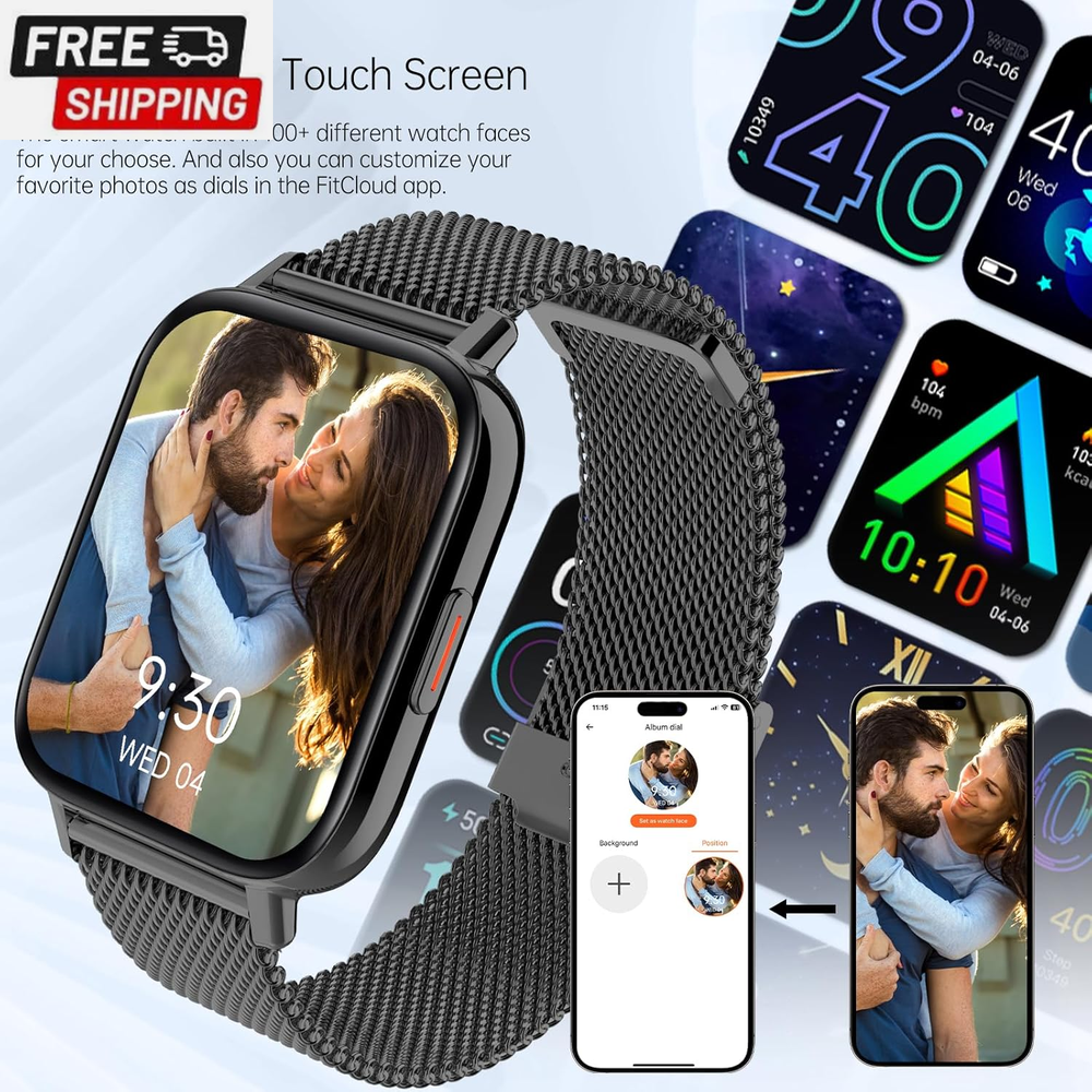Fast Shipping On All Items 30 Days Money Guarantee Customer Support Excellent Service 100% Satisfaction Satisfaction Guaranteed Smart Watch(Answer/Make Call), 1.85" Smart Watch for Men Women IP68 Waterproof Smart Watches for Android Iphone Fitness Activity Tracker Heart Rate Sleep Monitor, 100+ Sport Modes ,Pedometer,Black. Specification Item model number smart watch 162 Operating System android Battery Cell Composition Lithium Polymer Color Black Special Feature function(f) {var _np=(window.P._namespace("DetailPageProductOverviewTemplatesJava"));if(_np.guardFatal){_np.guardFatal(f)(_np);}else{f(_np);}}(function(P) { P.when('A').execute(function(A){ A.on('a:truncate:po-attribute-truncate-1:updated', function(data) { var isTruncated = !data.truncateInstance.getIfTextFits(); var seeMoreElement = document.getElementById('po-attribute-see-more-id-1'); if(seeMoreElement) { seeMoreElement.style.display = isTruncated ? '' : 'none'; } }) }); })); Heart Rate Monitor, Sleeping Monitor, Bluetooth call, Notifications, Activity Tracker, Female Health, Voice assistant, 1.85 Large HD Touch Screen Smart Watch, Calorie Tracker, Password Protection, Find phone, Weather, Music, Breath training, Stopwatch, Alarm clock, Timer, Calculator, Camera control See more Brand HXQHSTBG Country of Origin China Connectivity Technology Bluetooth Item Weight 8.1 ounces Shape Rectangular Wireless Communication Standard Bluetooth Model Name smart watch 162 Standing screen display size 1.85 Inches Batteries 1 Lithium Ion batteries required. (included) Manufacturer HXQHSTBG Screen Size 1.85 Inches Package Dimensions 11.26 x 4.06 x 0.75 inches GPS No GPS Item Description 1️⃣【1.85" DIY Dial&Multifunctional Smart Watch】 1.85" HD full-colour touch large screen digital watch provides a clearer and more comfortable visual experience. Over 100 kinds of dials for you to choose from, you can even customize your colour and style to show your personality. The smartwatch has a variety of useful functions such as alarm clock, stopwatch, music/camera control, weather, torch, find your phone and more. smartwatch Compatible with Android iPhone. (Note: The smart watch come with 2 watch bands:one stainless steel black steel bracelet and one black silicone strap) 2️⃣【Make/Answer Calls & Read Message】The smart watch for men women has a built-in microphone and speaker. After connecting with the "Fitcloudpro" app via Bluetooth, you can use the fitness watch to easily answer/make calls/ /view call records, and you can also receive mobile phones and apps Notify and read messages (Facebook, Calendar, Messenger, Instagram, Gmail, Whatsapp, Twitter, Snapchat etc.) The smart watch suitable for most phone and Compatible with Android/iPhone.(Android 8.0 and above,iOS 8.0 and above)Note: The watch CAN'T reply message, can view/read message. 3️⃣【24-Hour Health Monitoring Smartwatch】This smartwatch monitors heart rate and sleep, and the sleep monitor provides sleep quality analysis.Record sleep duration in deep sleep, submerged sleep, and awake states to help you develop quality sleep habits.This men's and women's smartwatch also provides women's period reminder, breathing training, sedentary reminder, reminder and water drinking reminder to help you better manage your health. 4️⃣【Bulit in Voice Assistant&Multifunctional Smart Watch】The smartwatch with built-in Voice Assistant function, providing voice service, you can command voice Assistant to play music, read news, check the weather, set alarm clock or control,and the watch come with various functions,such as weather forecast, play music control, calendar, timer,alarm clock, find phone, etc. 5️⃣【100 Sports Modes】Sleek and simple sport watch for men women with 100 sports modes (walking, running, cycling, elliptical, yoga, pilates, swimming, dancing, rowing machine, etc.) to get personalized exercise data and advice by tracking steps, distance, calories, activity time and heart rate. 6️⃣【IP68 Waterproof】The blood oxygen watch adopts IP68 waterproof, which has a good waterproof effect for daily life, such as: washing hands, anti-sweat, anti-rain, etc. (Not recommended to be worn in the shower or in environments with water vapour, not in contact with hot water.) 7️⃣【7-10 Days Working Time】 The smart watch for iphone android comes with a 300mAh battery that provides up to 7-10 days of usage and an incredible 28 days of standby time, and takes only 2 hours to charge. offer 1 year warranty. 7/24 hours customer service, if you have any questions, please feel free to cont-us. Product Description The video showcases the product in use. The video guides you through product setup. The video compares multiple products. The video shows the product being unpacked. smart watch for men Merchant Video 1 Bluetooth Call 2 Message Notifiction 3 AI Voice Assistant 1 100 Sport Modes 2 Activity Tracking 3 Heart Rate Monitor 4 Blood Oxygen Measure 5 Sleep Monitor 1 Various Functions 2 100 Watch Faces 3 IP68 WaterProof 4 Size&Package Contents How do I turn on the watch for the first time ? 1. Please charge to activate the watch before first use. 2. Long press the function button to turn on the watch. 3. In order to better use the watch in the future, you need to tear the protective film before and after the watch. Watch and phone Bluetooth disconnection ,how to do ? 1. Make sure the APP is running at the backstage, do not shut it down on your phone. 2. Is ther the watch is connected to other mobile phones, if so, please turn off the Bluetooth of the mobile phone and disconnect the watch on the APP firs How to set watch language and time? The default language of the smart watch is English,When the watch is connected to the phone, it will automatically synchronize the time and language on the phone, and you cannot set the time on the watch. Q: How to customize your own picture? Go to the app > Device> Dial Library > Dial Center > Click the first green picture > Background > Cl