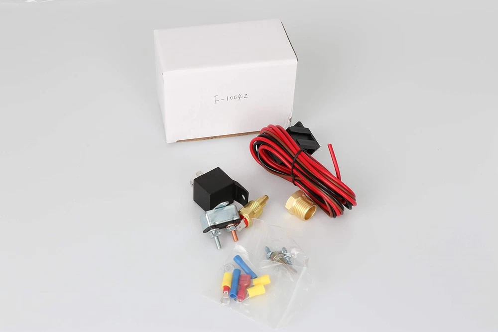 【COMPATIBLE VEHICLES】 265 283 305 307 327 350 383 400 396 402 427 454 472 502 260 289 302 351W 347 352 360 390 406 427 428 429 460 351C 351M 400M 273 318 340 360 361 383 400 413 426W 440 455 330 326 ENGINES 【DIRECT FIT & EASY INSTALLATION】This kit includes everything you'll need to hook up to your fan, includes a brass adapter to install the sending unit, wires, relay switch, circut breaker, terminals and mounting screws. 【Premium Quality】New 185-200 degree electric fan thermostat relay switch kit for your cooling system, sending Unit Thread Size: 3/8-18 NPT, Voltage: 12 V. 【WORKING】This kit is set up to turn your electric fan on at 200 degrees and shut off at 185 degrees and will work with any 12 volt system. 【NOTE】Every product must take inspected and tested multiple times before the shipment, if you get any problems with our this Electric Cooling Fan Thermostat Kit, please contact us in the first time.we can provide free replacement or refund. Product Description Installation Guideline: 1. Mount the relay under the hood in a convenient location as to the fan as possible. Notice: Don't use the teflon tape or thread compoud on the thermostat or adaptor. For proper operation, the thermostat must ground threough the threads to the engine and the engine must be ground. 2. Install thermostat into the head or intake manifold. Route the black wire to thermostat and cut to length. Crimp the red terminal onto the black wire and attach to thermostat. 3. Route and connect the red wire to the fan + terminal or power wire coming from the fan motor printed to electric fan. 4. Mount the circuit breaker provided in a convenient location as close as possible to whichever power source(battery or large terminal on the starter solenoid)you are using for the fan relay. 5. Cut to length and install using a small yellow ring terminal. With another small yellow ring terminal take the remaining red wire and connect the unused post on the circuit breaker to the battery source.This wire is printed to battery / constant hot. 6. Route the brown wire to the ignition switch or the fan switch whichever is more convenient. Fitment: 265 283 305 307 327 350 383 400 396 402 427 454 472 502 260 289 302 351W 347 352 360 390 406 427 428 429 460 351C 351M 400M 273 318 340 360 361 383 400 413 426W 440 455 330 326 ENGINES Package Includes: 1 Set 185-200 Degrees Cooling Fan Thermostat kit PLEASE NOTICE: -Please check the compatiblity to make sure correct fitment before purchase. -Please allow 0.1-0.5cm difference due to manual measurement.
