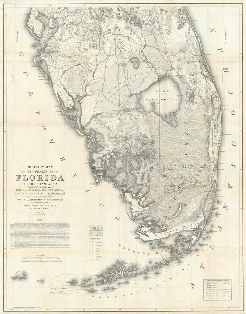 1856 Military Map of Florida Produced During the Third Seminole War Poster Print