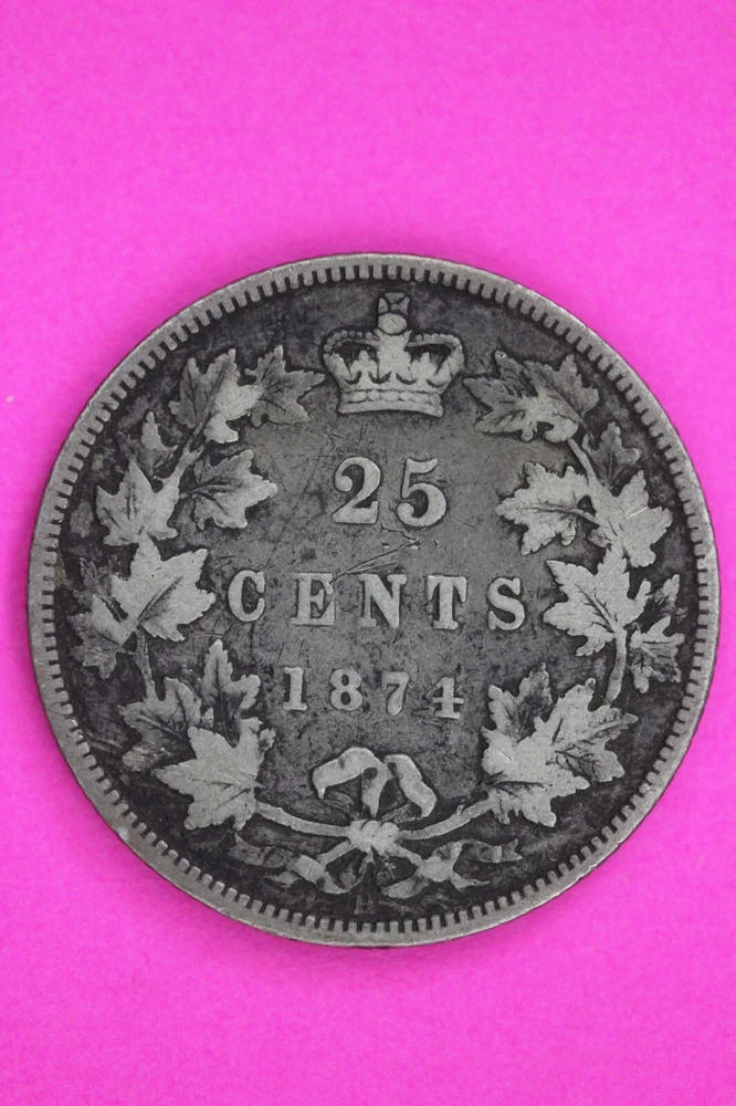 1874 Canada Silver Quarter Scarce Semi Key Date Coin .925 Fine Silver 74