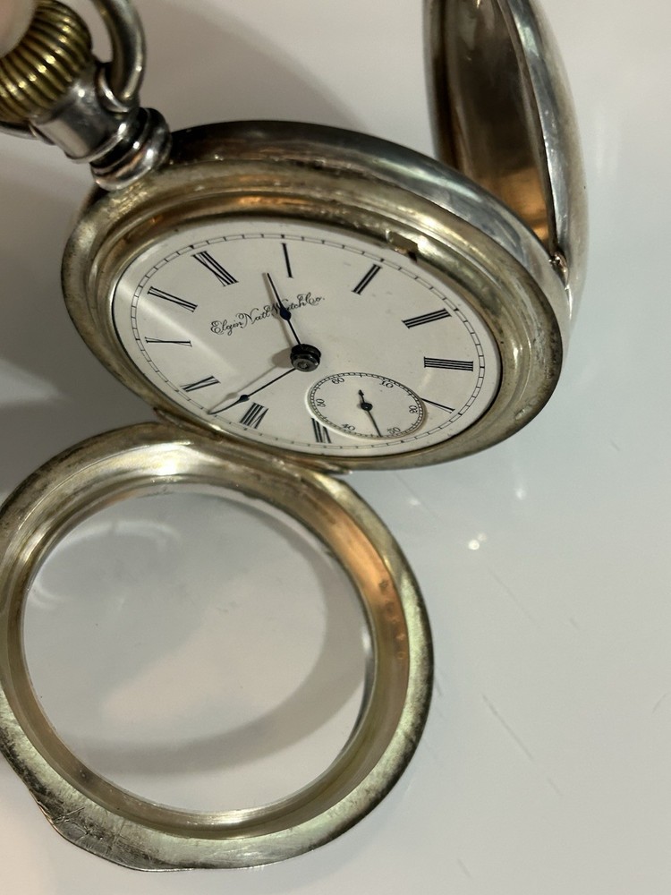Elgin pocket watch coin silver very heavy all parts intact just stop working .