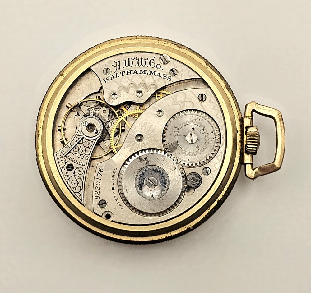 This watch came in an auction lot. I don't know the history. The balance wheel spins freely, but does not run. The 1897 Waltham Special pocket watch is a vintage timepiece with a classic design featuring Arabic numerals on a silver dial. Made in the United States between 1890-1899, this mechanical (manual) watch has 15 jewels and a missing caseback. Ideal for collectors or enthusiasts looking for a piece to repair or use for parts, this size 12 pocket watch exudes a dressy/formal style with a yellow gold case color. The Waltham brand is known for its quality and craftsmanship, making this pocket watch a unique and valuable addition to any collection. ✔️ Check out my other watches too......... ● If you like watches, follow my store. I will be listing a lot of watches over the next few weeks !!