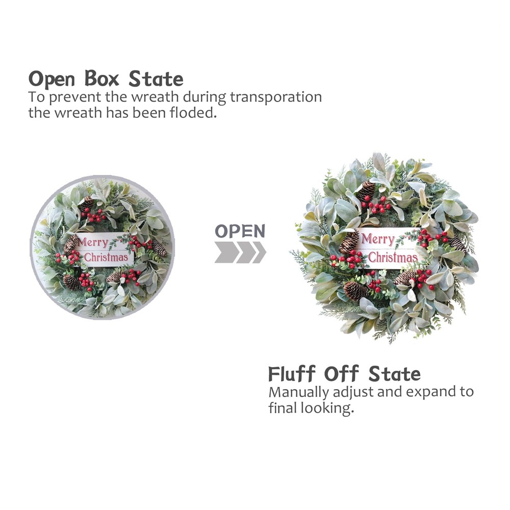 The wreath is made of high quality material that will never rot and will always be alive. The wreath is durable and will last for a long time, add a festive atmosphere to your home every day. As decorative hanging Wreath for home, nice household decoration is unique and also a perfect decor gift for your friends and lovers. It's the best Winter Christmas decor gifts. 🎄【Christmas Wreath】The Artificial Winter Wreath is made by Berries, Pine cones and eucalyptus leaves. The base is a natural vine. This Christmas Wreath is natural and realistic, and create a festive atmosphere of Christmas. 🎁【High-quality Material】Crafted with sturdy, high quality materials, this artificial hanging wreath is designed to capture the charm and colors of the winter season year after year. ⛄【Unique Design】The Christmas wreath stay natural tone and create a comfortable, warm and relaxed atmosphere. It gives you the feeling of being in the forest and really listening to nature. 🔔【Christmas Wreaths For Front Door】The wreath make great addition to your Christmas and Holiday Decoration. This Beautiful Wreath is great to decorate home, , office, and classroom decoration,and ideal for the front door, wall, fireplace, window. 🎶【Service 】All our products come with a . If there is any problem after receiving the product, please us at the first time and we will make sure to give you a perfect answer.