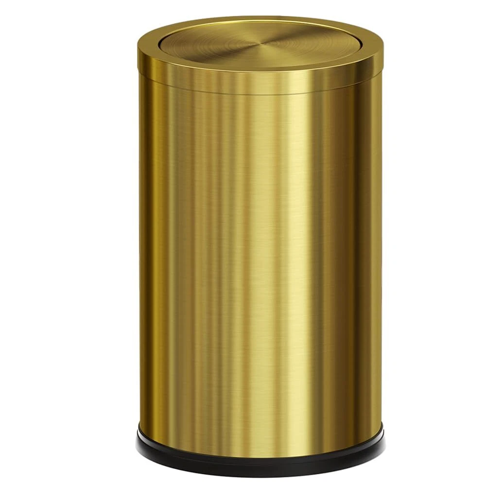 [Material and Appearance] : The whole trash can (including the lid and bucket body) is made of high-quality stainless steel material, with waterproof, rust-proof and fingerprint-proof characteristics. The barrel body adopts the wire drawing process, which not only enhances the visual texture, but also makes the trash can more thick and durable, and can maintain a beautiful appearance for a long time. [Swing Lid Design] : The lid is made of stainless steel and made by fine drawing process, which not only increases the structural strength but also enhances the overall high-grade feeling. The unique swing cover design supports 360-degree rotation and automatic return, making the disposal of garbage more convenient and fast operation, but also ensure good sealing, effectively reduce odor diffusion. [Composition] : This golden kitchen trash can is made up of three parts - a beautiful stainless steel lid, a PP plastic pressure ring to hold the garbage bag in place, and a sturdy stainless steel bucket body. This design ensures that the bags are perfectly hidden inside, avoiding unsightly problems caused by exposure. [Non-slip Base] : The bottom is equipped with non-slip gaskets, which can not only effectively prevent the garbage can from being dumped due to accidental collision, but also protect the ground from scratch damage, especially suitable for the family use of laying wood floors or tiles. [Large Capacity] : With 4.7 gallons of large capacity space, enough to meet the needs of the kitchen, living room and other areas in the daily family, but also very suitable for offices, meeting rooms and other high-end business places, is a practical and decorative ideal choice.