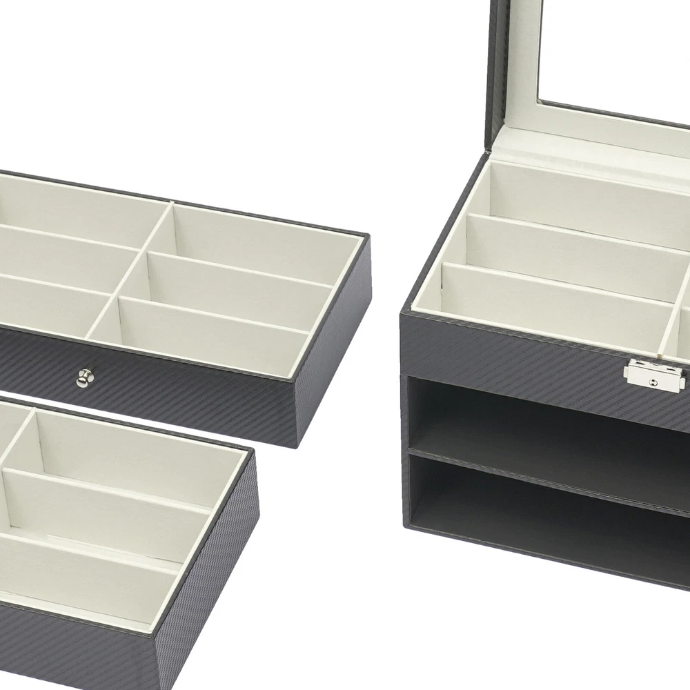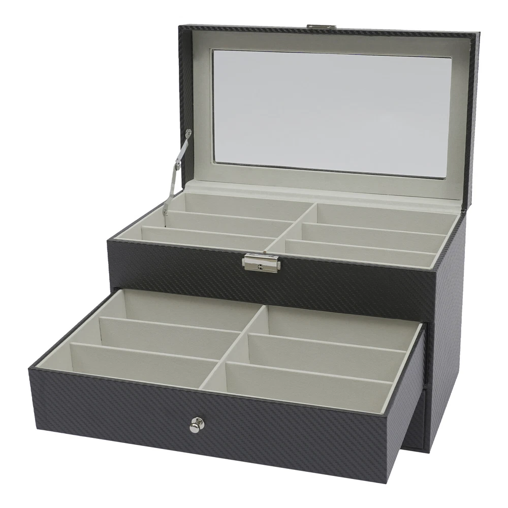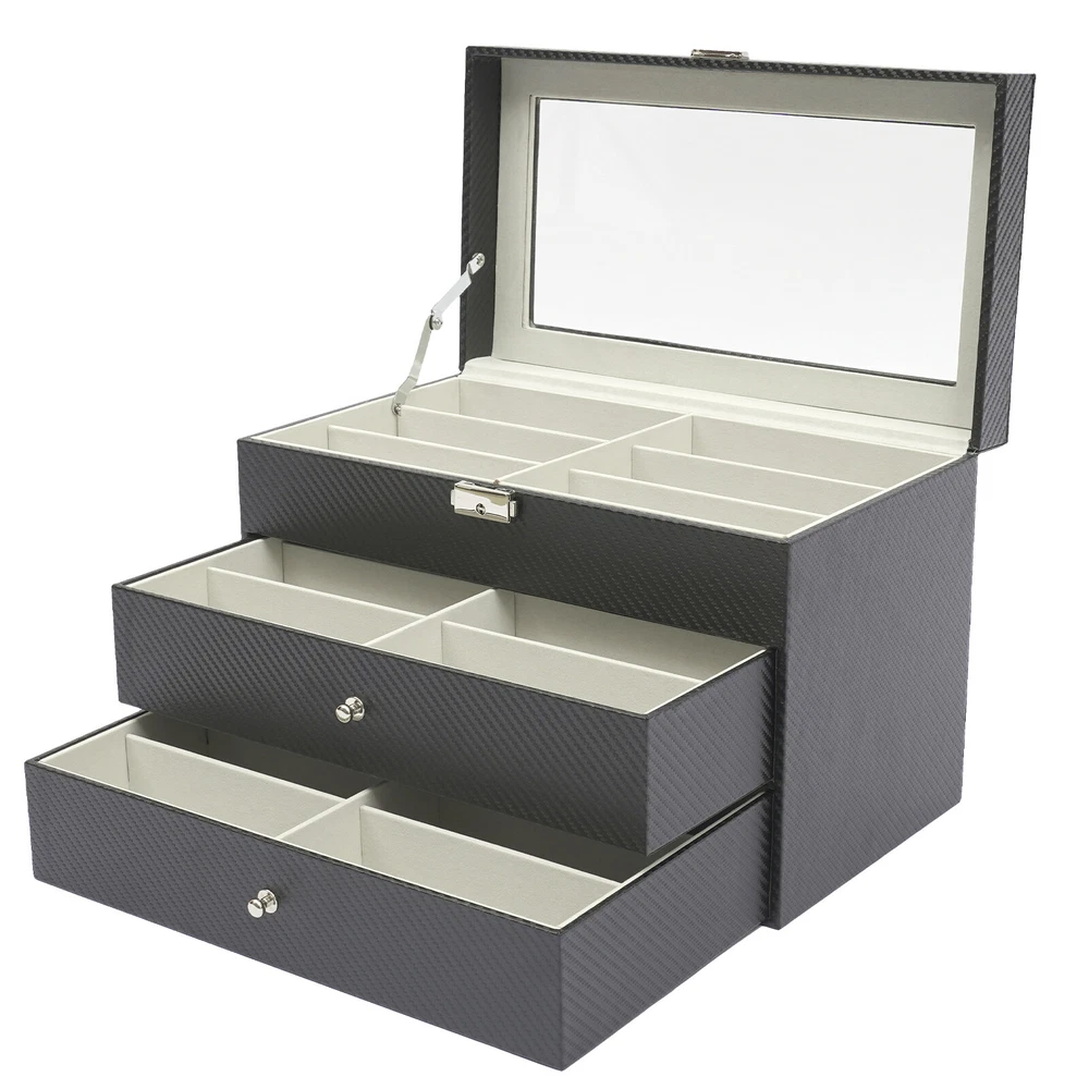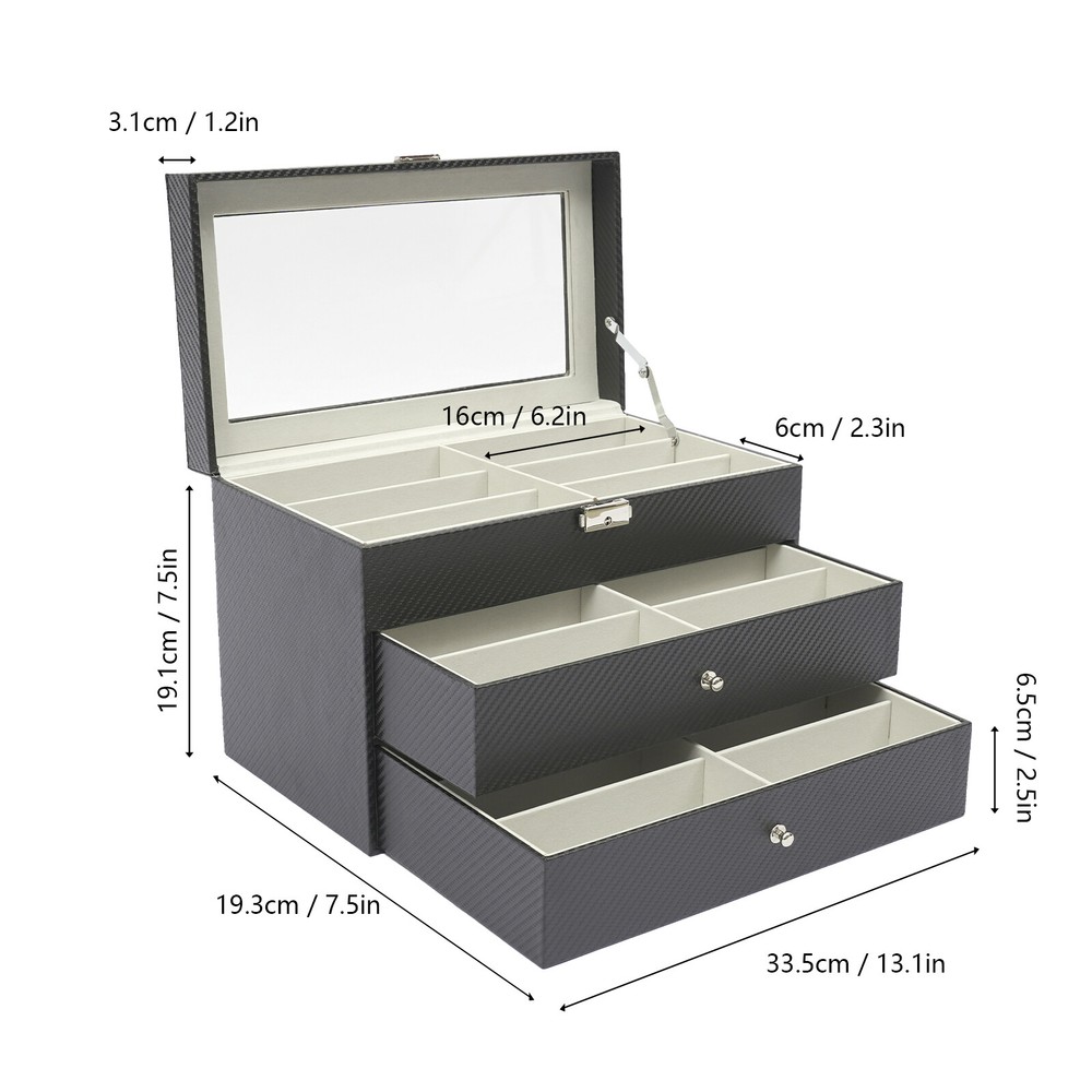 Descriptions: This sunglasses storage box is designed for storing sunglasses and eyeglasses. Drawer type with three layers 18 grids design, convenient and practical to save space, helpful for keeping home clean Applications: counters, eyeglasses, home, holiday gift, etc. Features: - Durable materials The box adopts density board, carbon fiber PU, metals and glass, stable and reliable to use - Drawer type Three layers design with two drawers and a top storage box, can effectively save space - 18 separated grids Easy layer has 6pcs grids, convenient to store glasses separately - Top glass cover design Simple and beautiful, the sunglasses can be displayed clearly, with metal support design, stable and reliable - Lock design Lock design can effectively protect the glasses from lo Sunglasses Organizer Storage Box 18 Slots Case Home Display Eyeglasses Holder Description 18 Slot Eyeglass Sunglass Storage Box Glasses Display Case Organizer Descriptions: This sunglasses storage box is designed for storing sunglasses and eyeglasses. Drawer type with three layers 18 grids design, convenient and practical to save space, helpful for keeping home clean Applications: counters, eyeglasses, home, holiday gift, etc. Features: - Durable materials The box adopts density board, carbon fiber PU, metals and glass, stable and reliable to use - Drawer type Three layers design with two drawers and a top storage box, can effectively save space - 18 separated grids Easy layer has 6pcs grids, convenient to store glasses separately - Top glass cover design Simple and beautiful, the sunglasses can be displayed clearly, with metal support design, stable and reliable - Lock design Lock design can effectively protect the glasses from loss, safe and practical Package weight: 3.08kg Package Size(L x W x H): 35 x 21 x 24.5 cm Package : 1 x Sunglasses Storage Box Payment Delivery details Terms of sales About us Contact us Payment We accept ebay payment 。 Fees such as import duties, taxes are not included in the item price or shipping costs. These charges are the buyer's responsibility. Delivery details Shipping: 2-9 working days to: USA Terms of sales We maintain high standards of excellence and strive for hundred percent customer satisfaction. Feedback is very important to us. We hope that you contact us immediately before you give neutral or negative feedback, so that we can address your concerns. It is impossible to address issues if we do not know about them! About us Your satis faction is our ultimate goal. We work hard to earn your trust and future business. Our certified technicians have tested each item before shipping. The unit comes with 1 year limited warranty on all manufacturing defects. a) If you receive a defective item, you may return it or ask for a discount. Please contact us within 14 days after you receive the package. b) What you returned must be intact and in its original packaging as re? u. Customer is responsible for shipping costs of the returned item. c) We will cover the cost of shipping back t with the shipping rate indicated in the registration page. We will send you a new unit or refund the full payment you paid. Thank you. Contact us Business Hour Business Hour: Monday To Friday: 8:30 AM to 5:00 PM (Beijing China time) Due to time zones, our reply to your questions may not be immediately. But within above working time, we will reply your email within 24 hours. If it's non-workdays, please kindly be patient and wait till Monday. Please contact us with ebay message. Please feel free to contact us if you have any questions. Monday To Friday: 8:30 AM to 5:00 PM (Beijing China time) Due to time zones, our reply to your questions may not be immediately. But within above working time, we will reply your email within 24 hours. If it's non-workdays, please kindly be patient and wait till Monday. Please contact us with ebay message. Please feel free to contact us if you have any questions. Department Unisex Color Black Theme Fashion & Costumes Material Leather Features Portable Type Storage Organizer shipping notice Can not ship to Puerto Rico,Alaska/Hawaii Brand Unbranded MPN Does Not Apply To Fit Sunglasses, eyeglasses